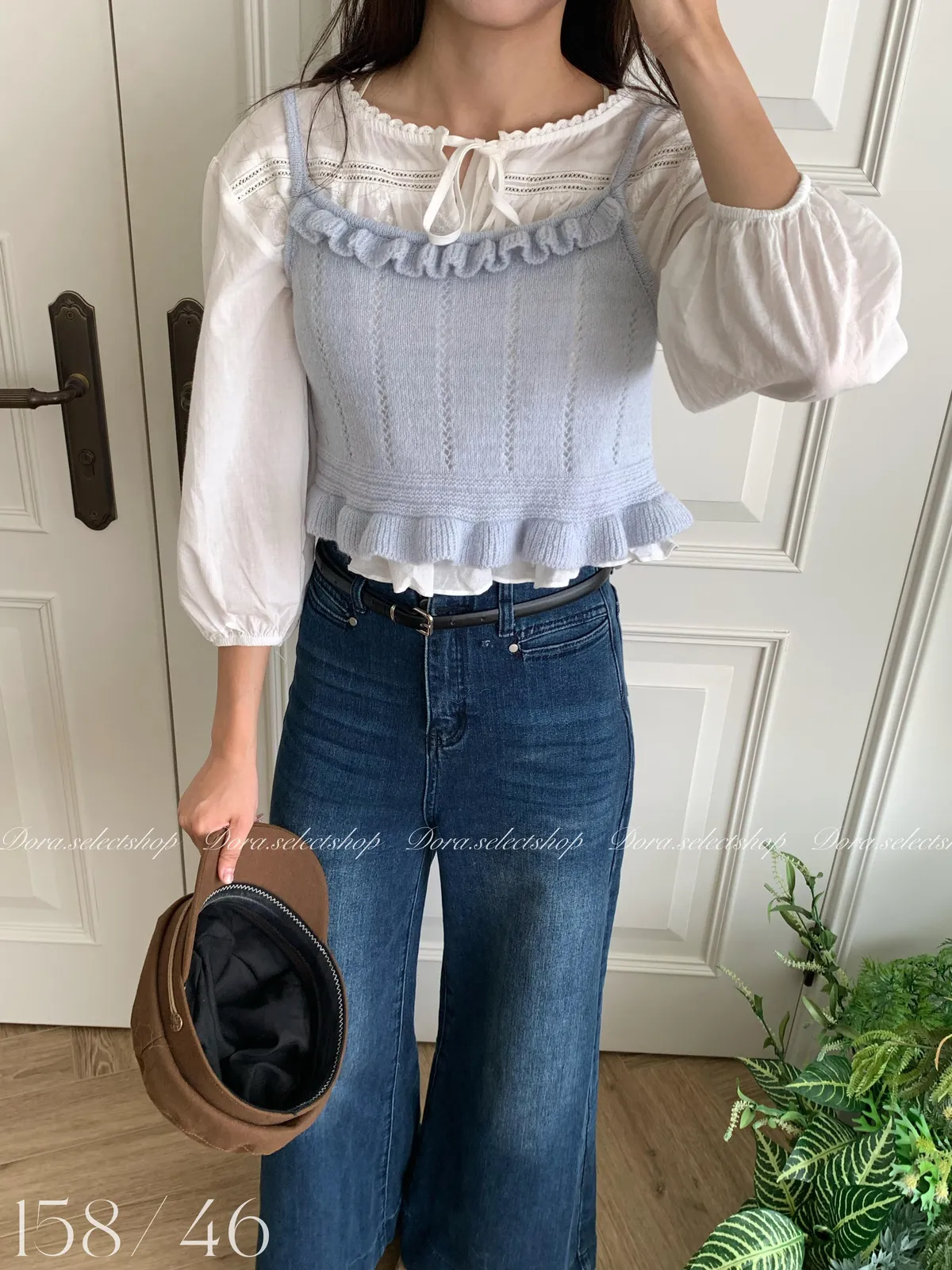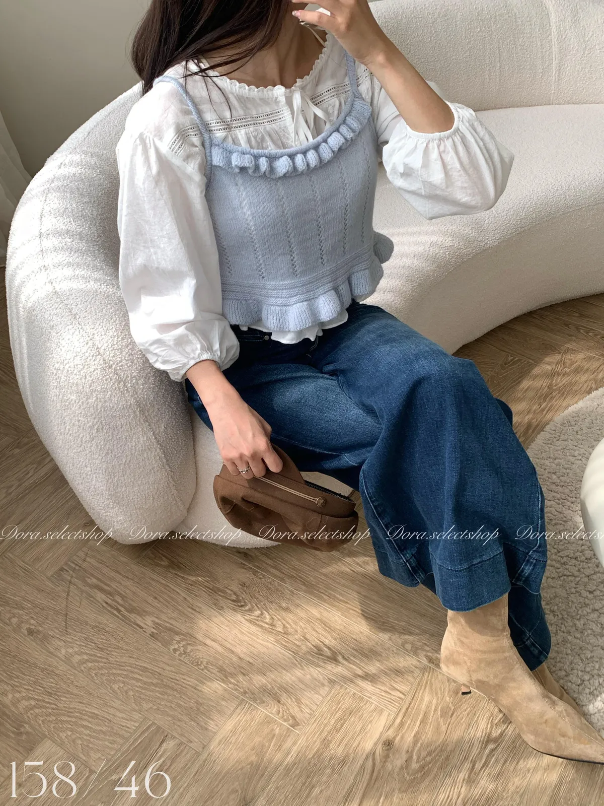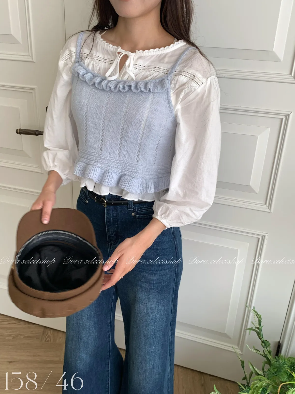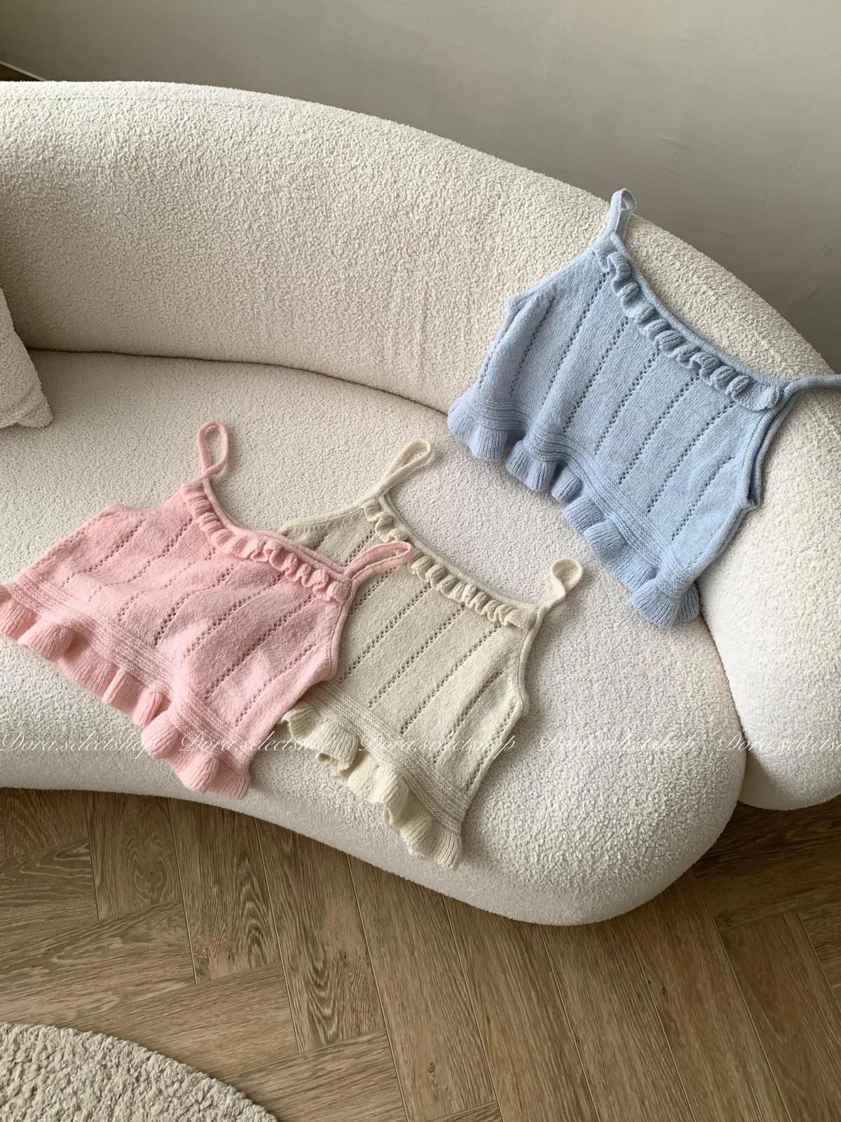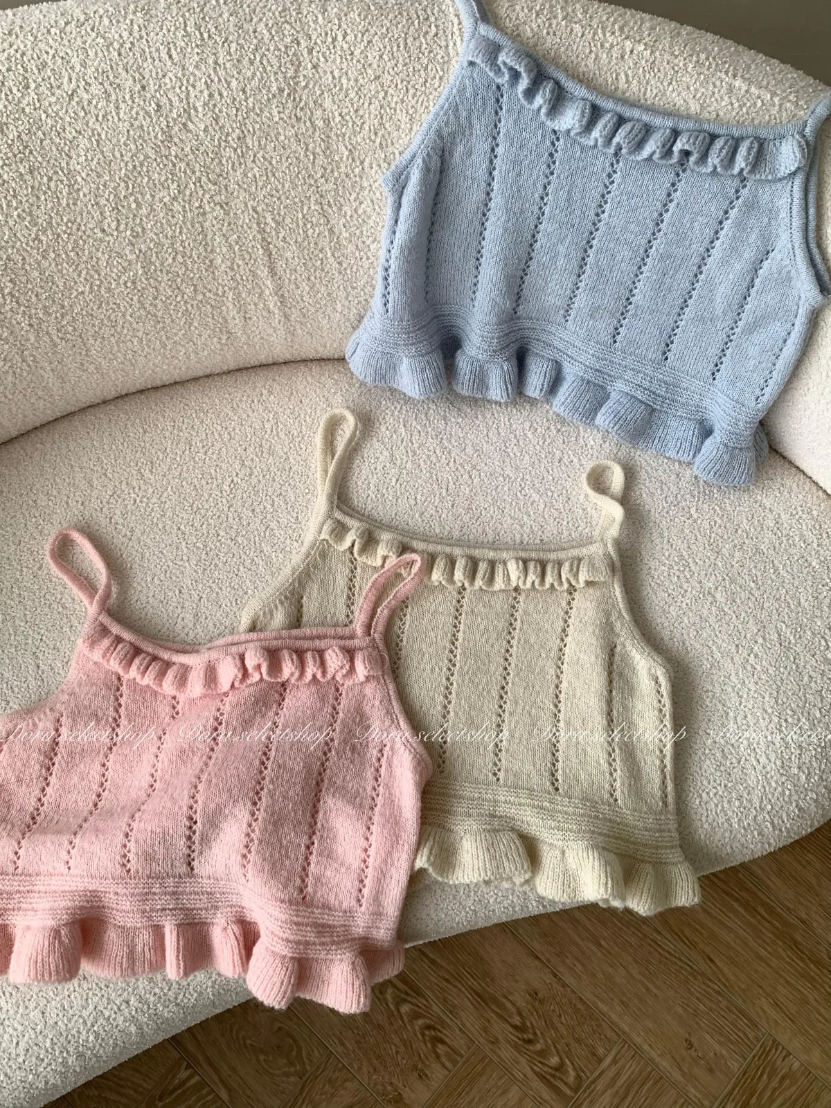 🇰🇷復古荷葉邊羊毛針織背心---baby blue