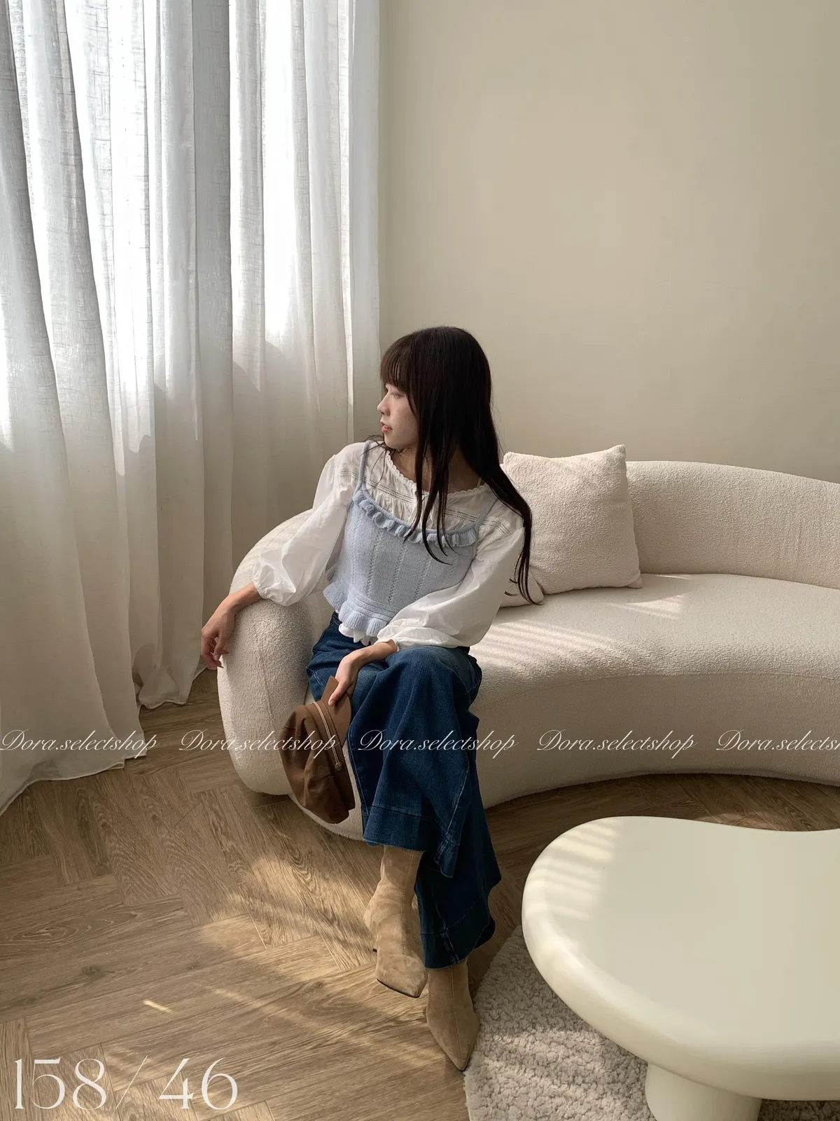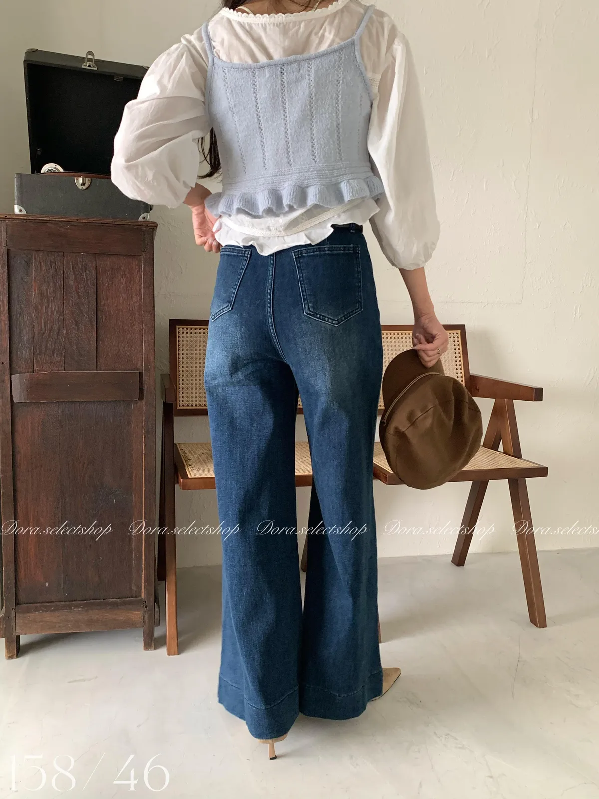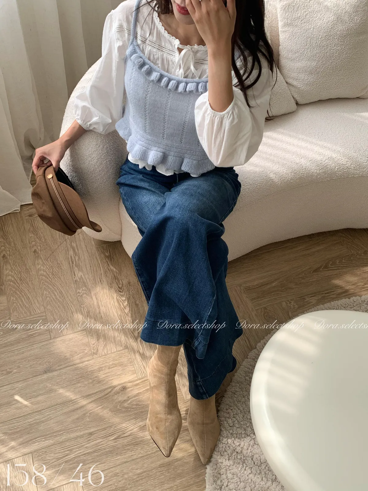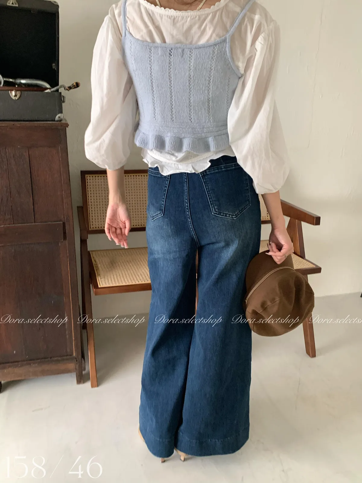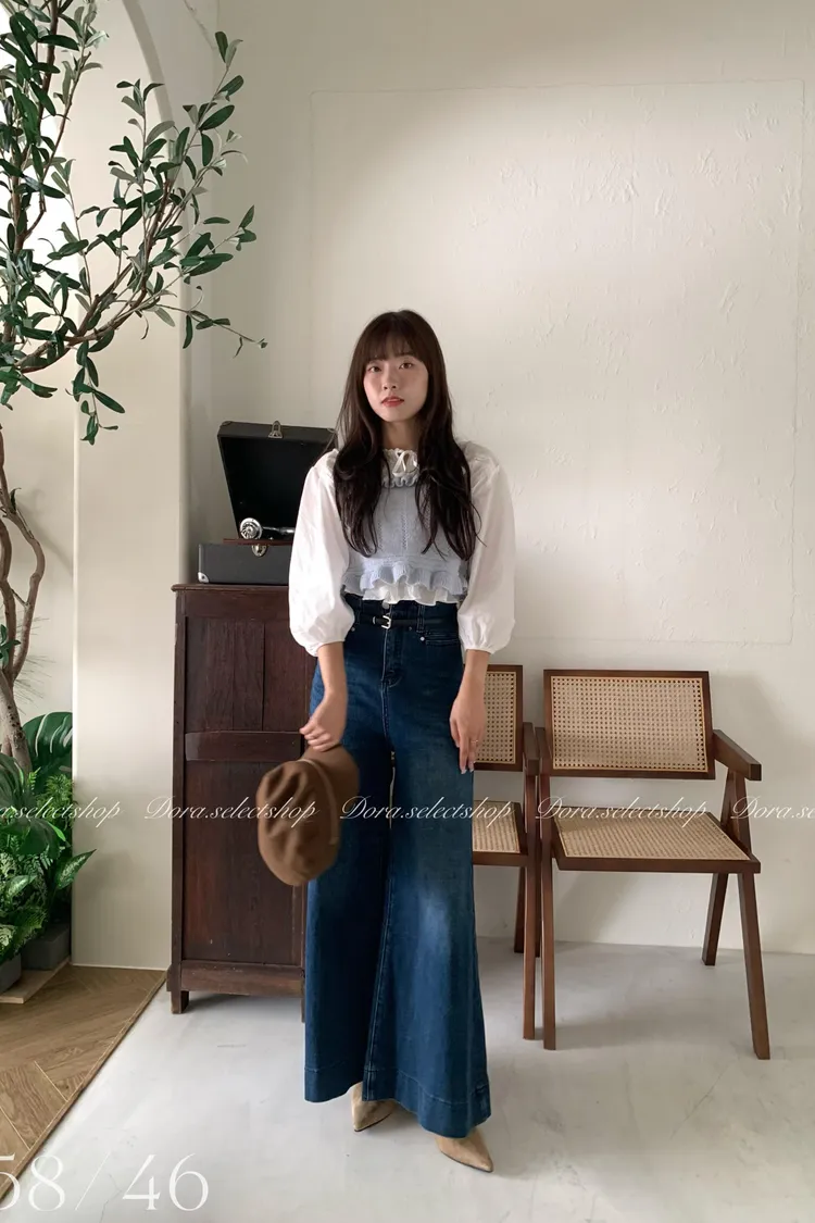 🇰🇷復古荷葉邊羊毛針織背心---baby blue