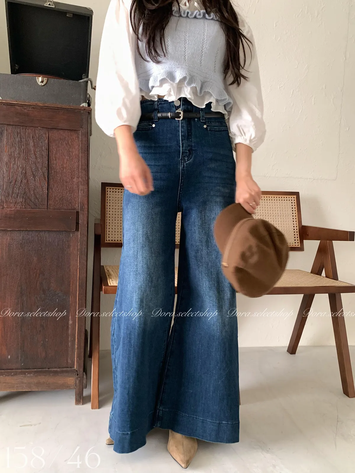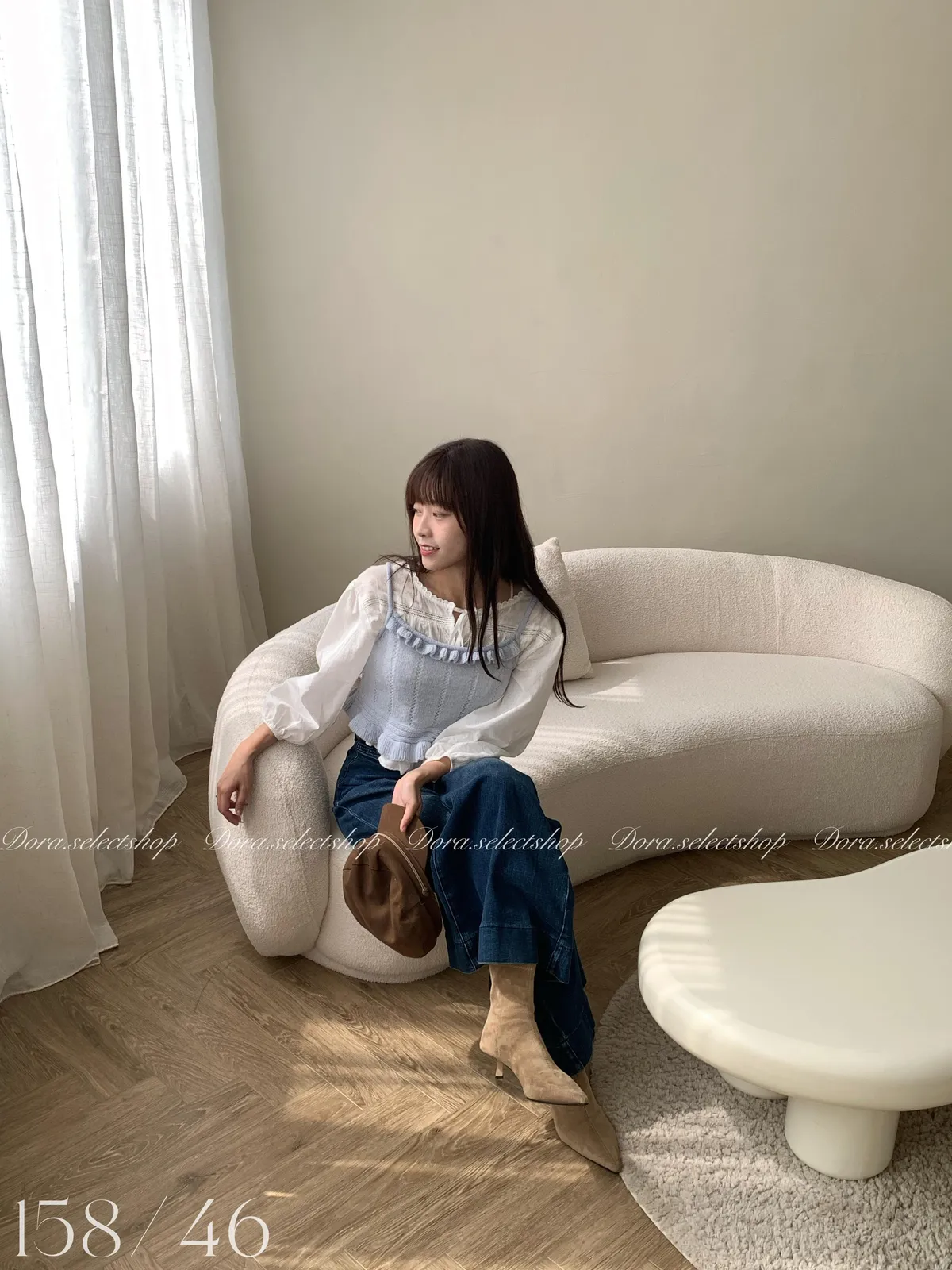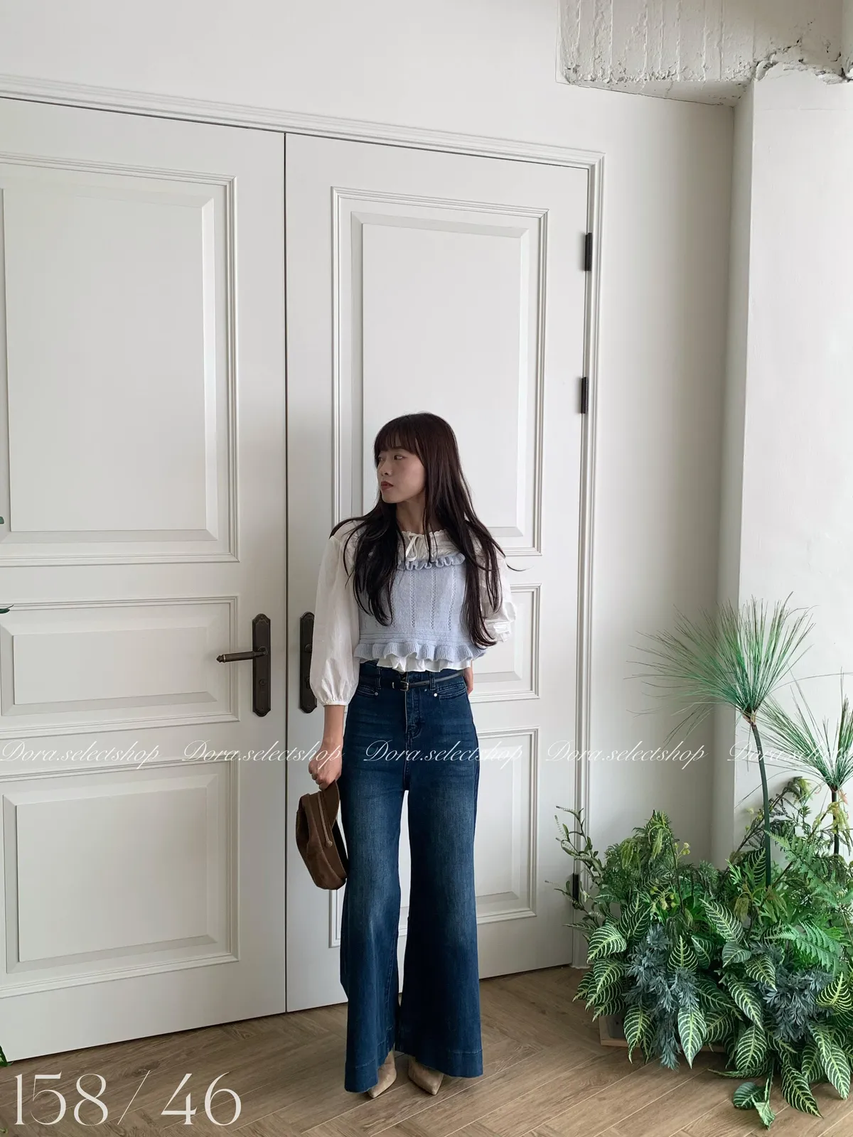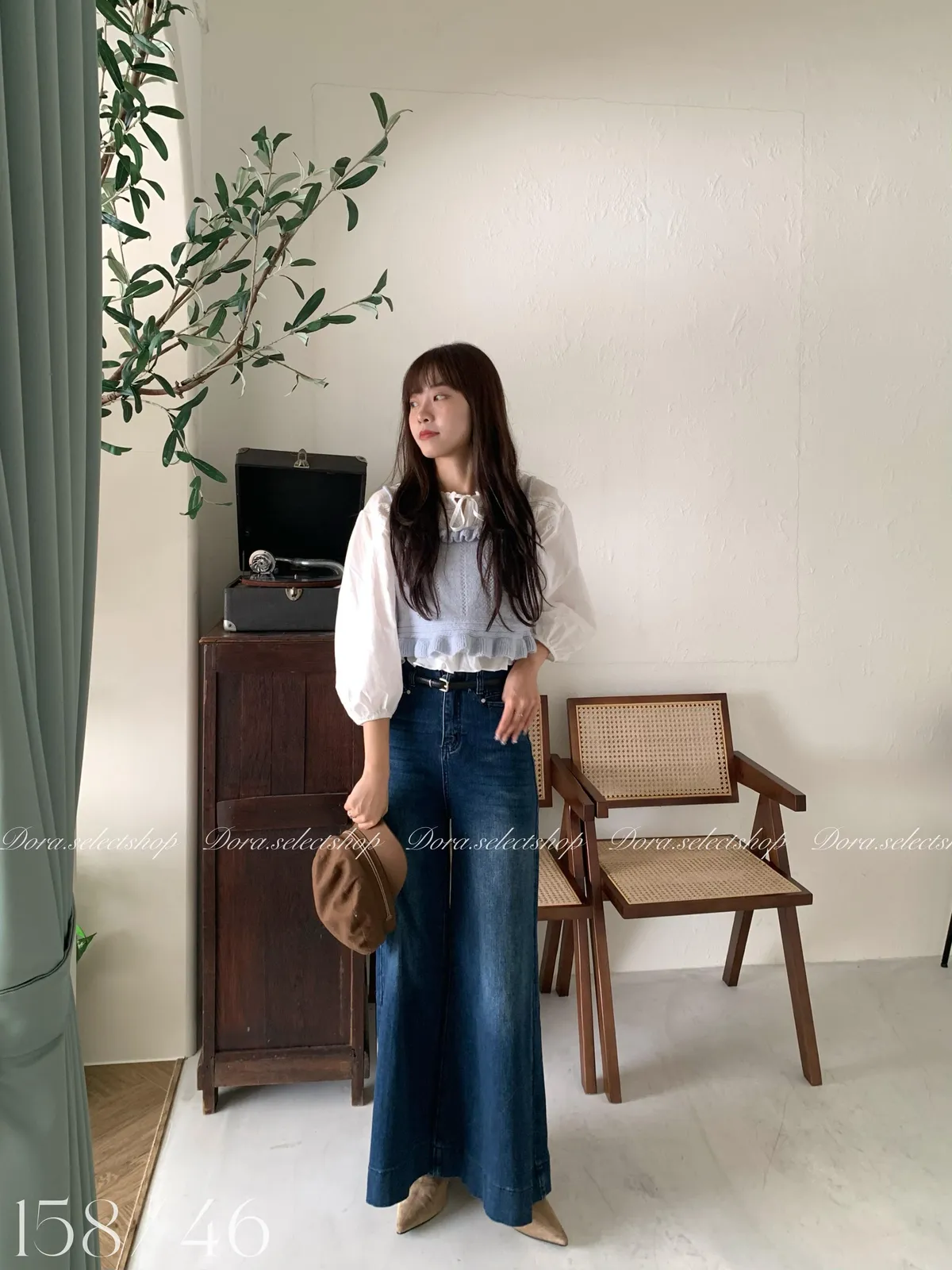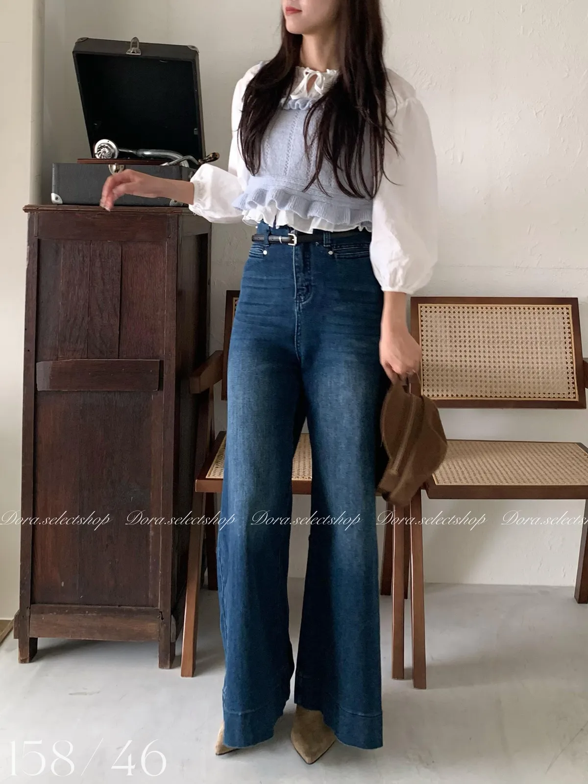 🇰🇷復古荷葉邊羊毛針織背心---baby blue