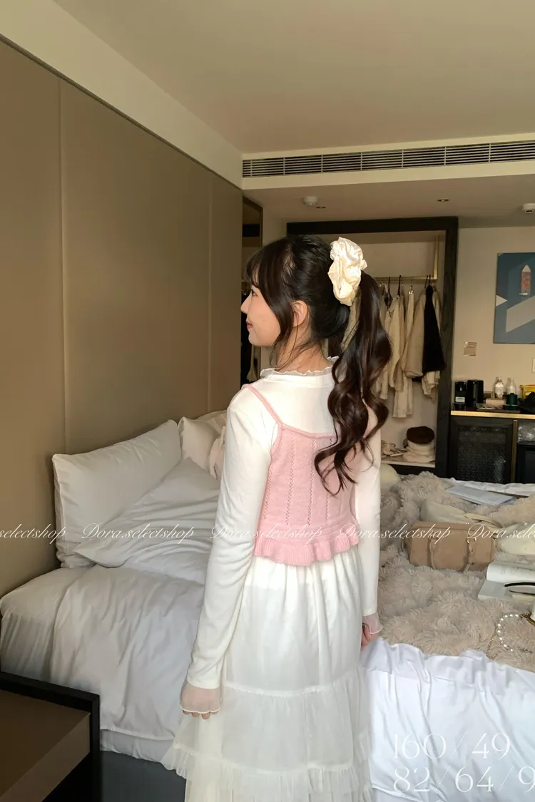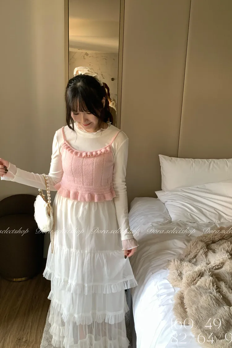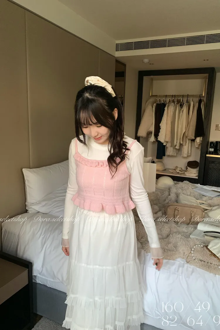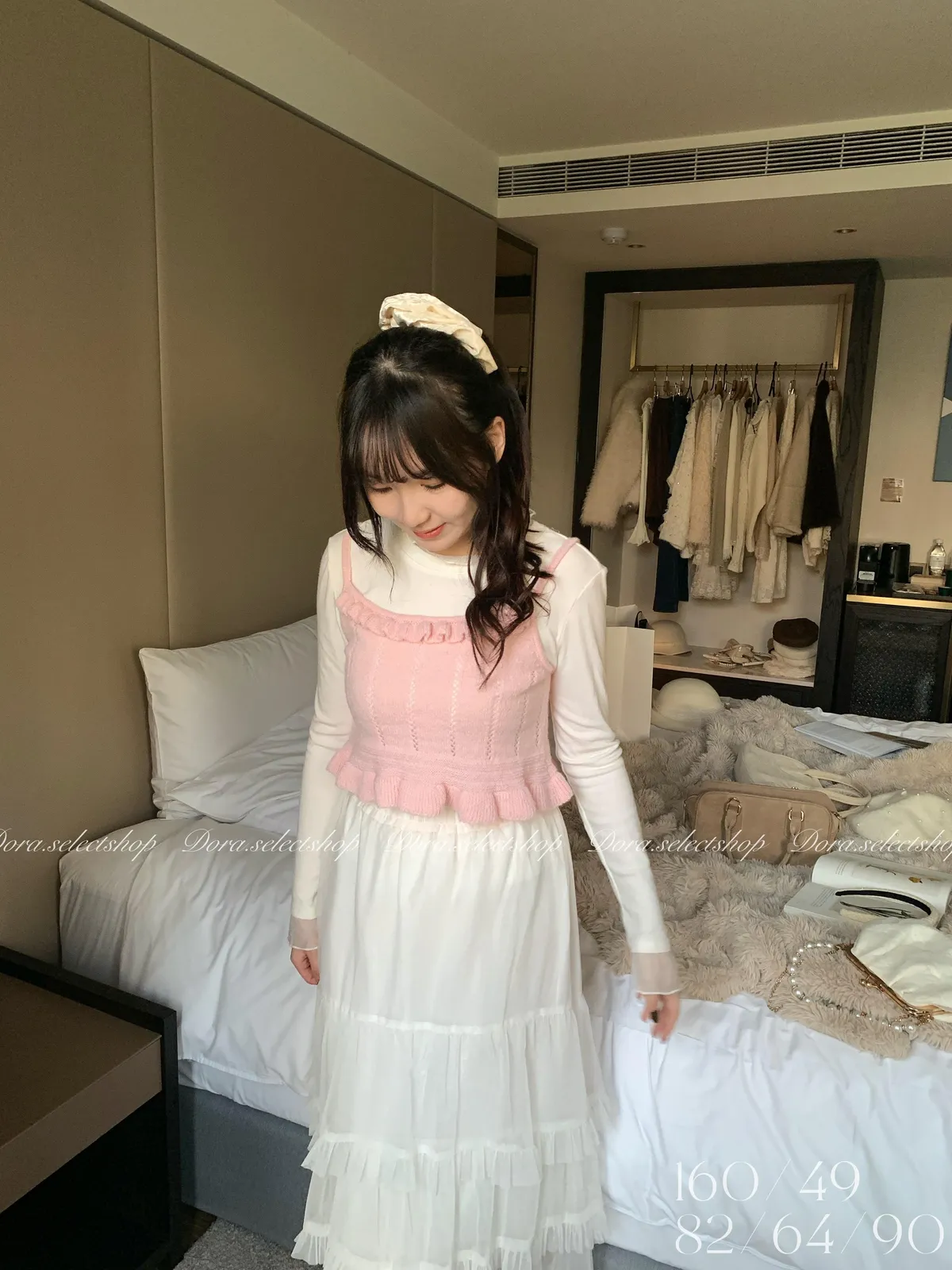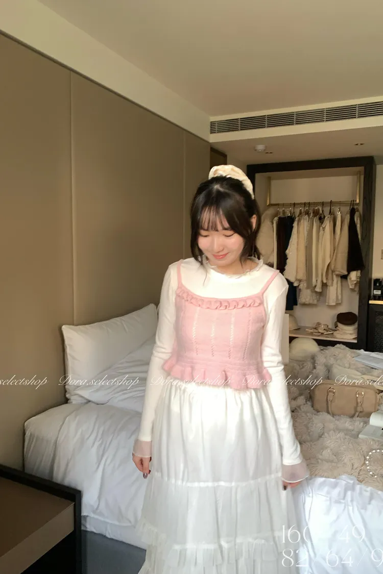 🇰🇷復古荷葉邊羊毛針織背心---粉