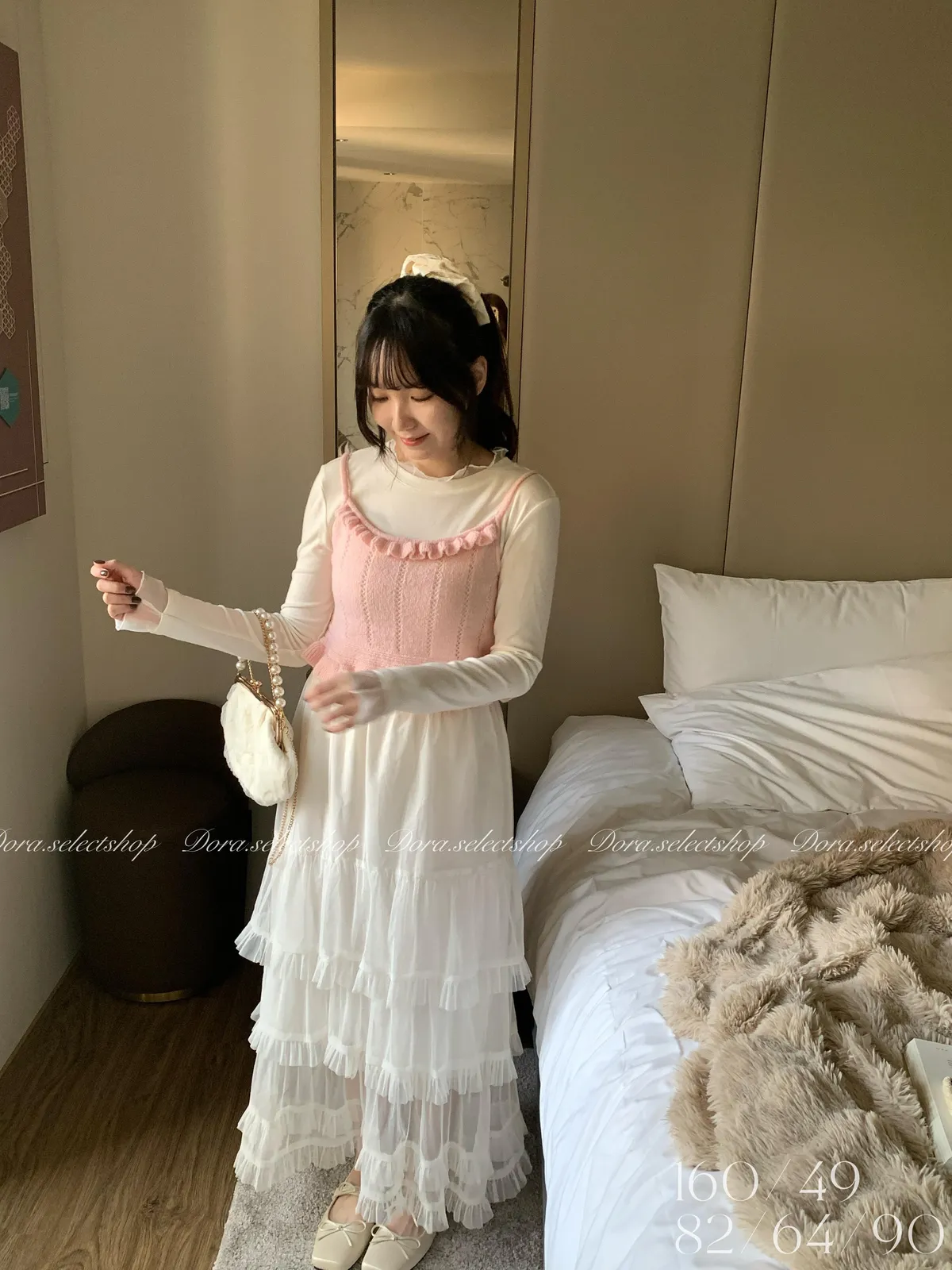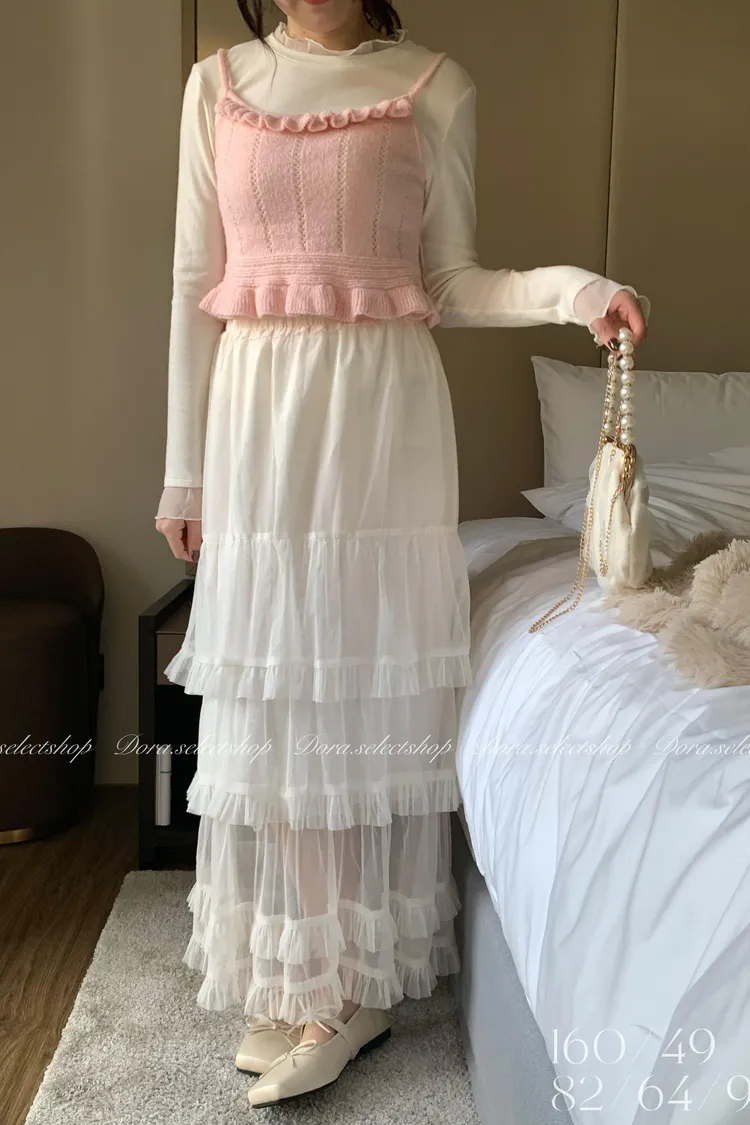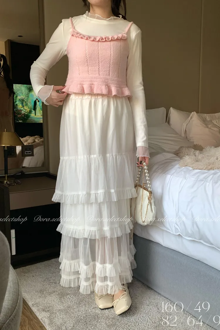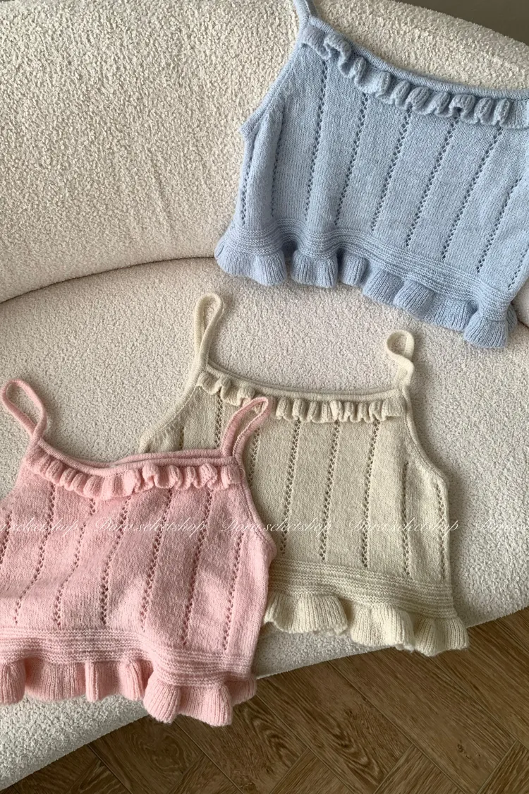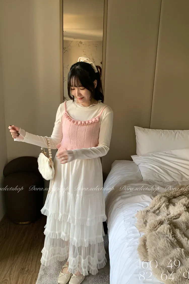 🇰🇷復古荷葉邊羊毛針織背心---粉