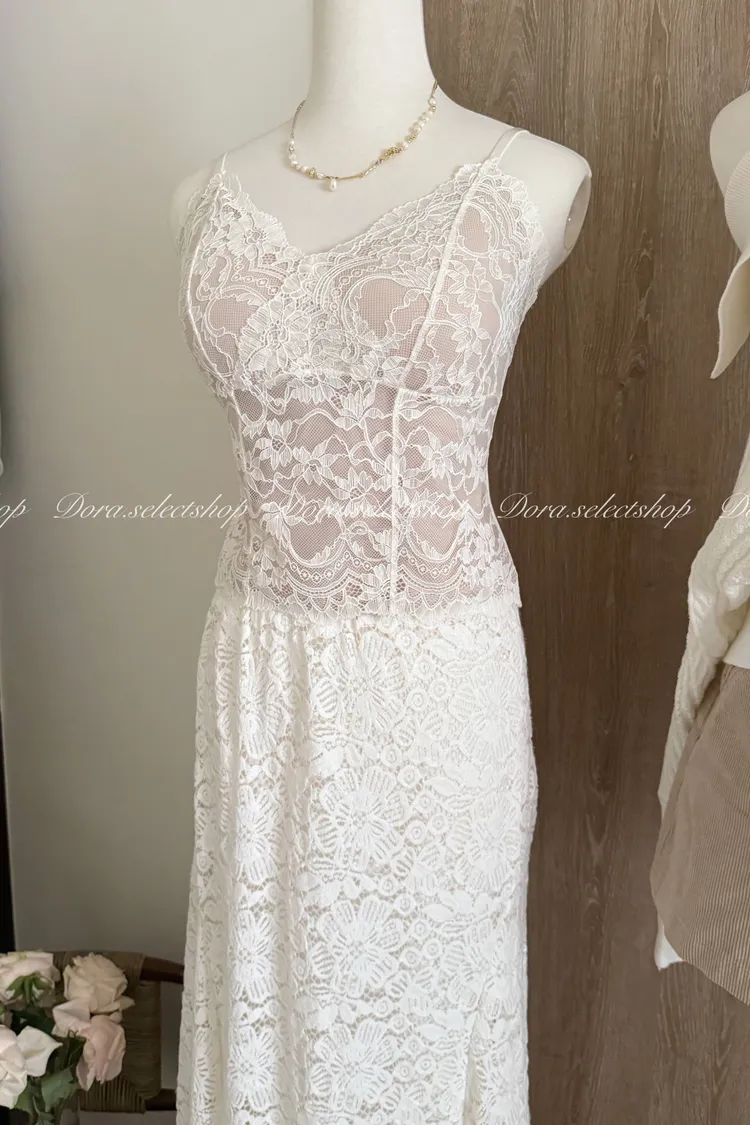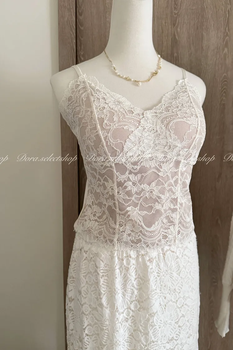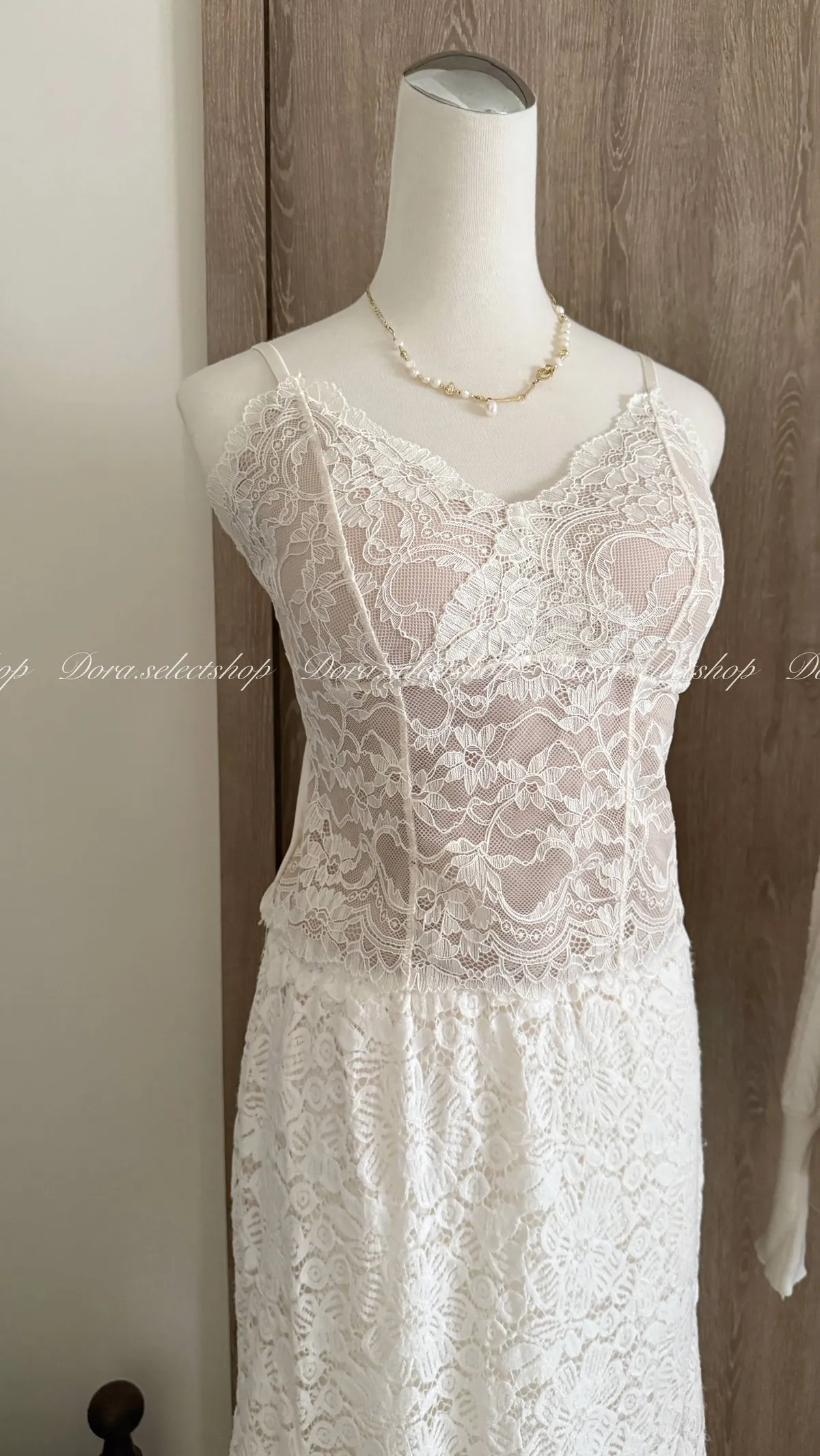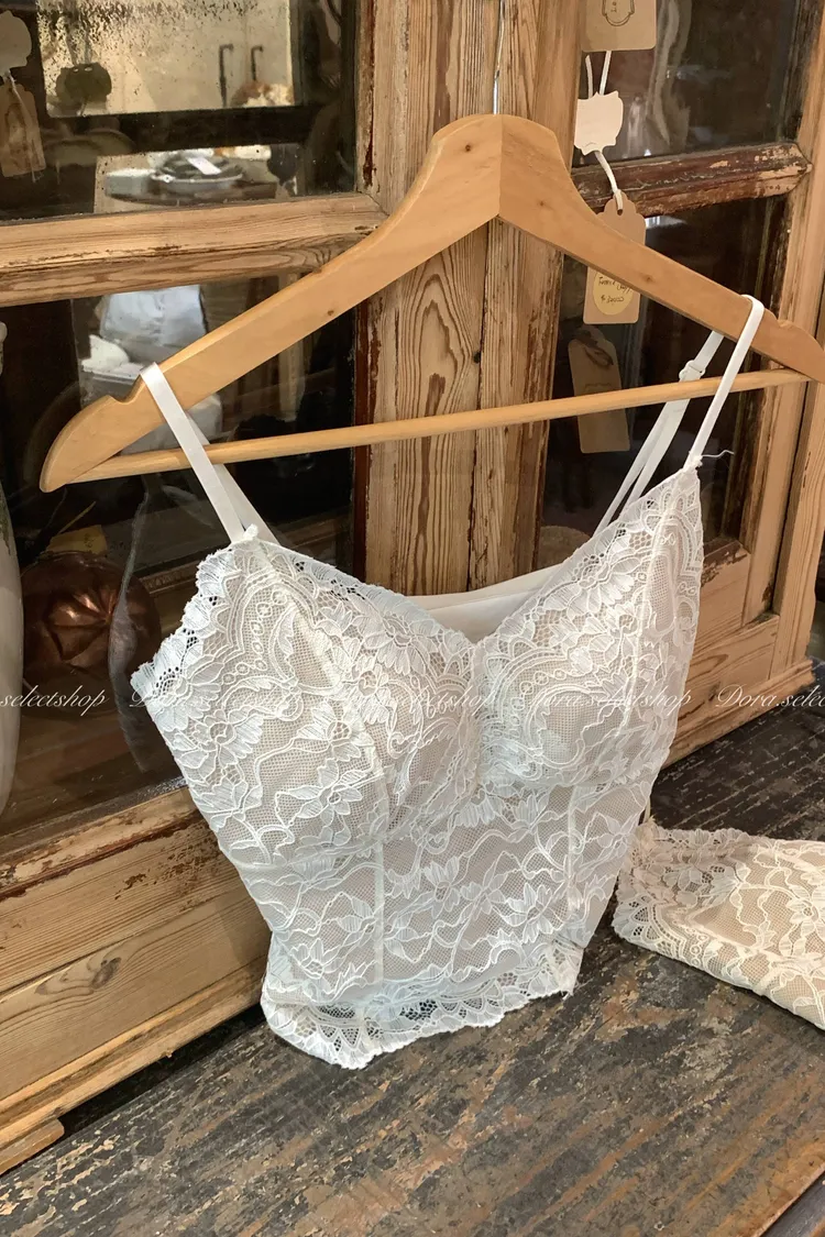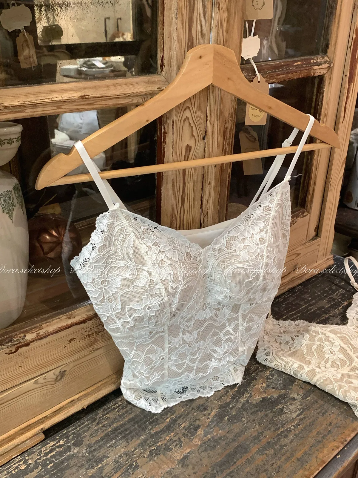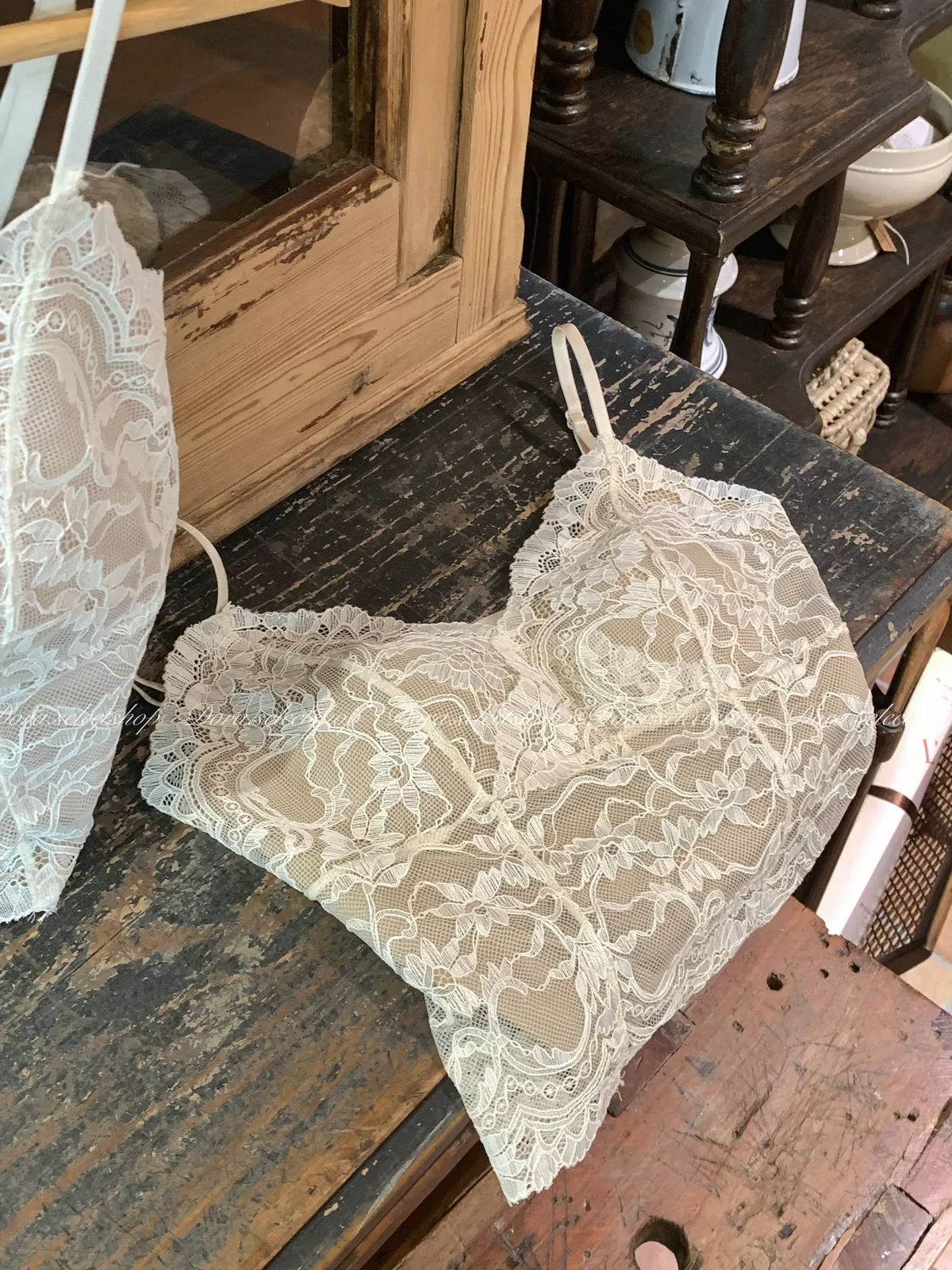 法式浪漫蕾絲罩杯背心(附罩杯)---米白