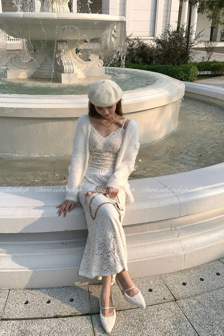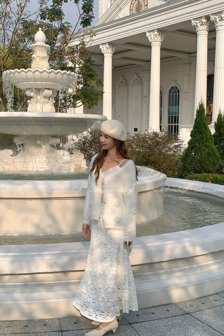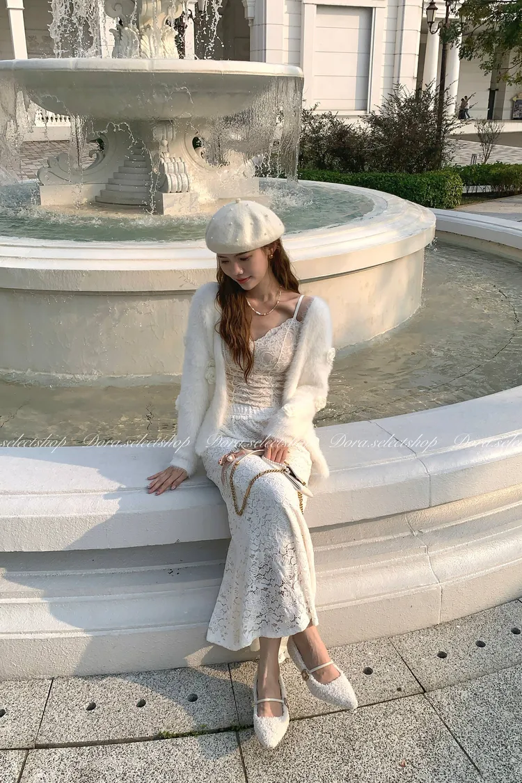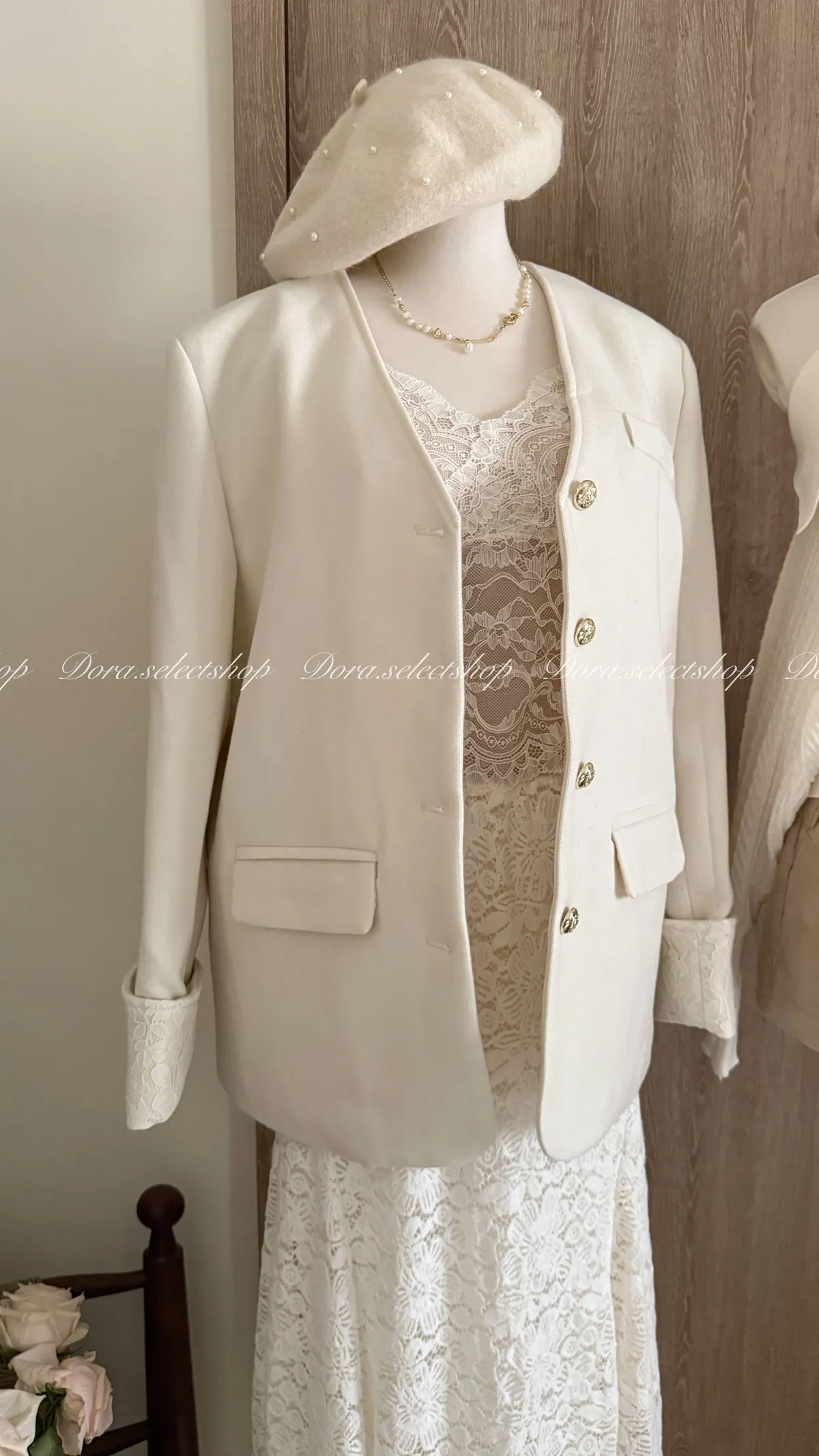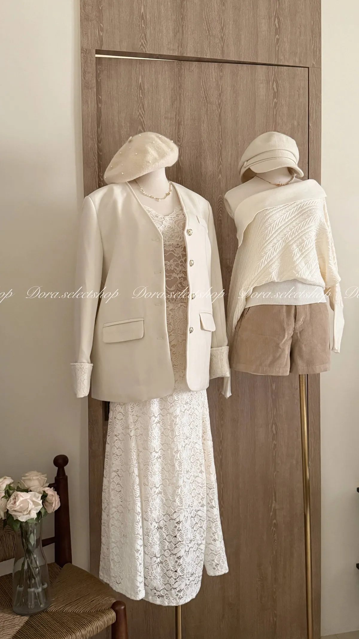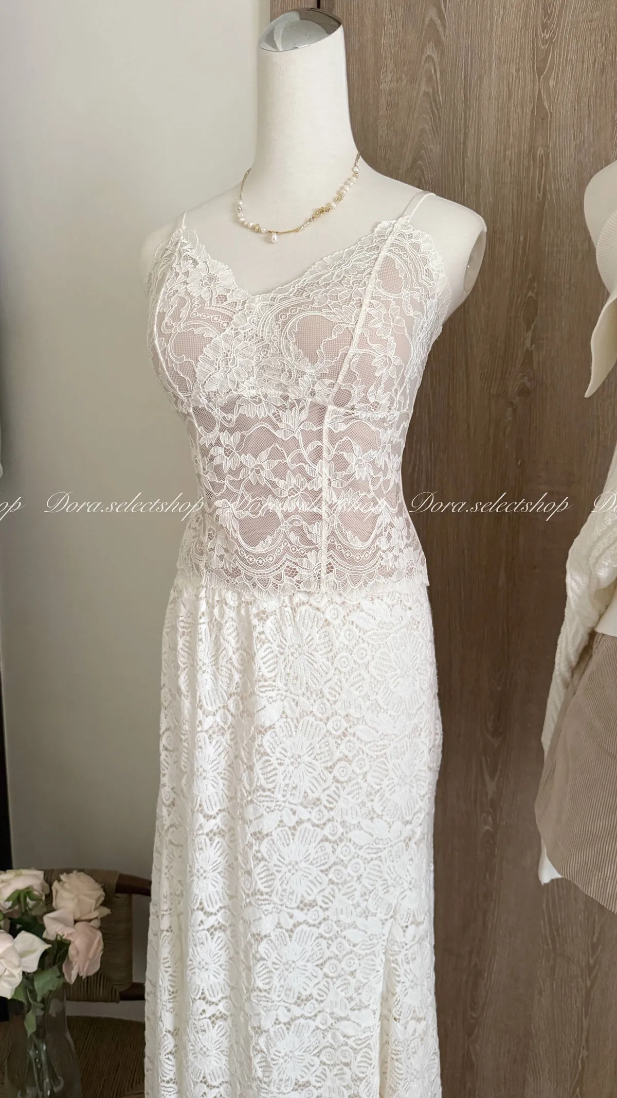 法式浪漫蕾絲罩杯背心(附罩杯)---米白
