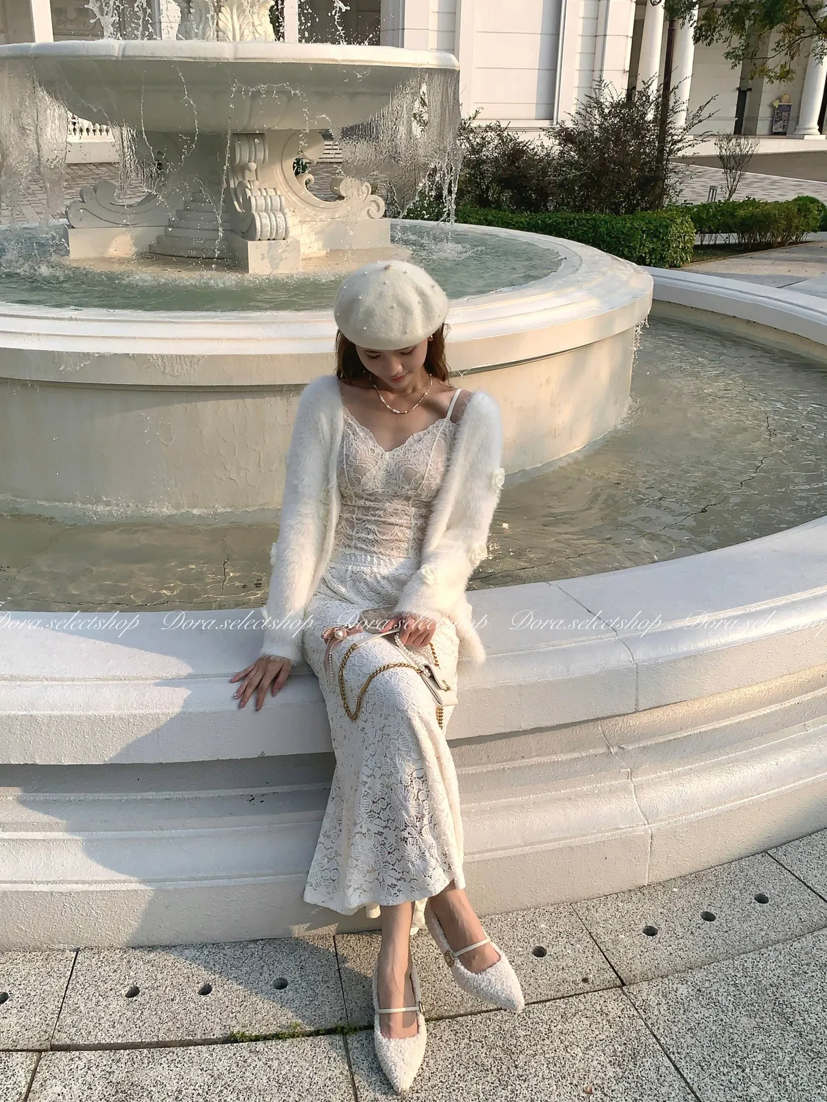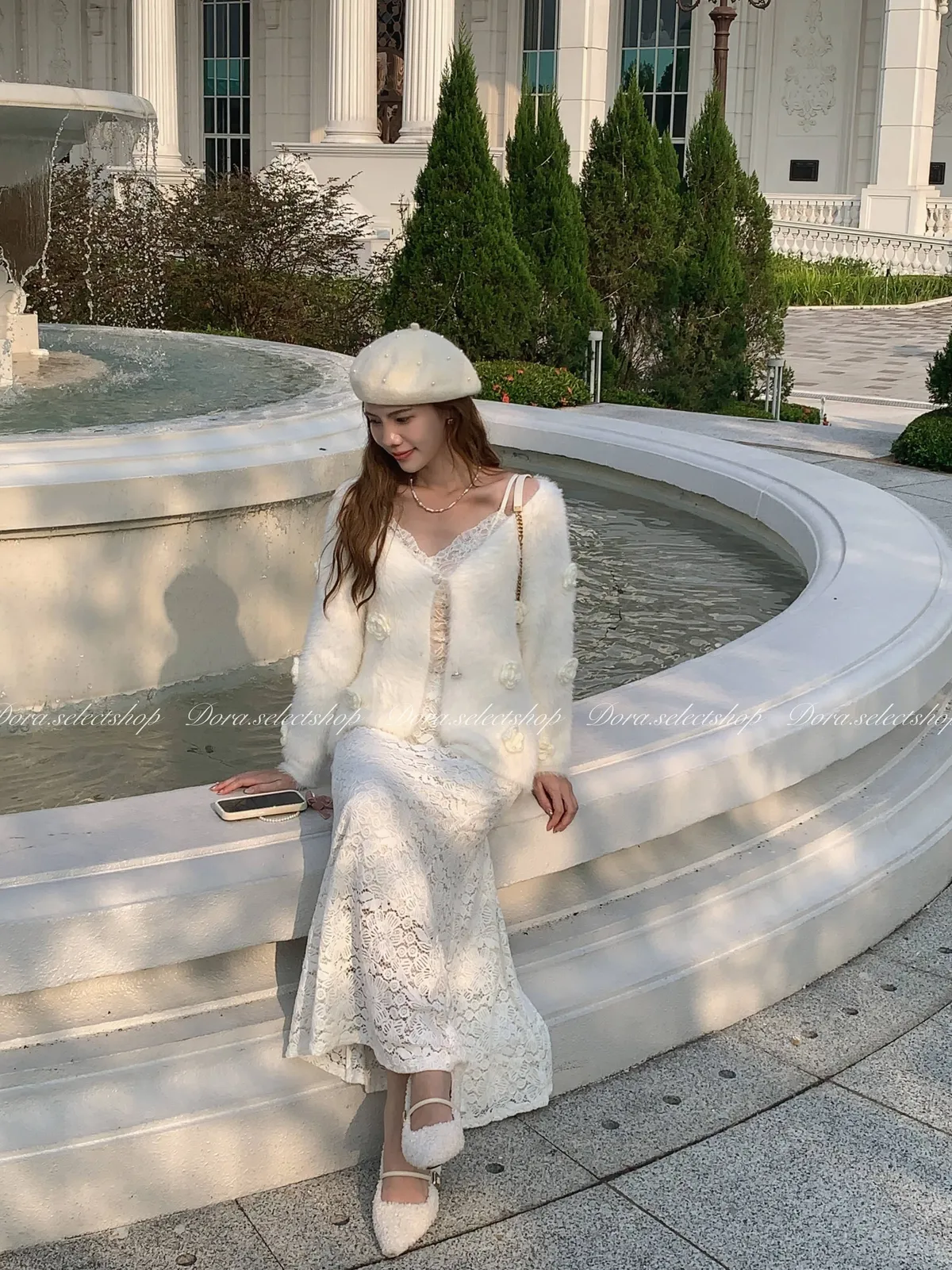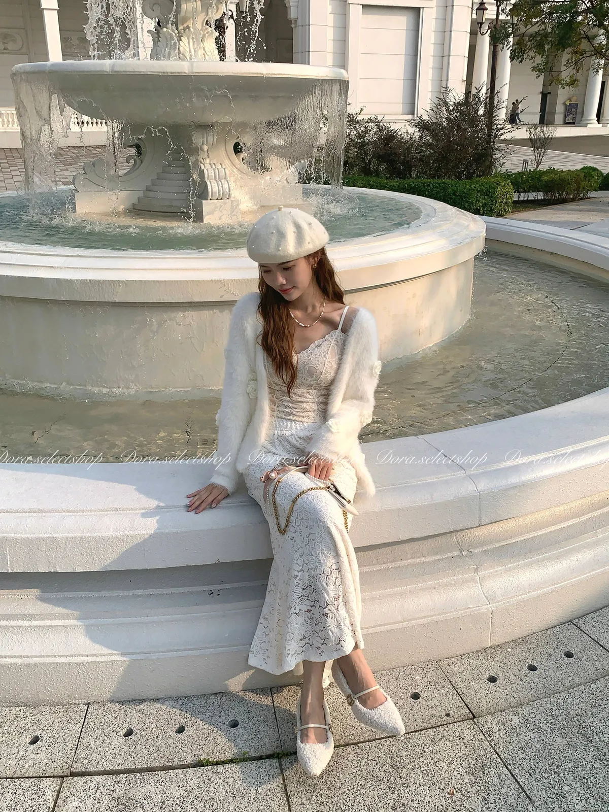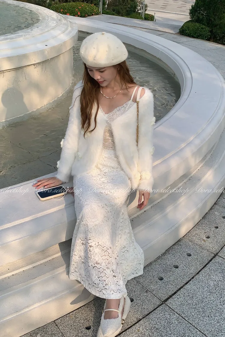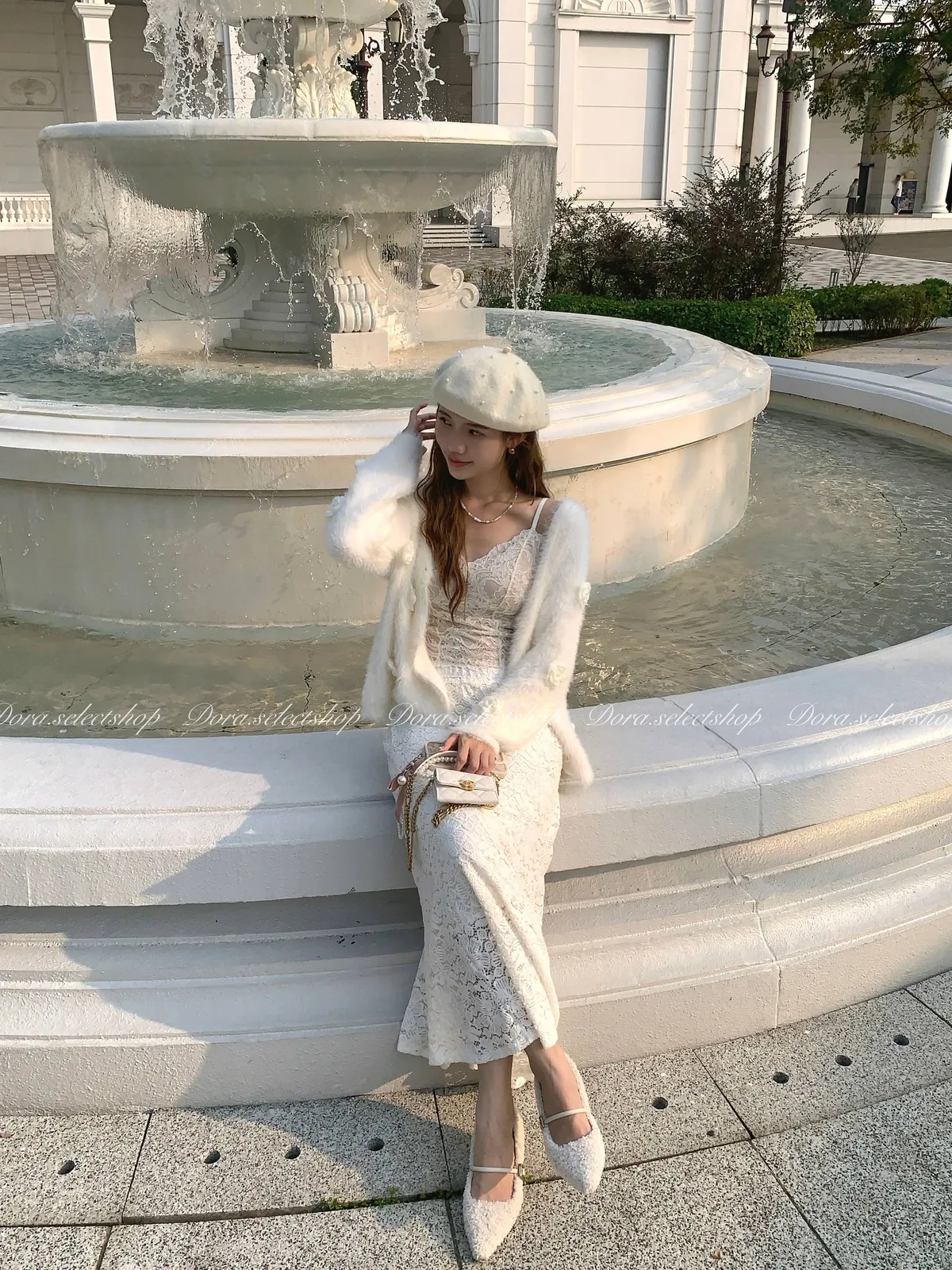 法式浪漫蕾絲罩杯背心(附罩杯)---米白