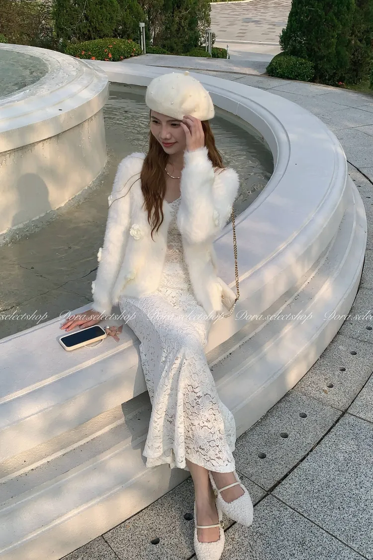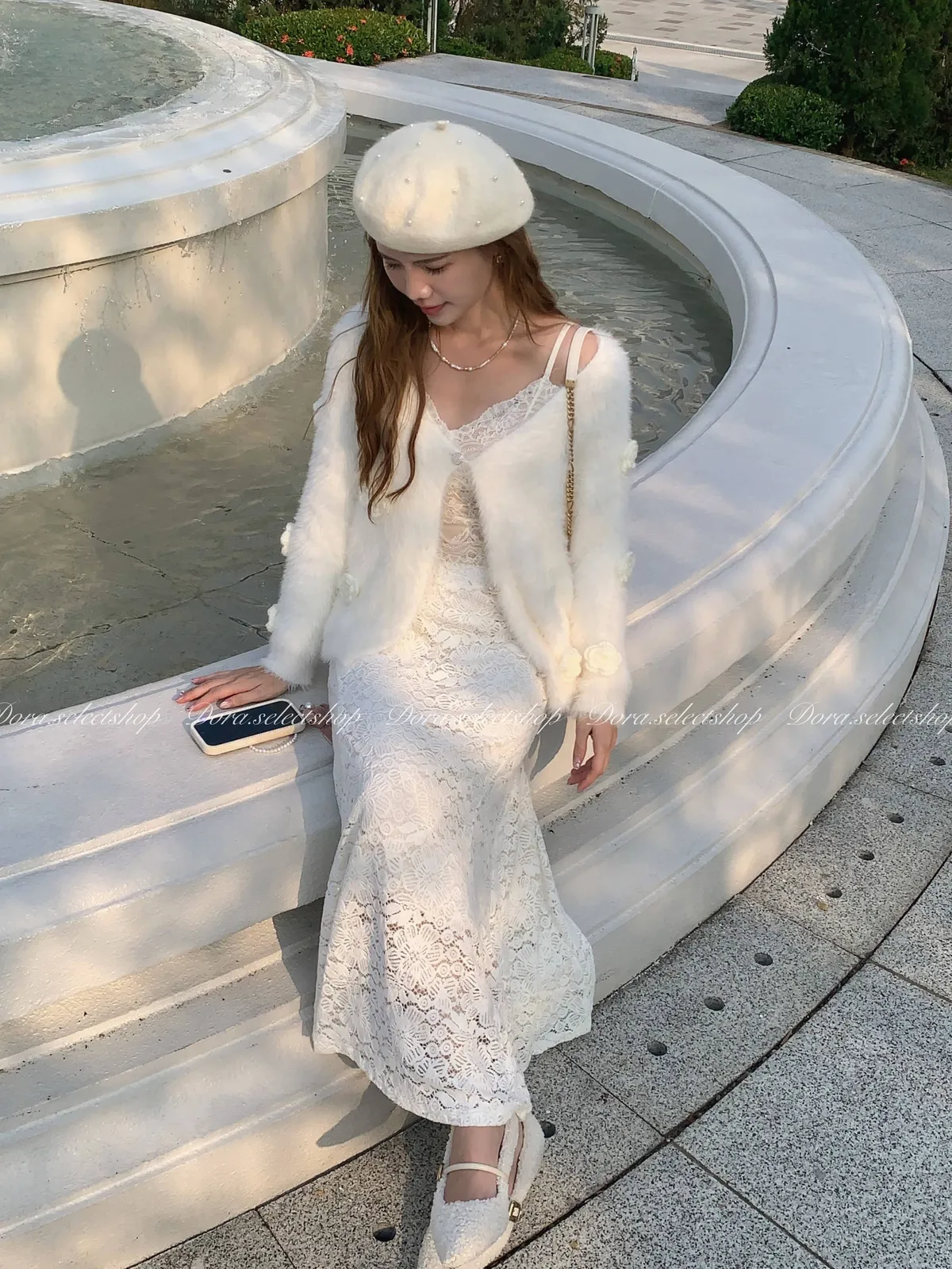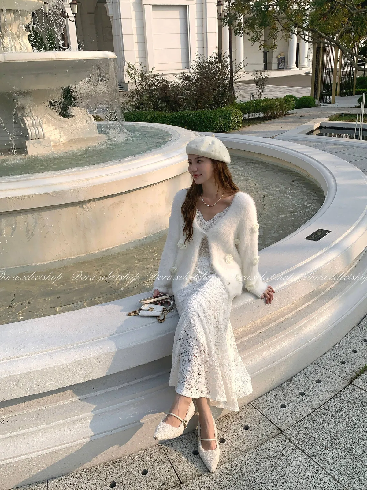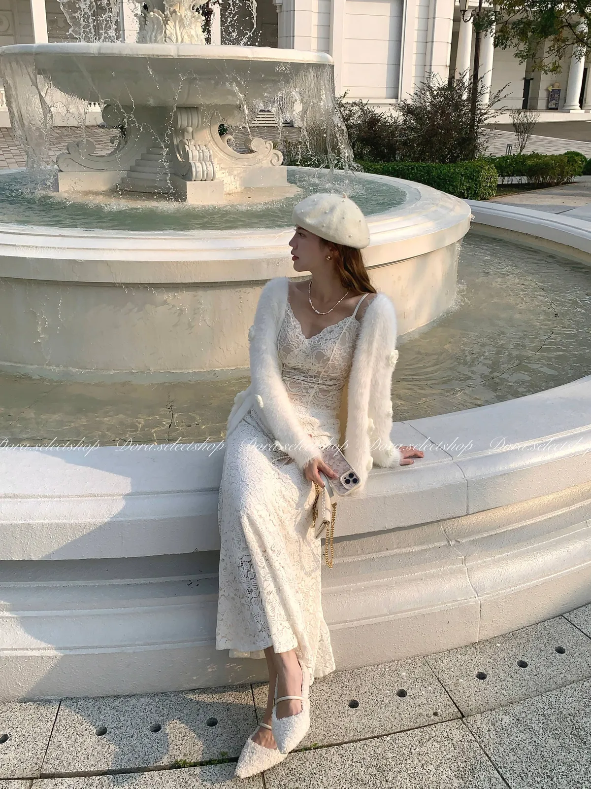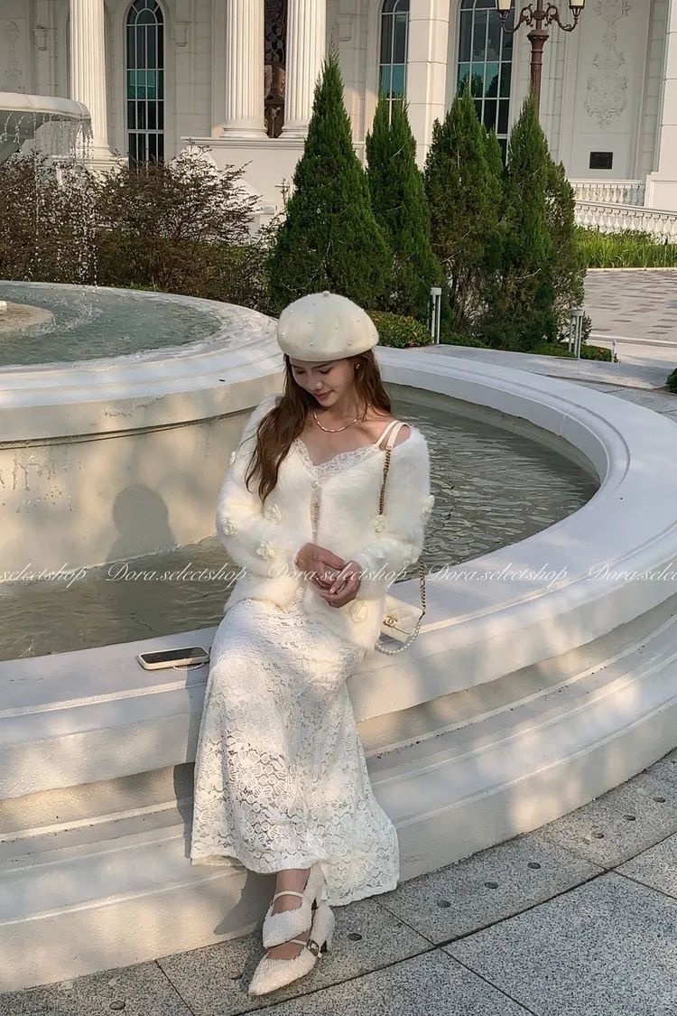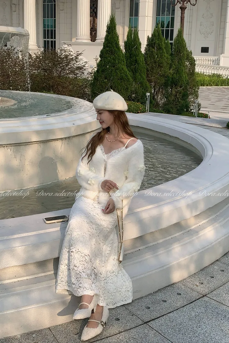 法式浪漫蕾絲罩杯背心(附罩杯)---米白