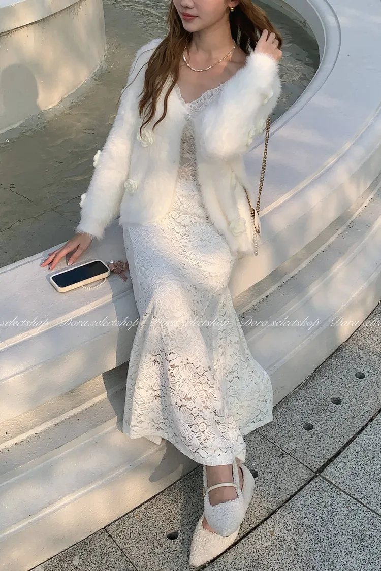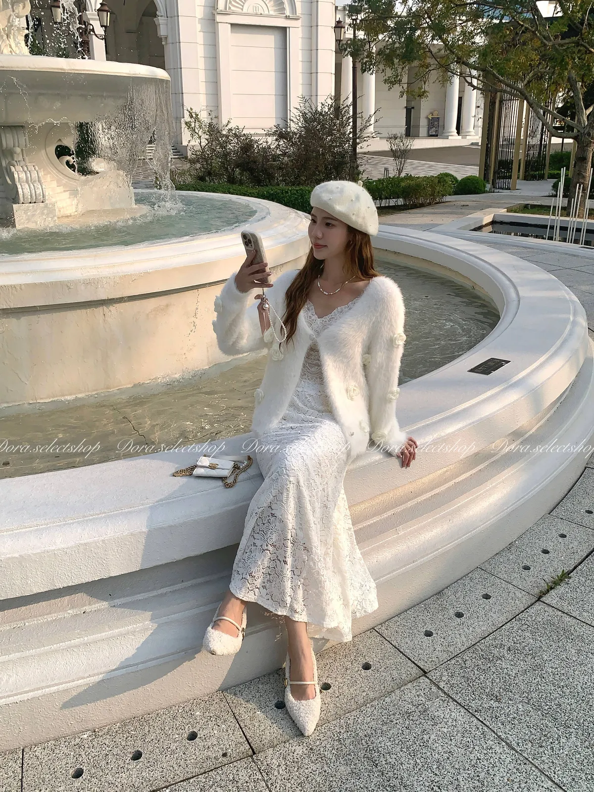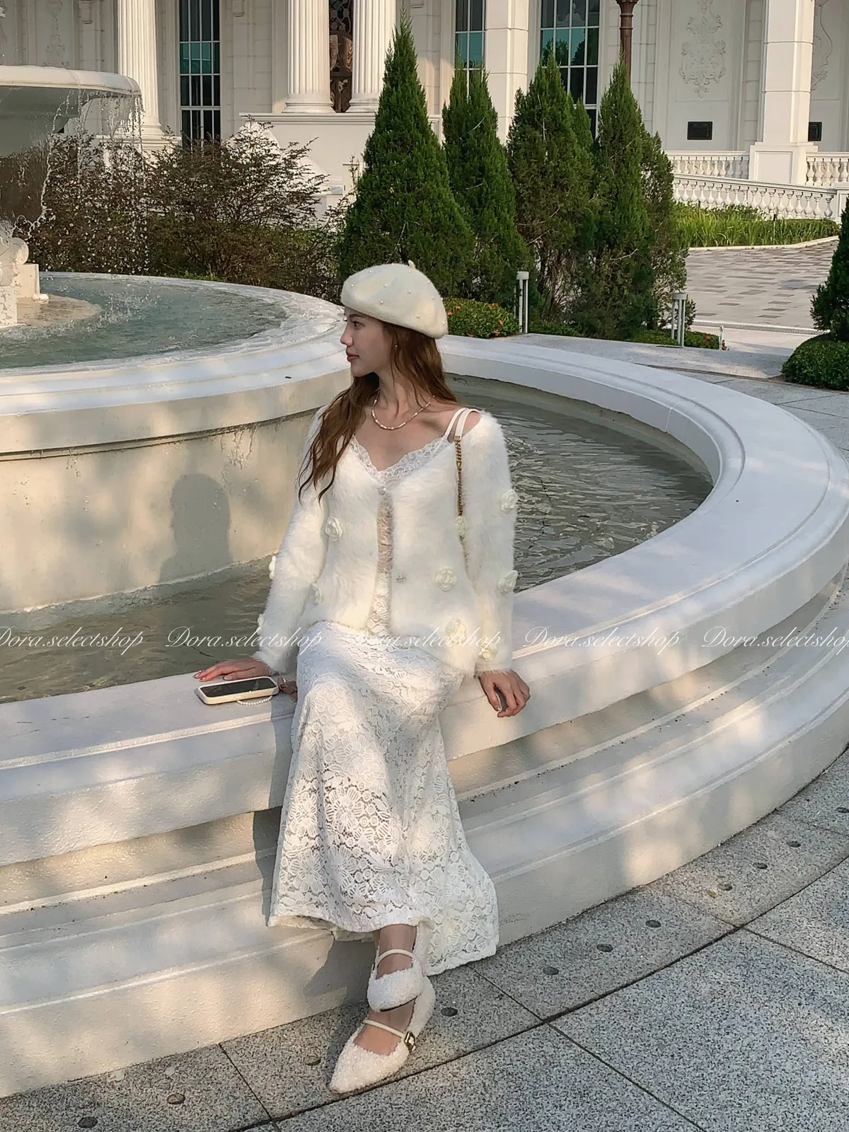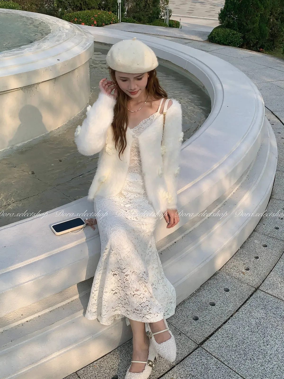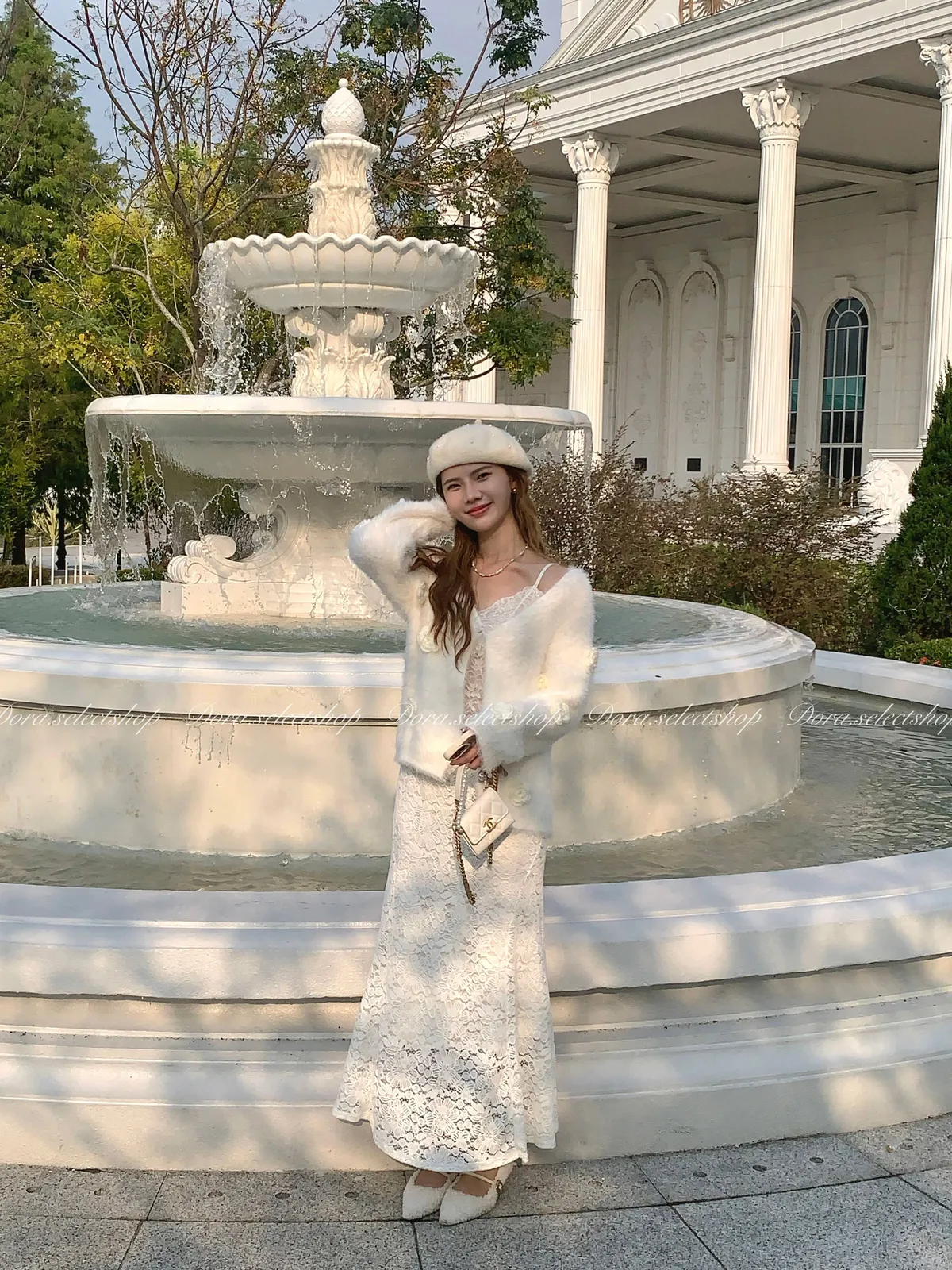 法式浪漫蕾絲罩杯背心(附罩杯)---米白