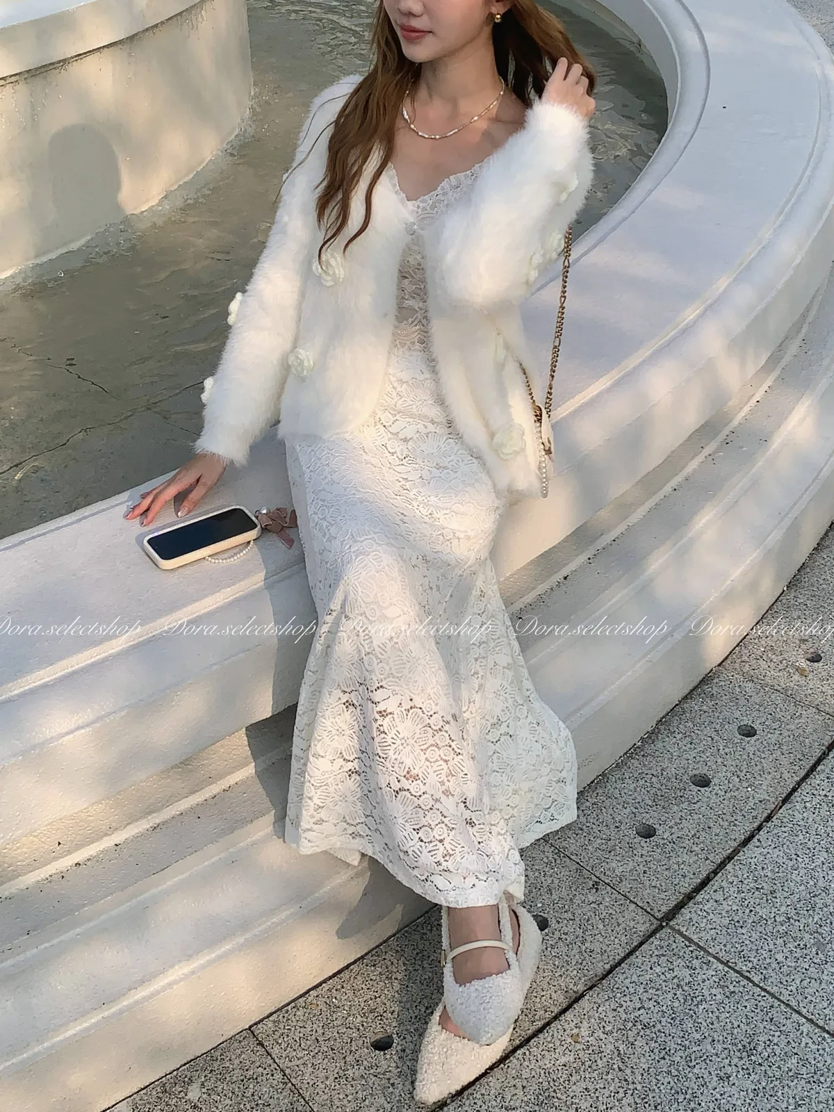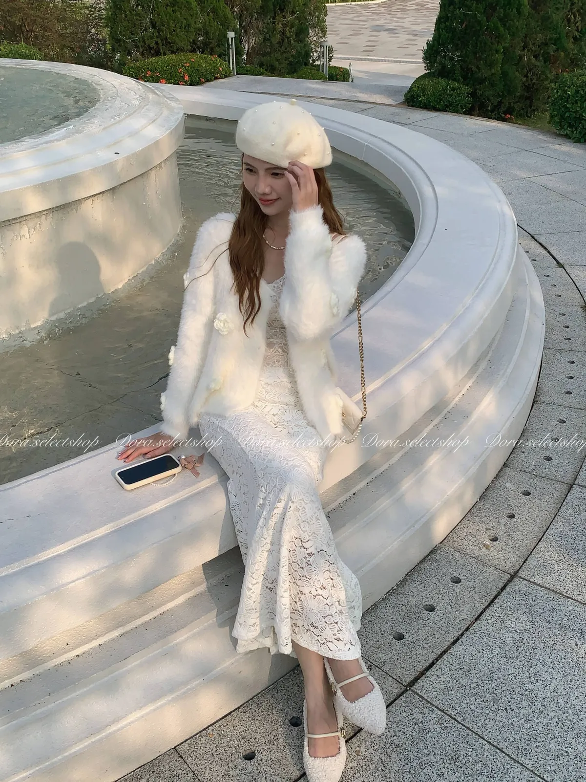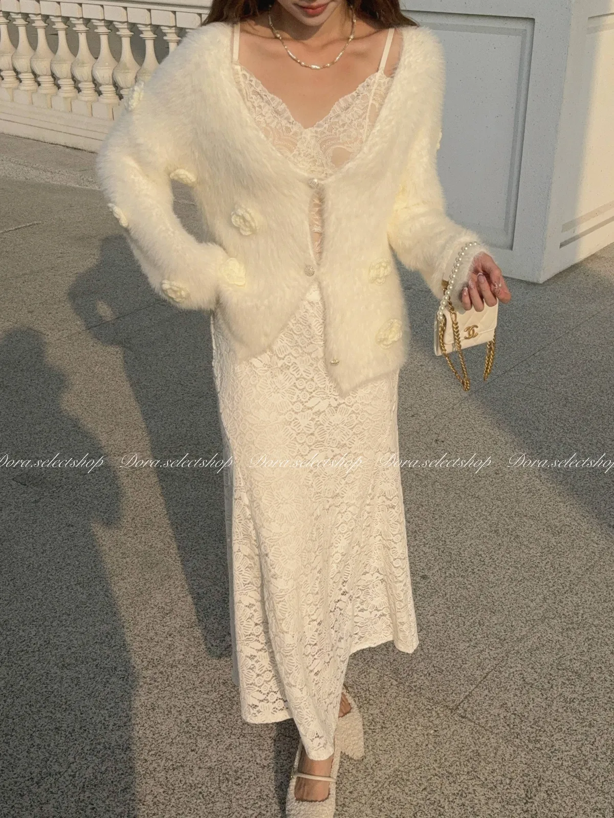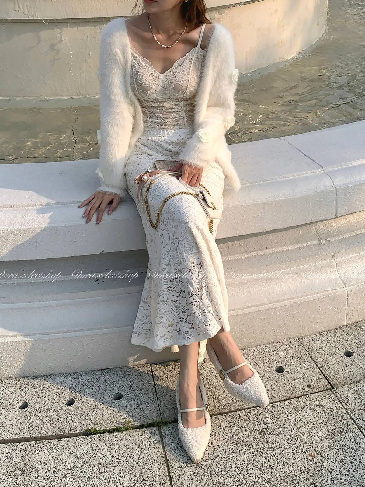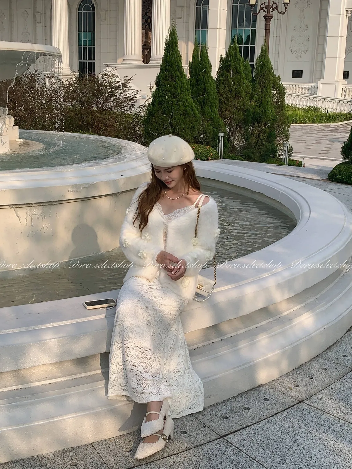 法式浪漫蕾絲罩杯背心(附罩杯)---米白