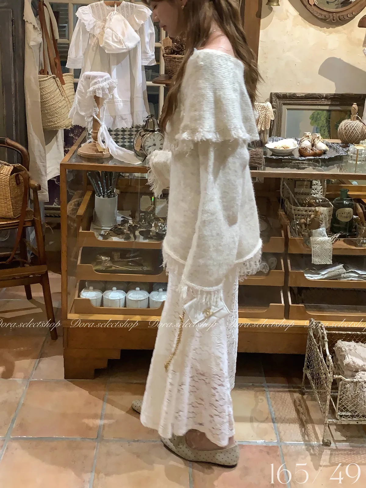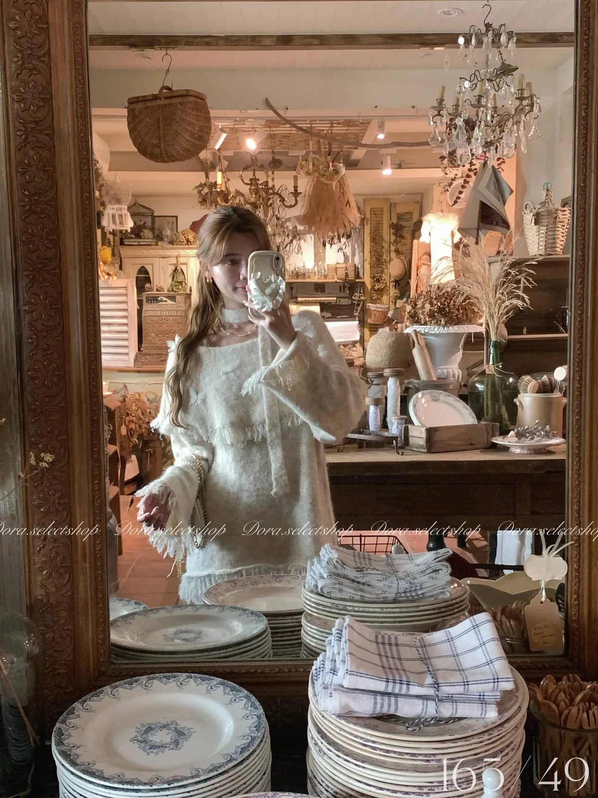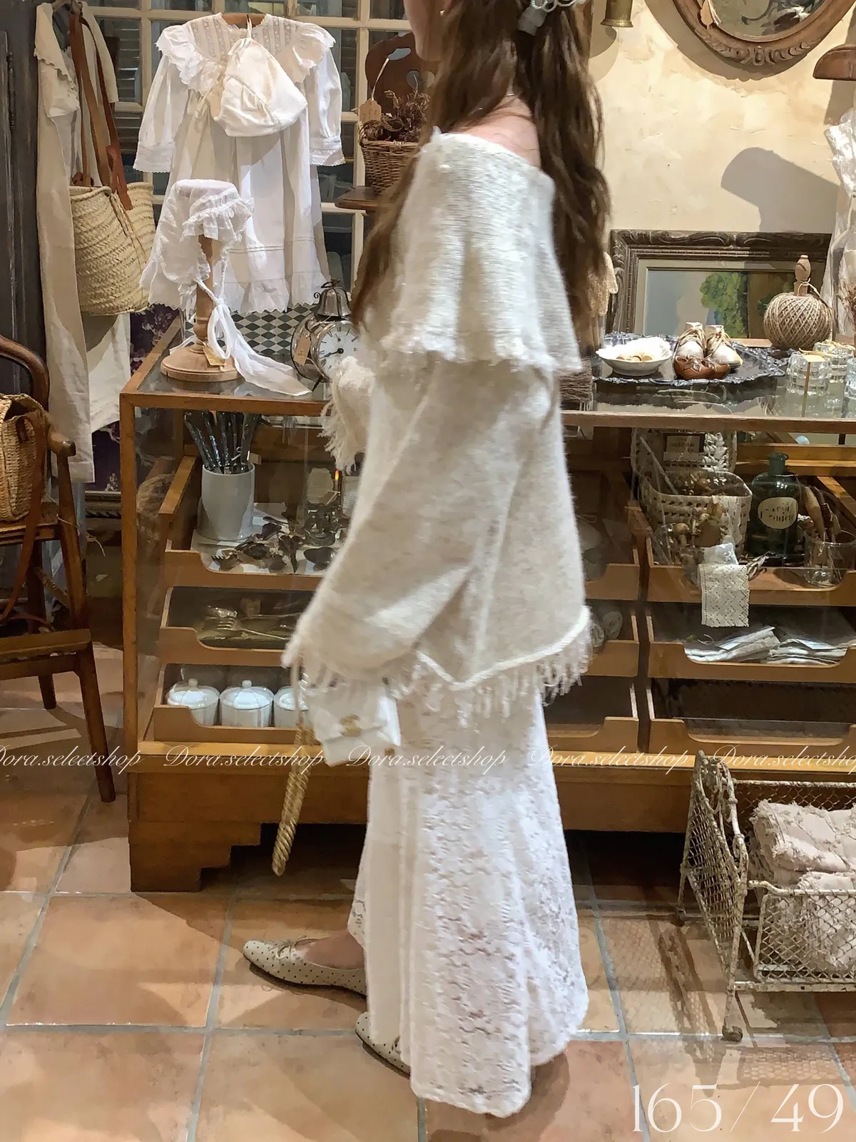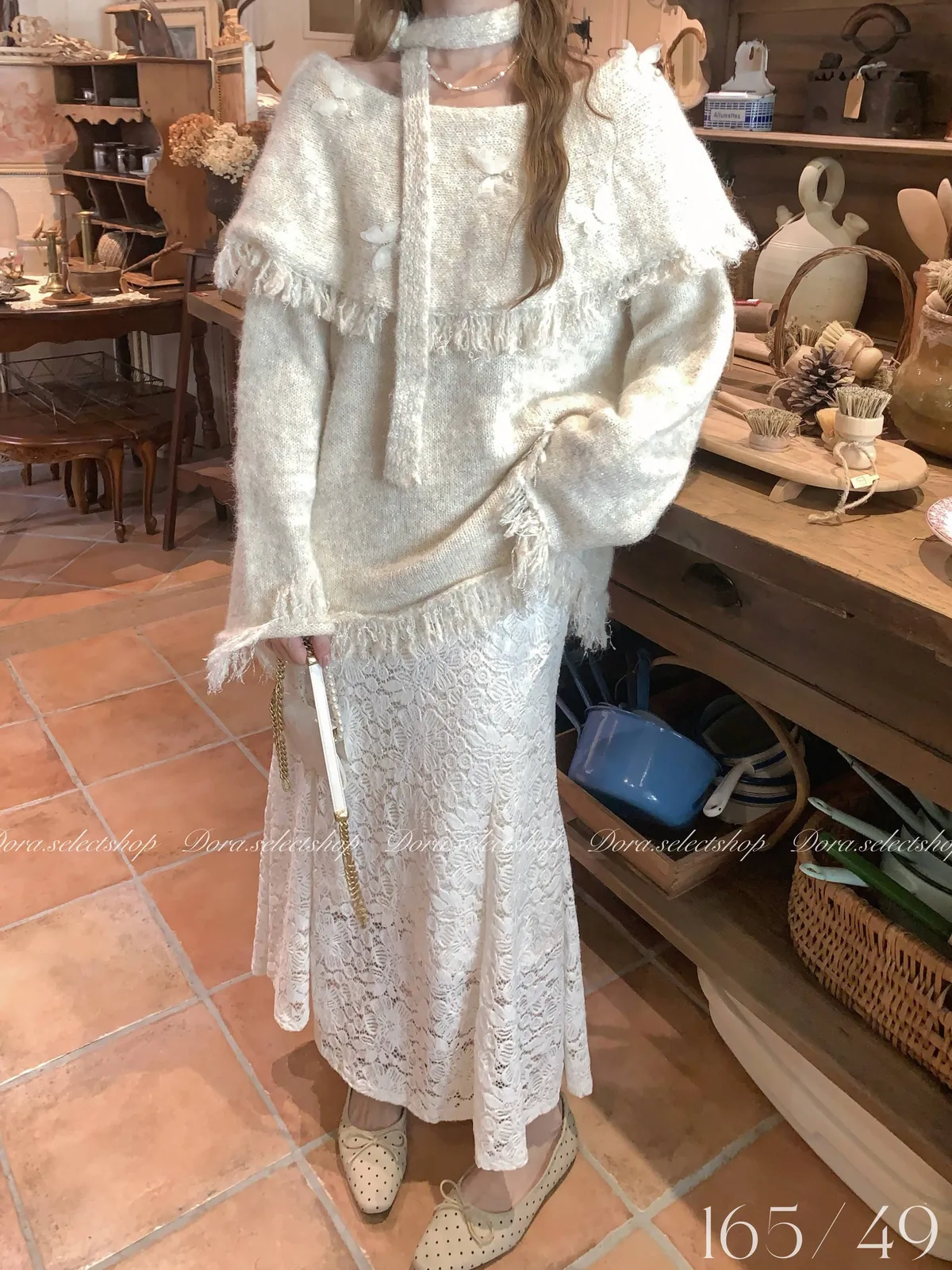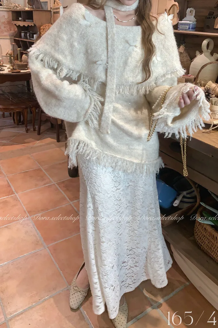 設計感大船領鬚邊寬鬆毛衣(附綁帶)---燕麥