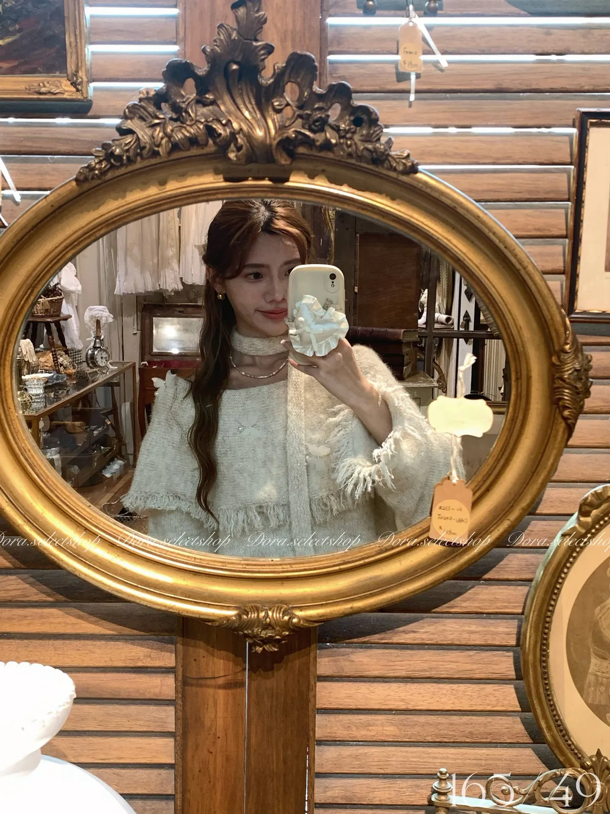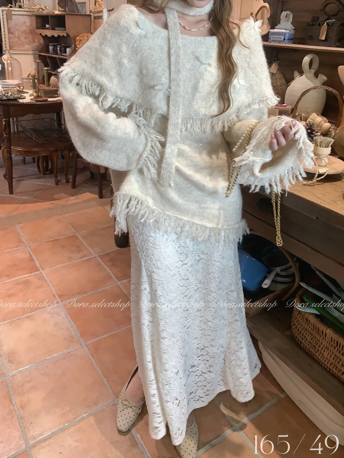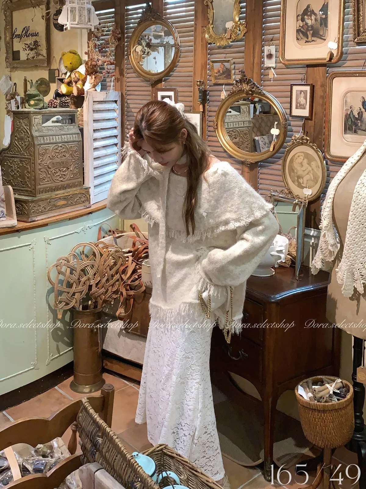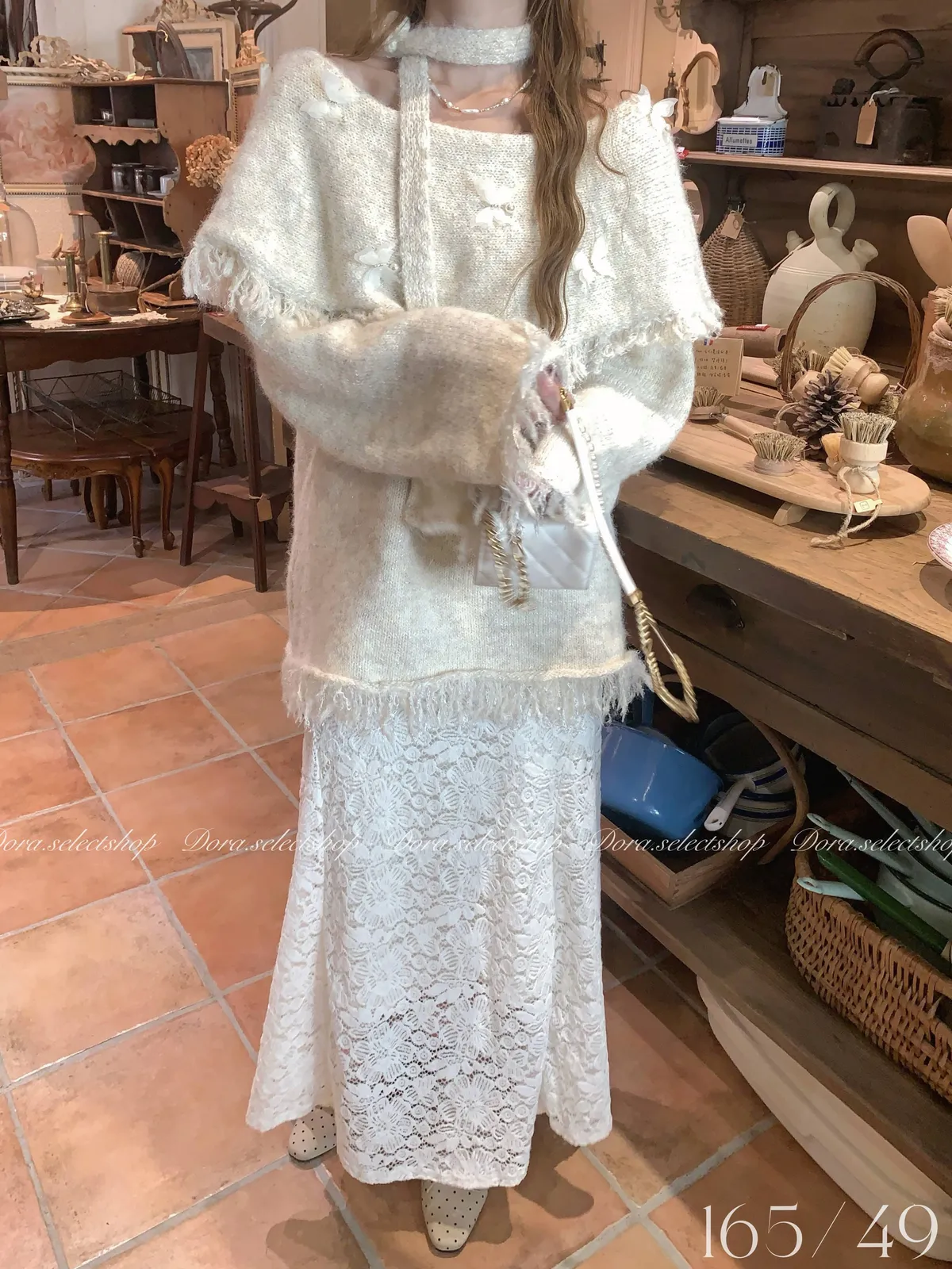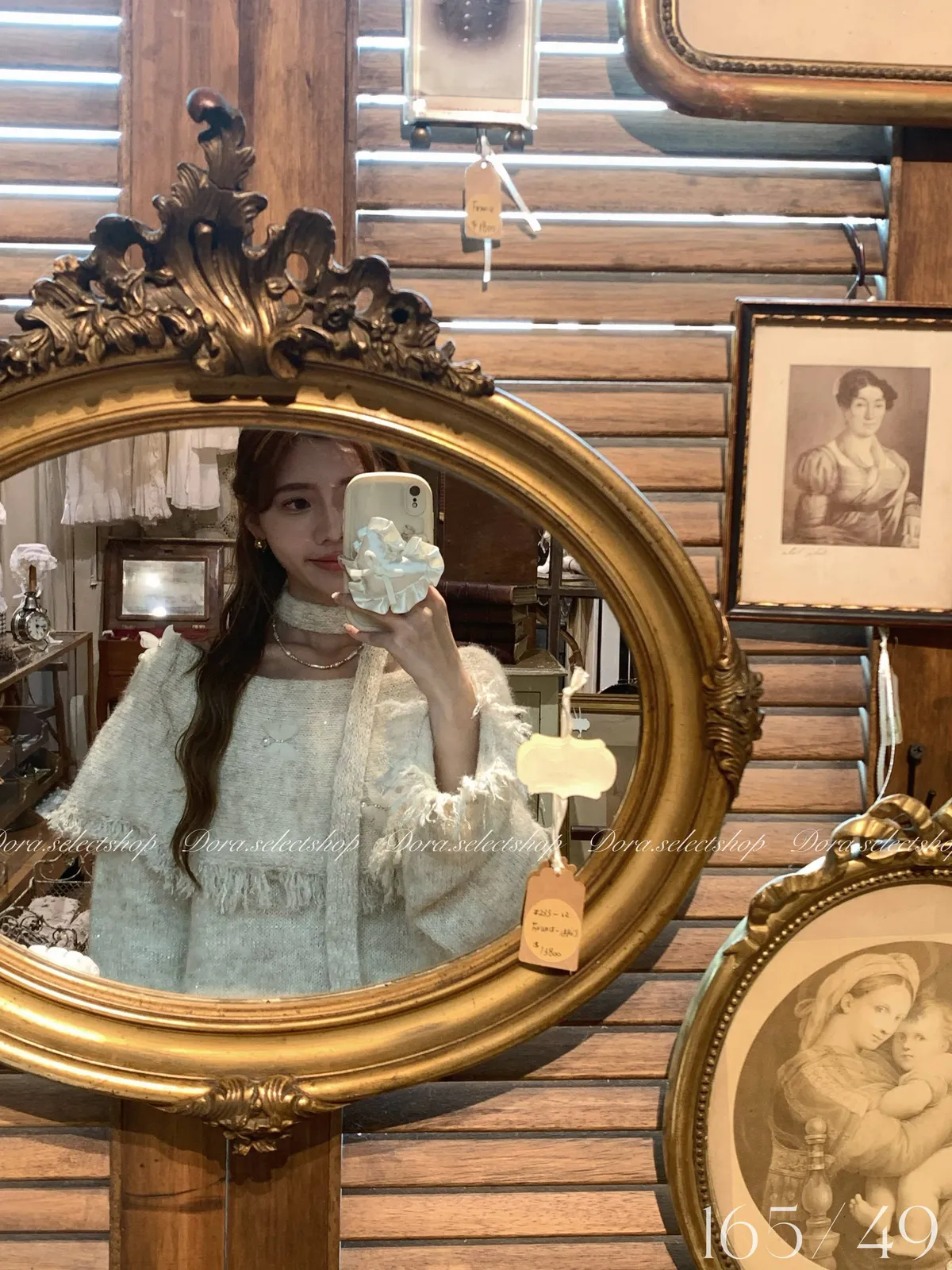 設計感大船領鬚邊寬鬆毛衣(附綁帶)---燕麥