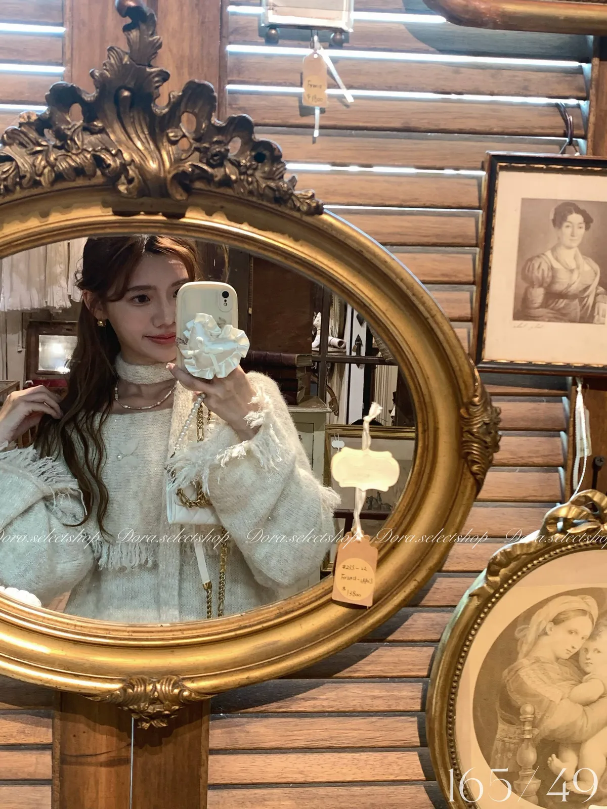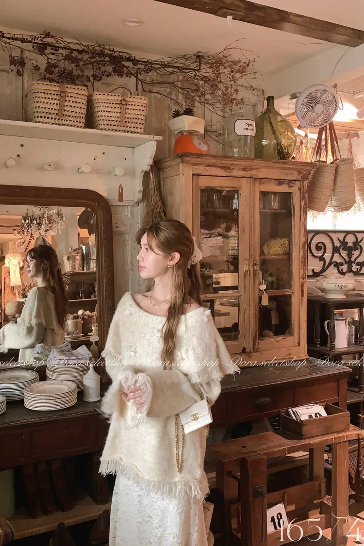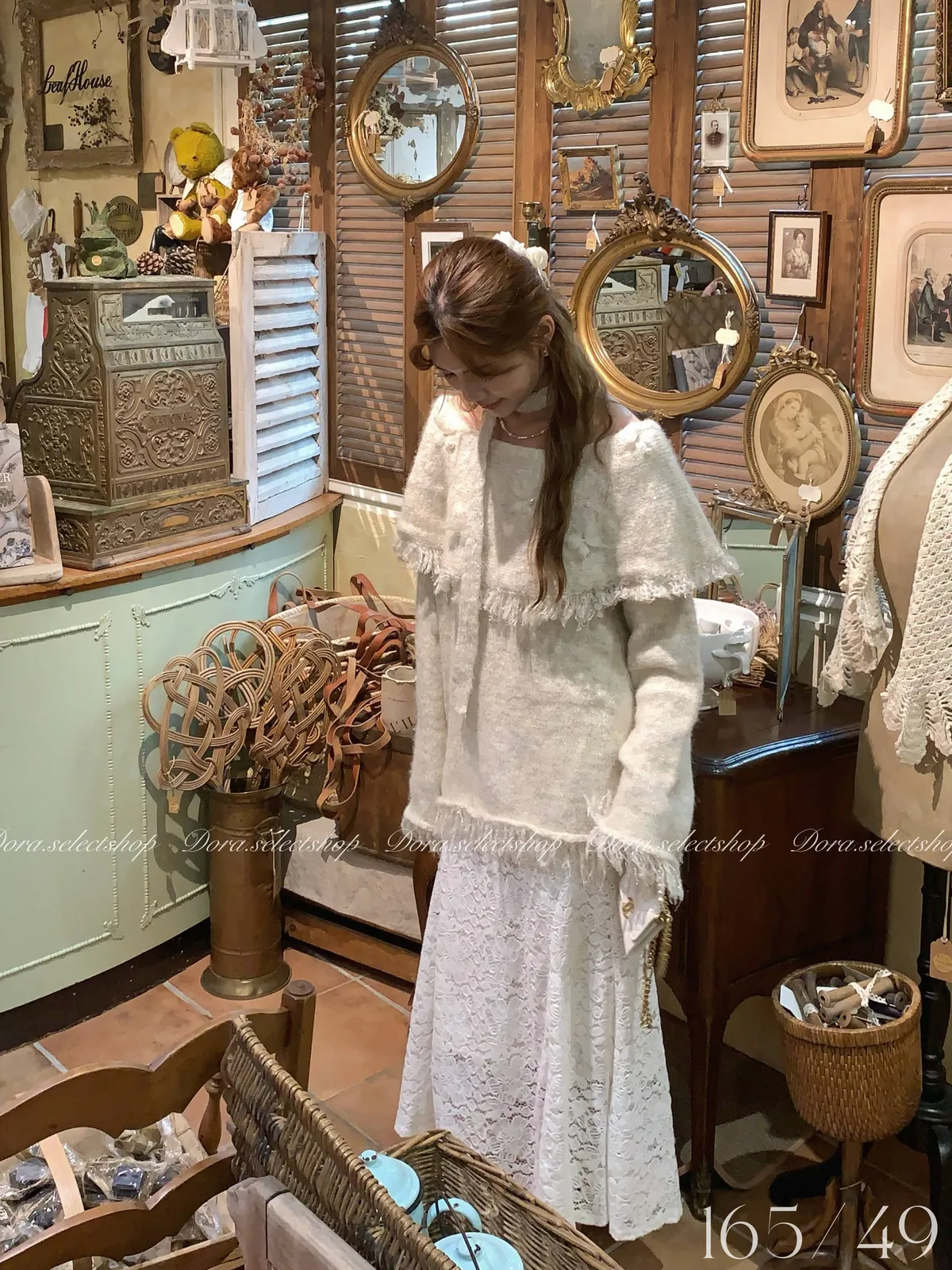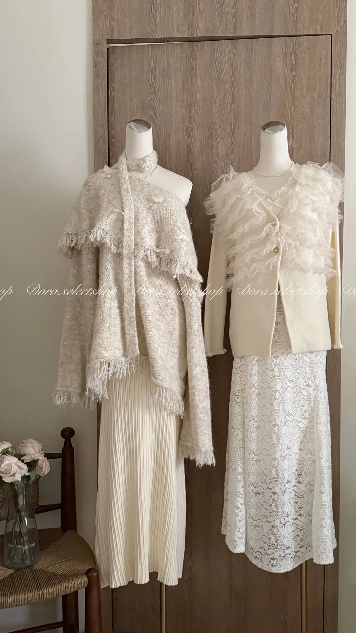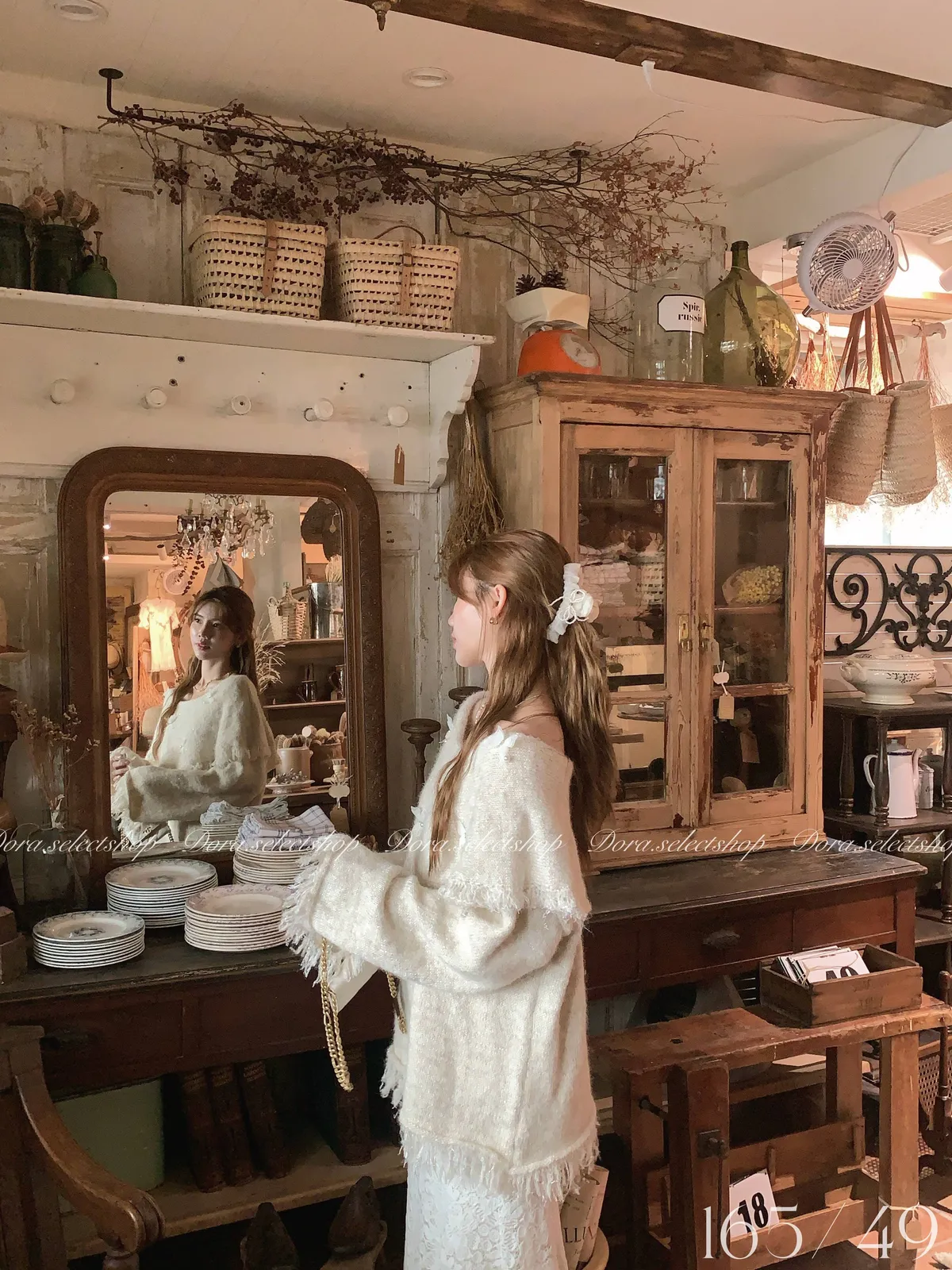 設計感大船領鬚邊寬鬆毛衣(附綁帶)---燕麥