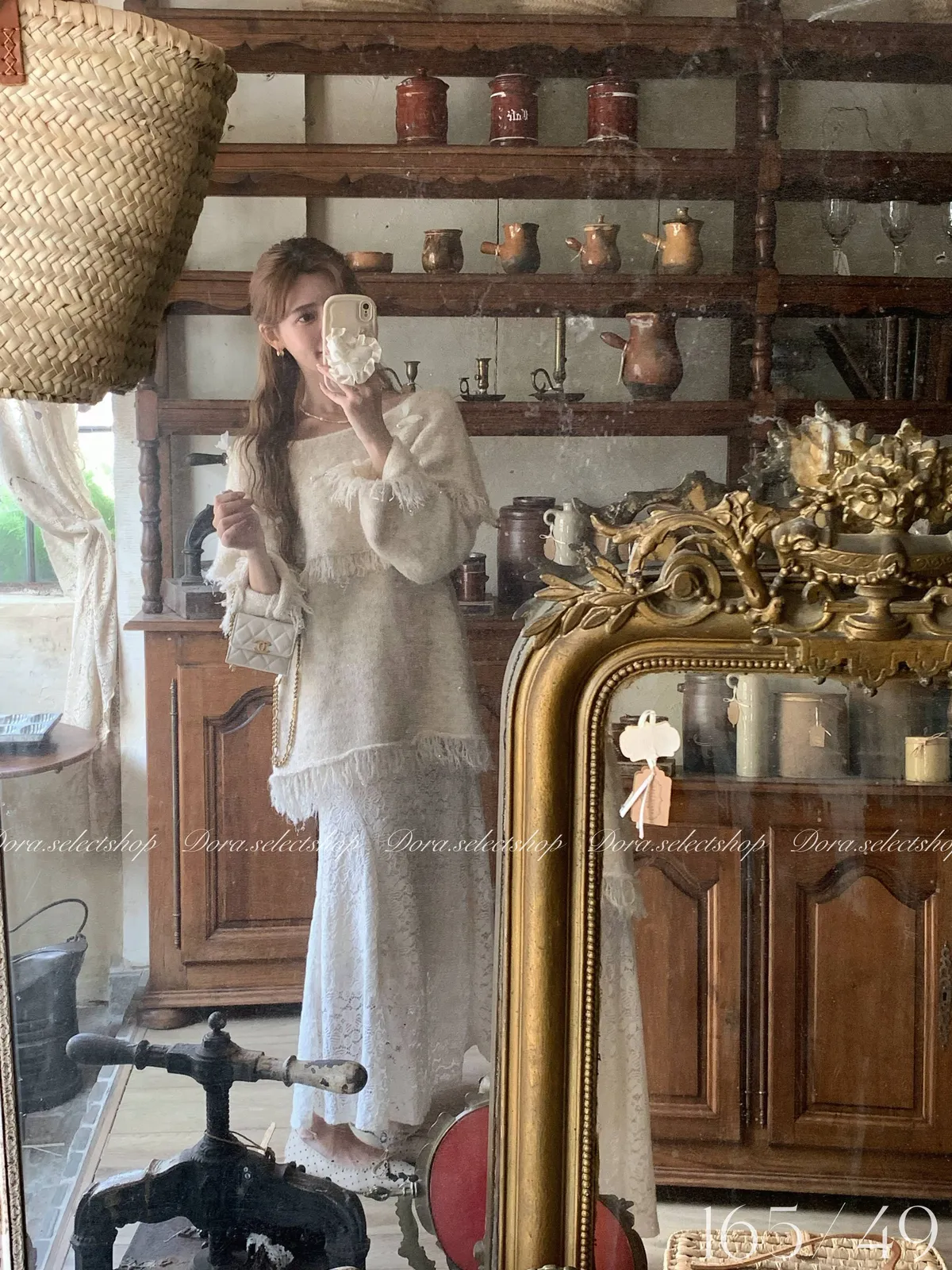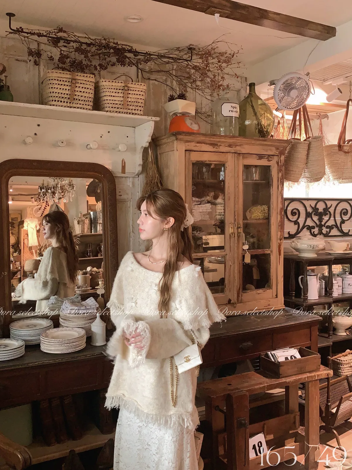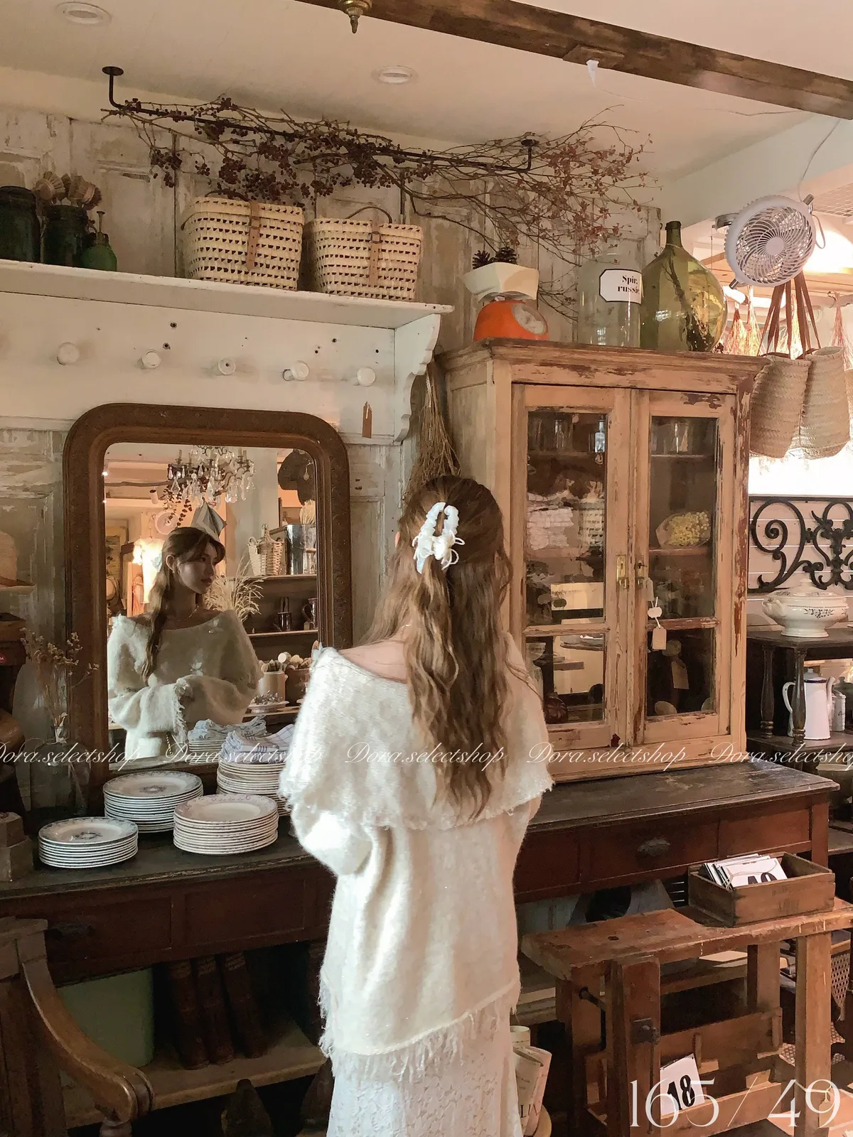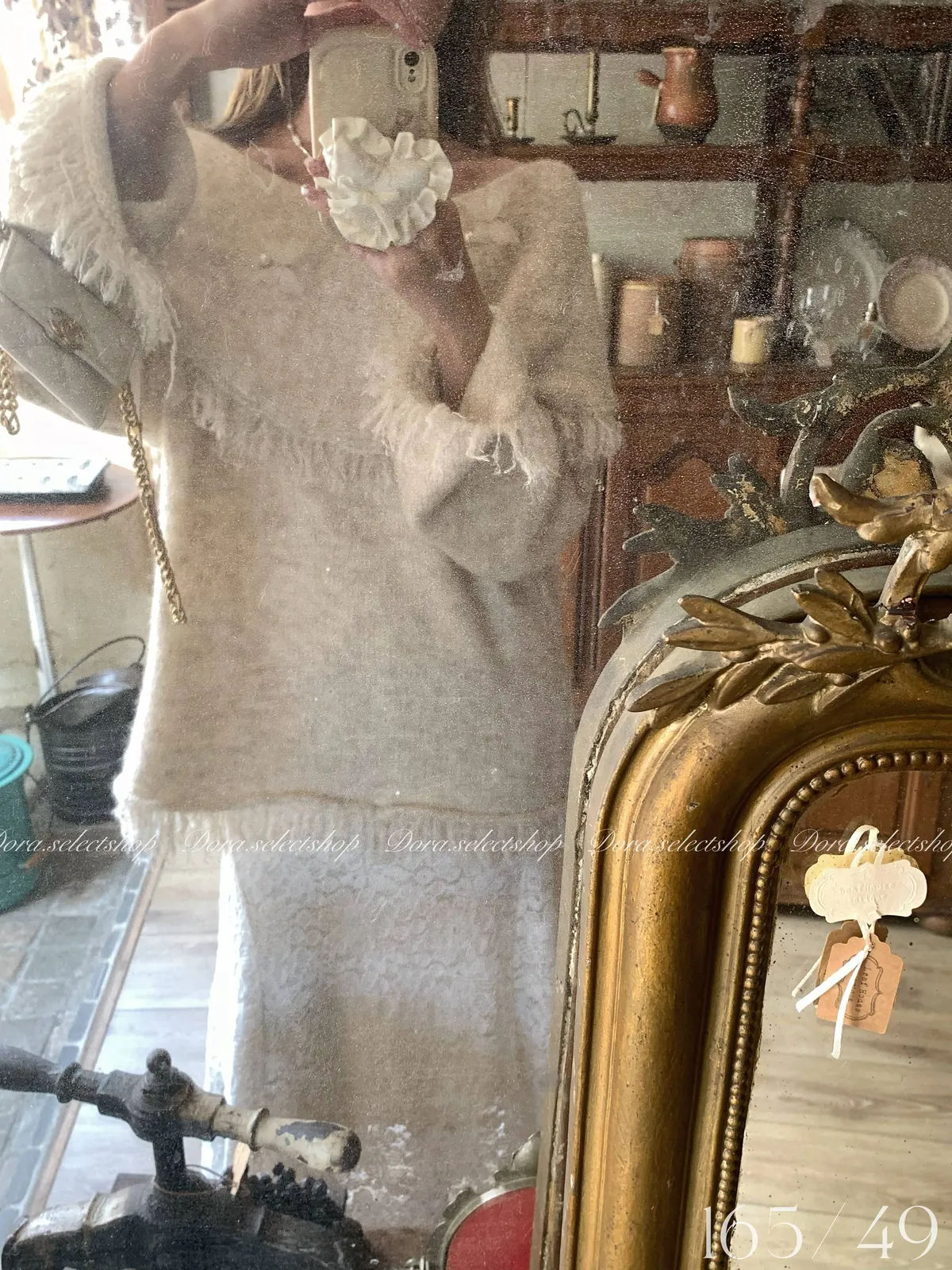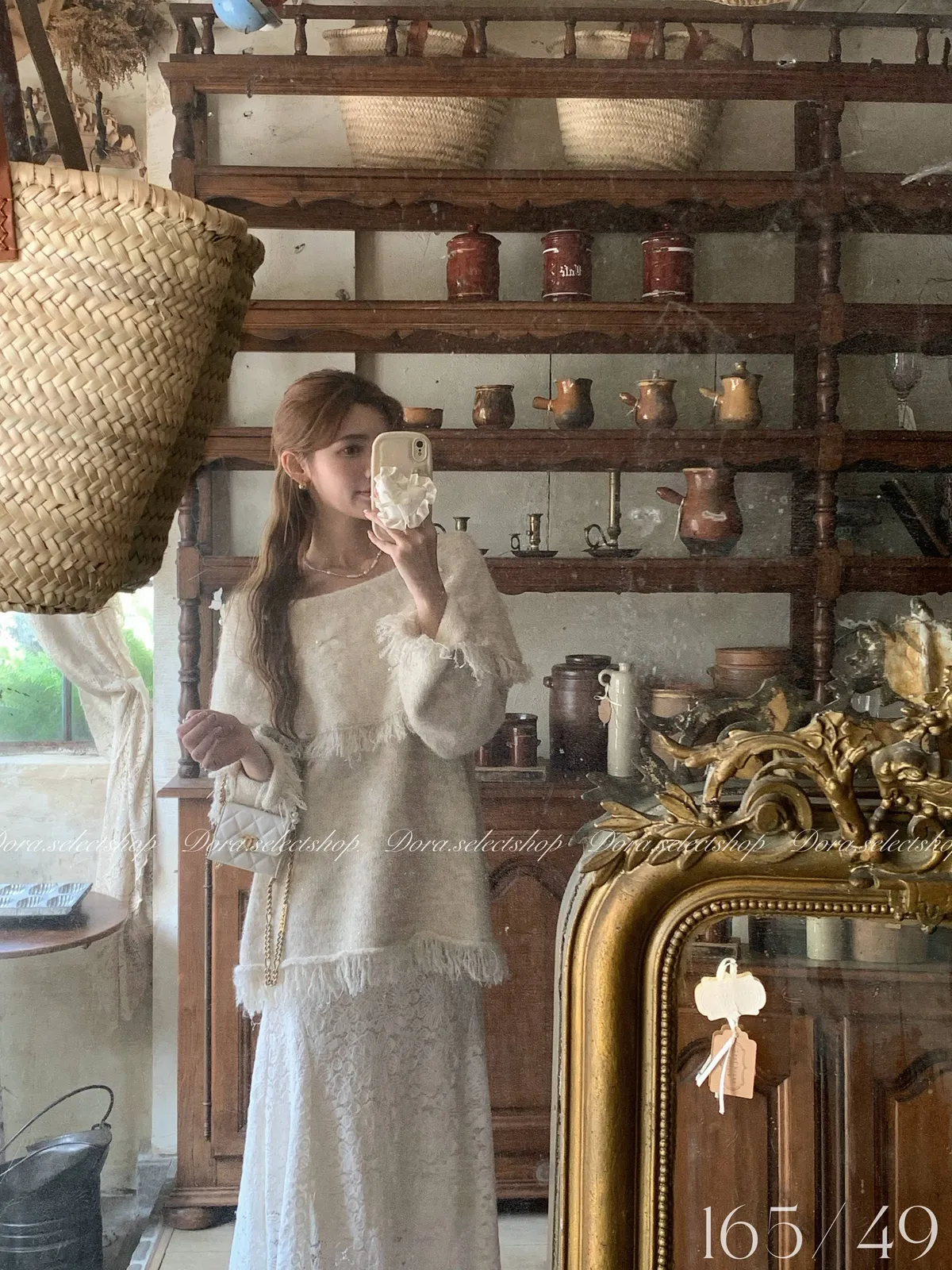 設計感大船領鬚邊寬鬆毛衣(附綁帶)---燕麥