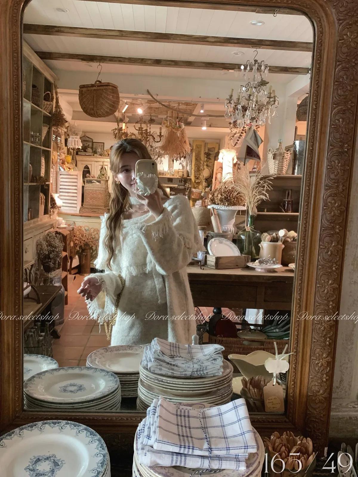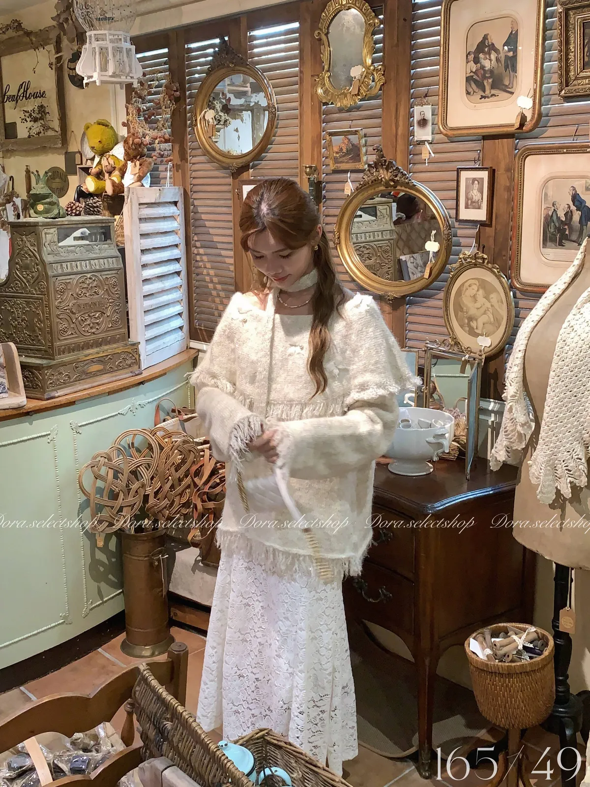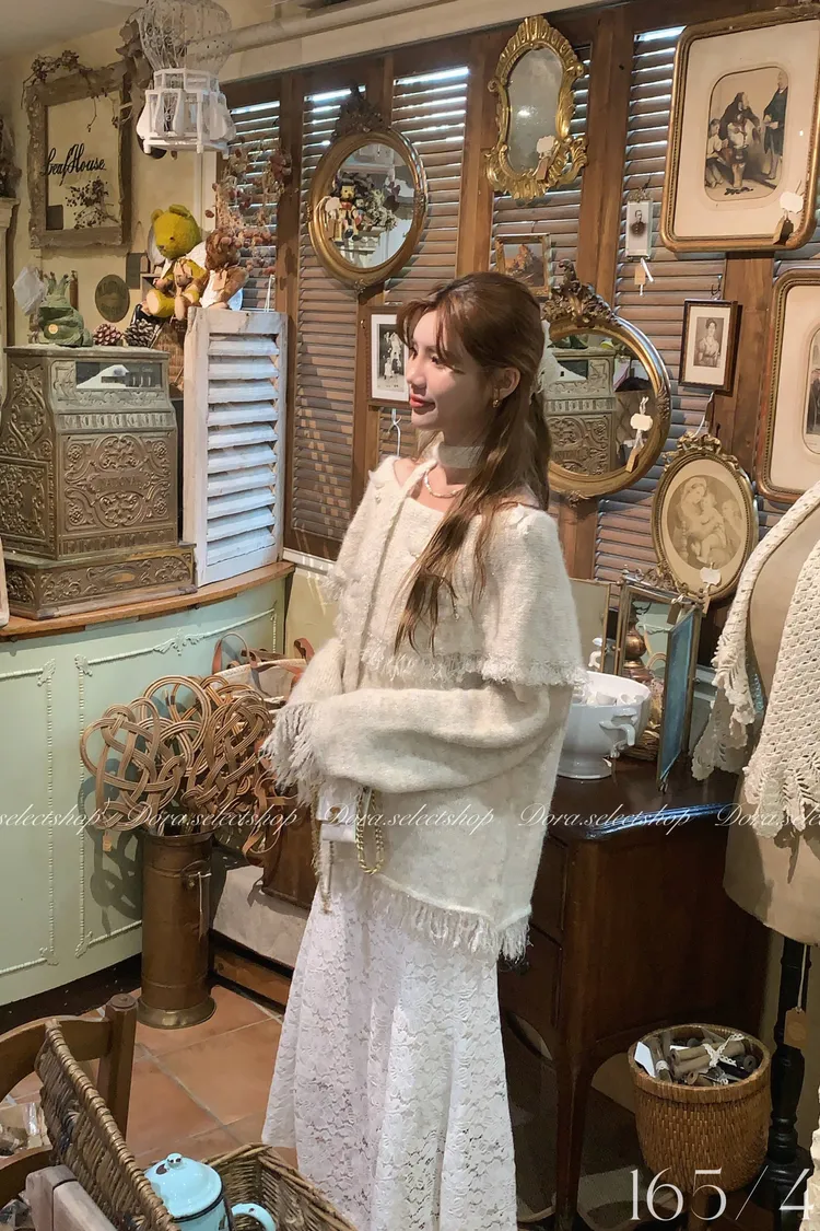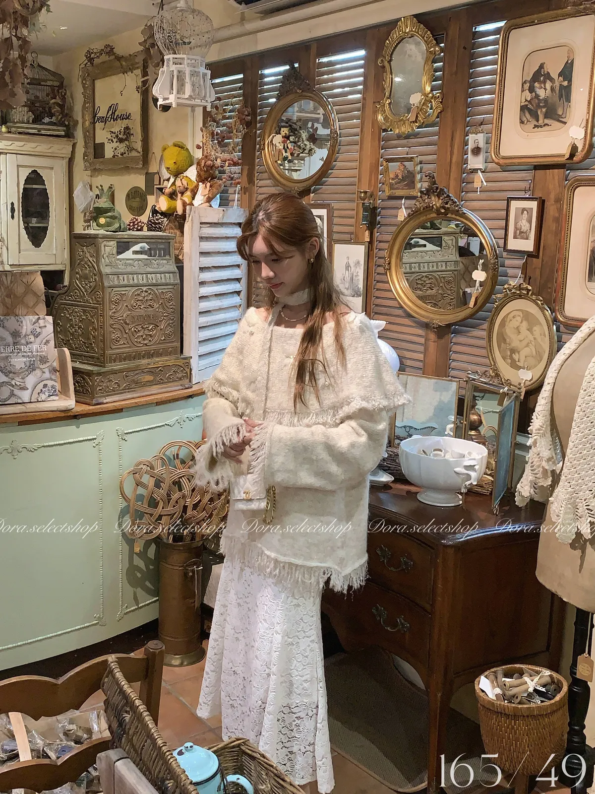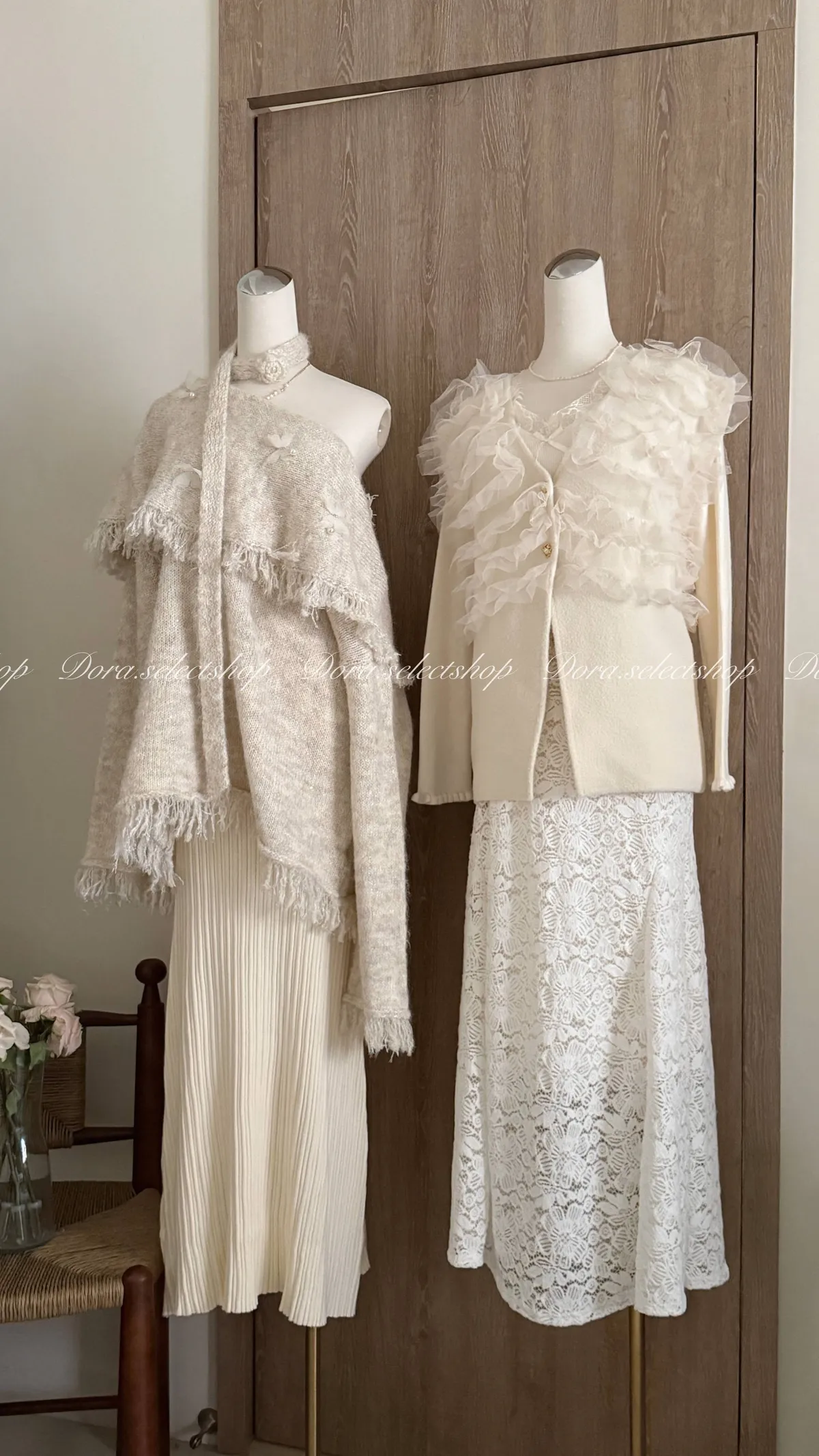 設計感大船領鬚邊寬鬆毛衣(附綁帶)---燕麥