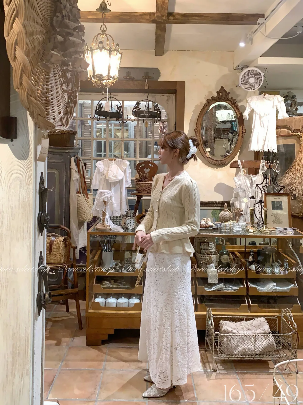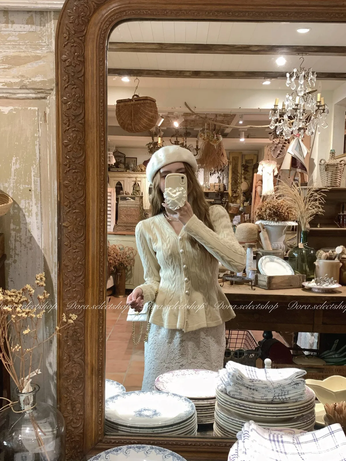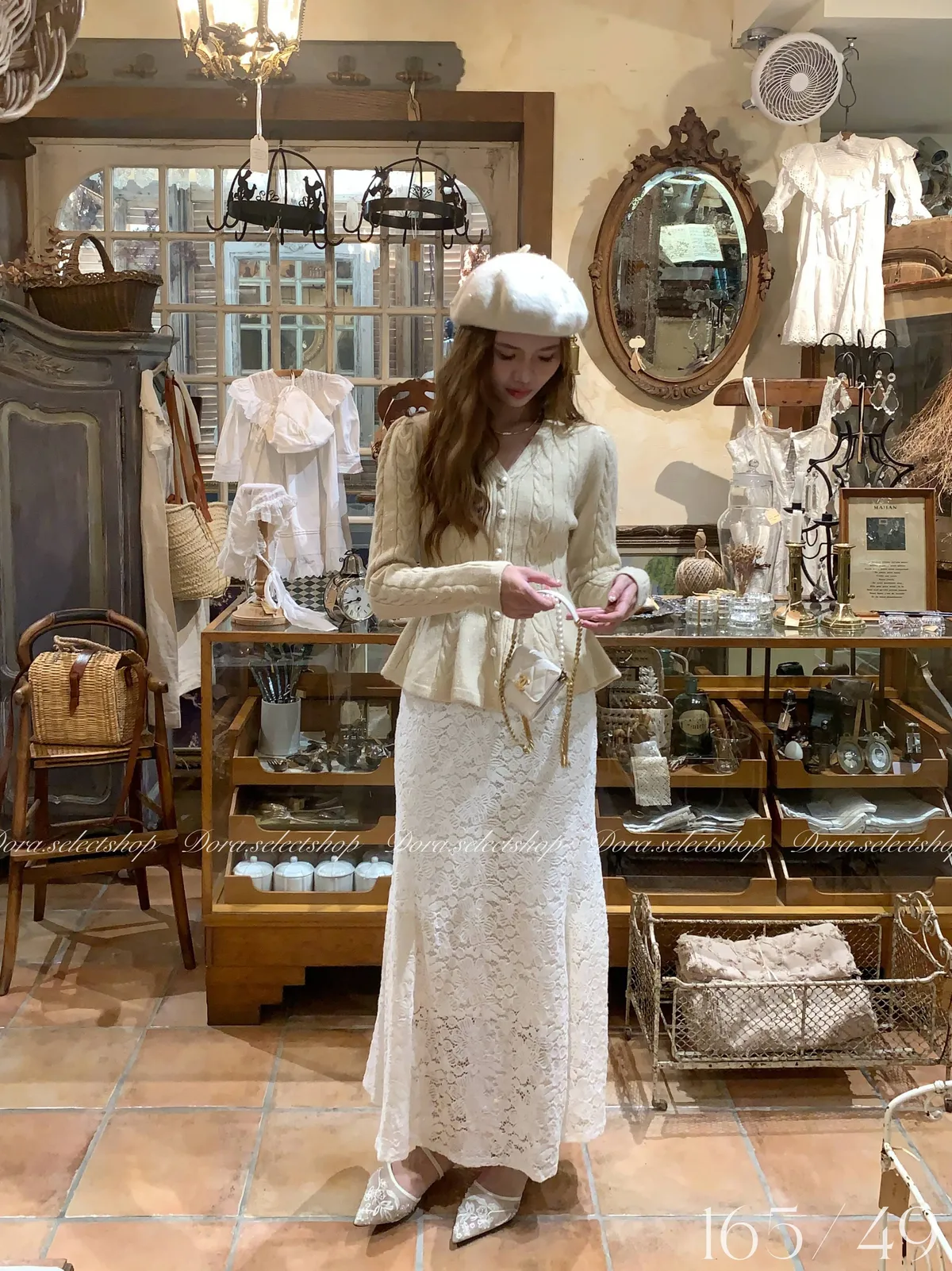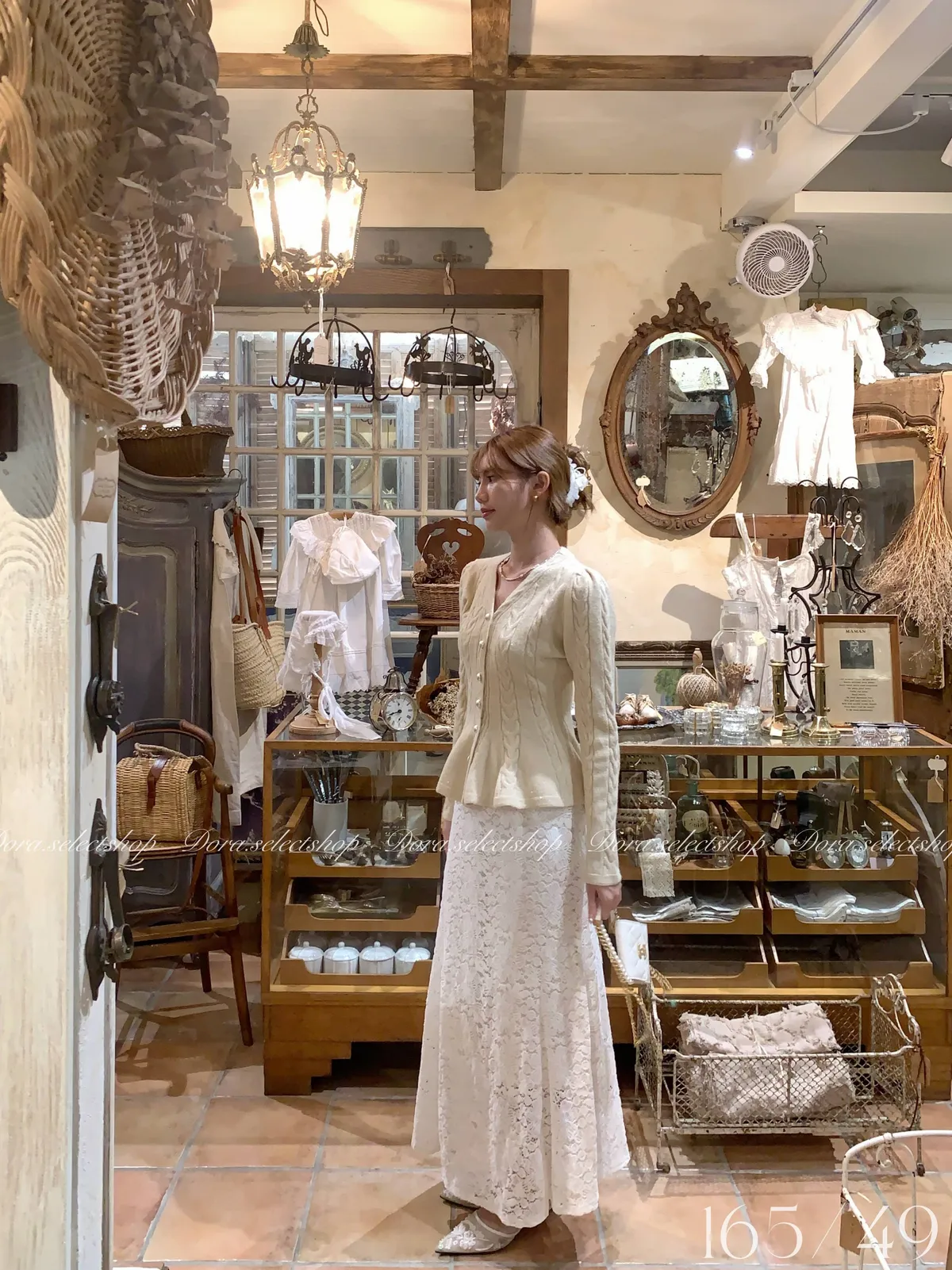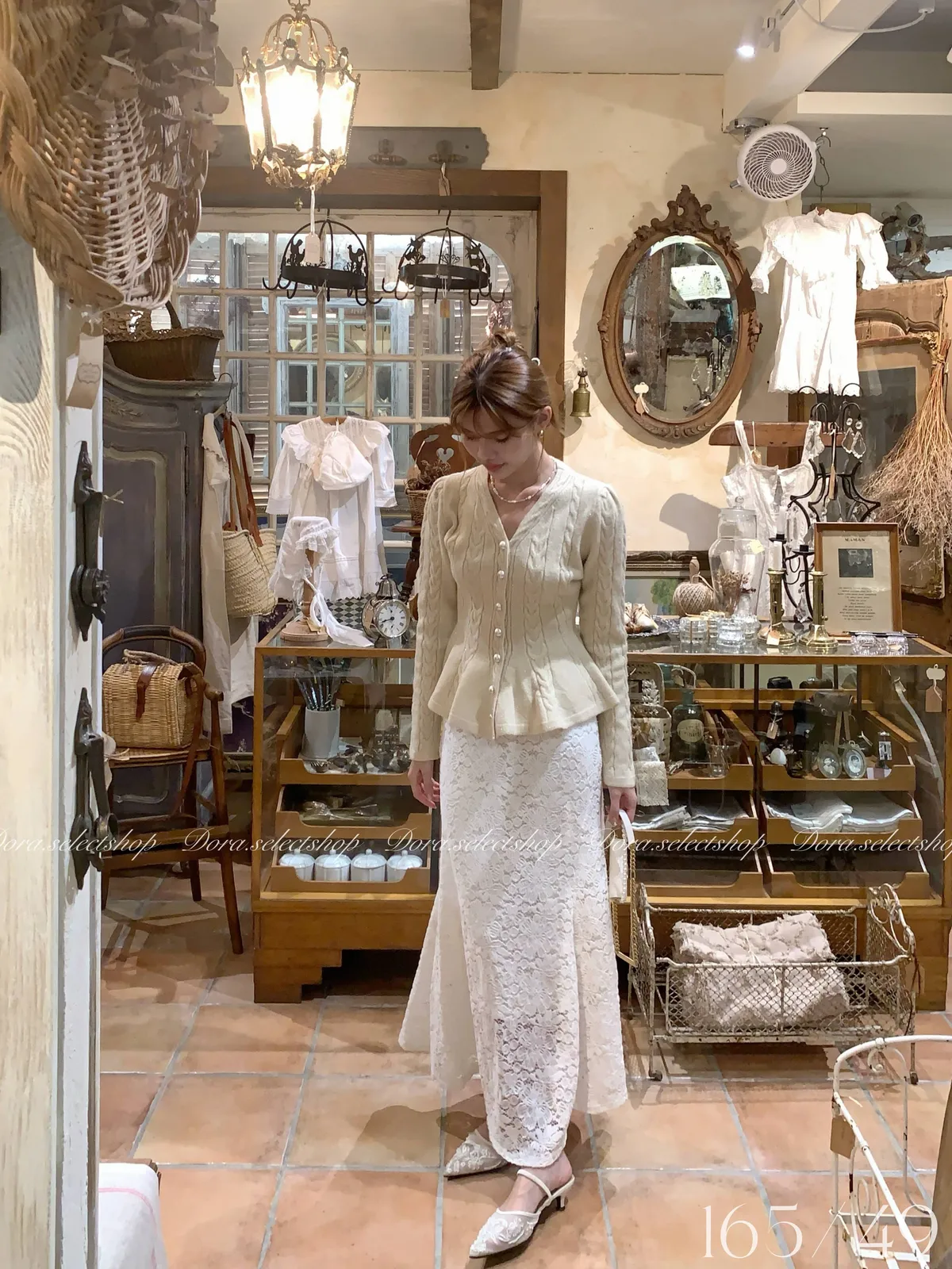 典雅珍珠釦縮腰傘襬麻花針織衣---米