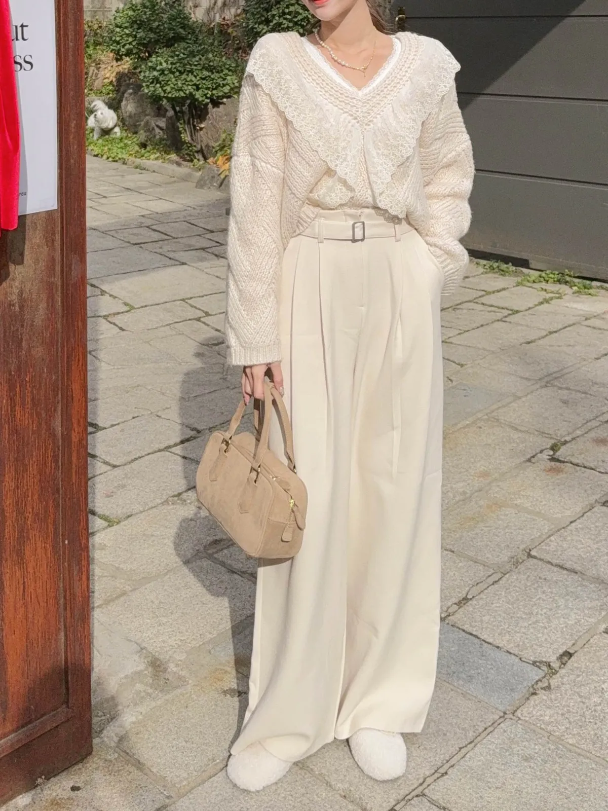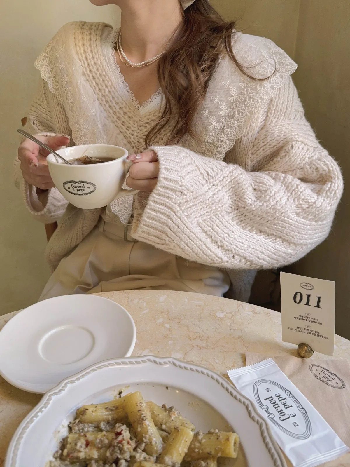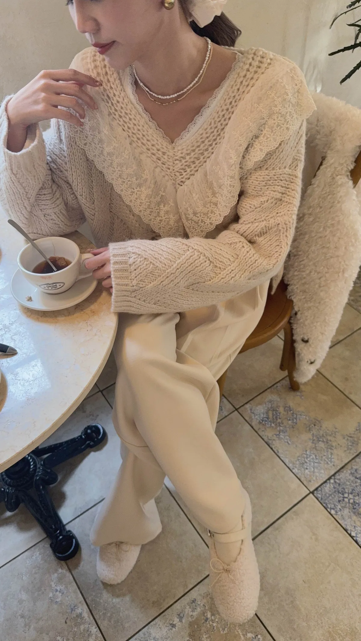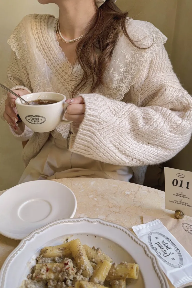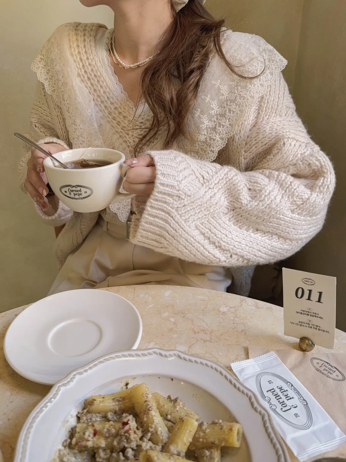 🇰🇷氣質公主麻花蕾絲拼接針織上衣---米