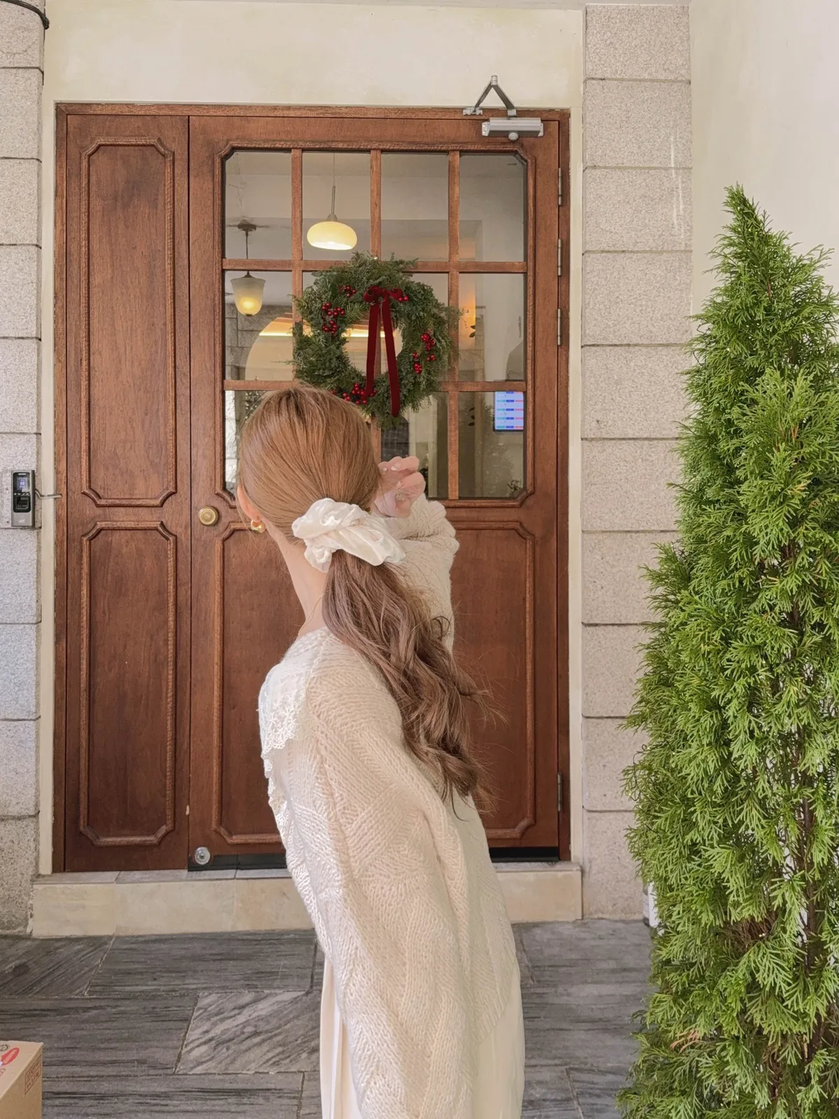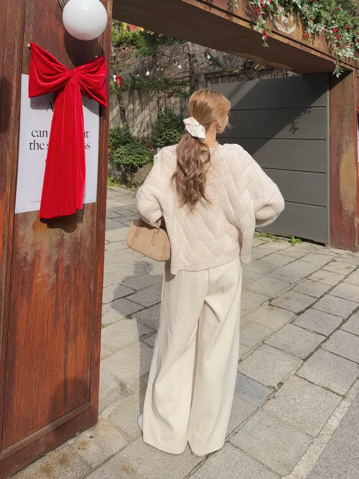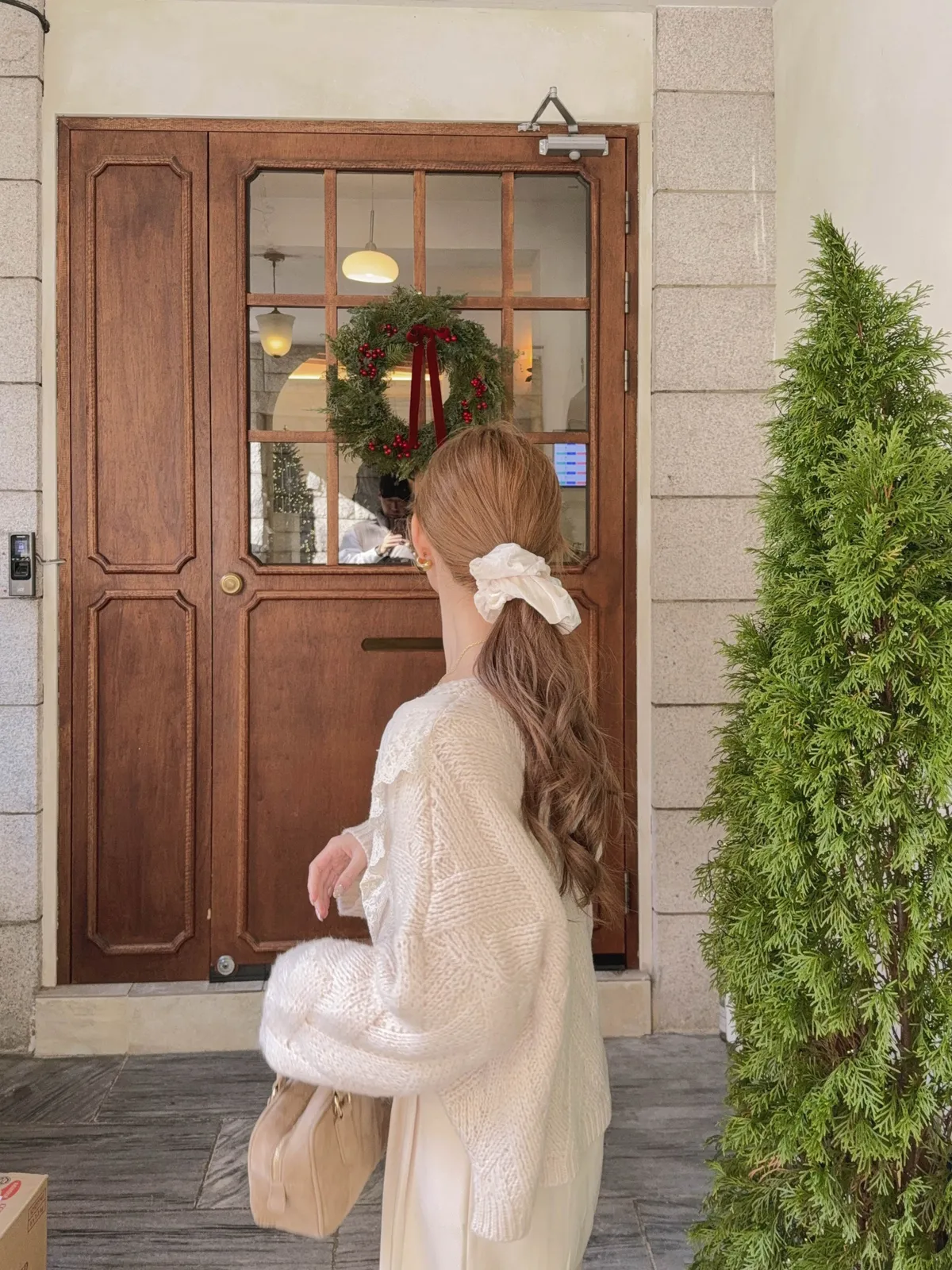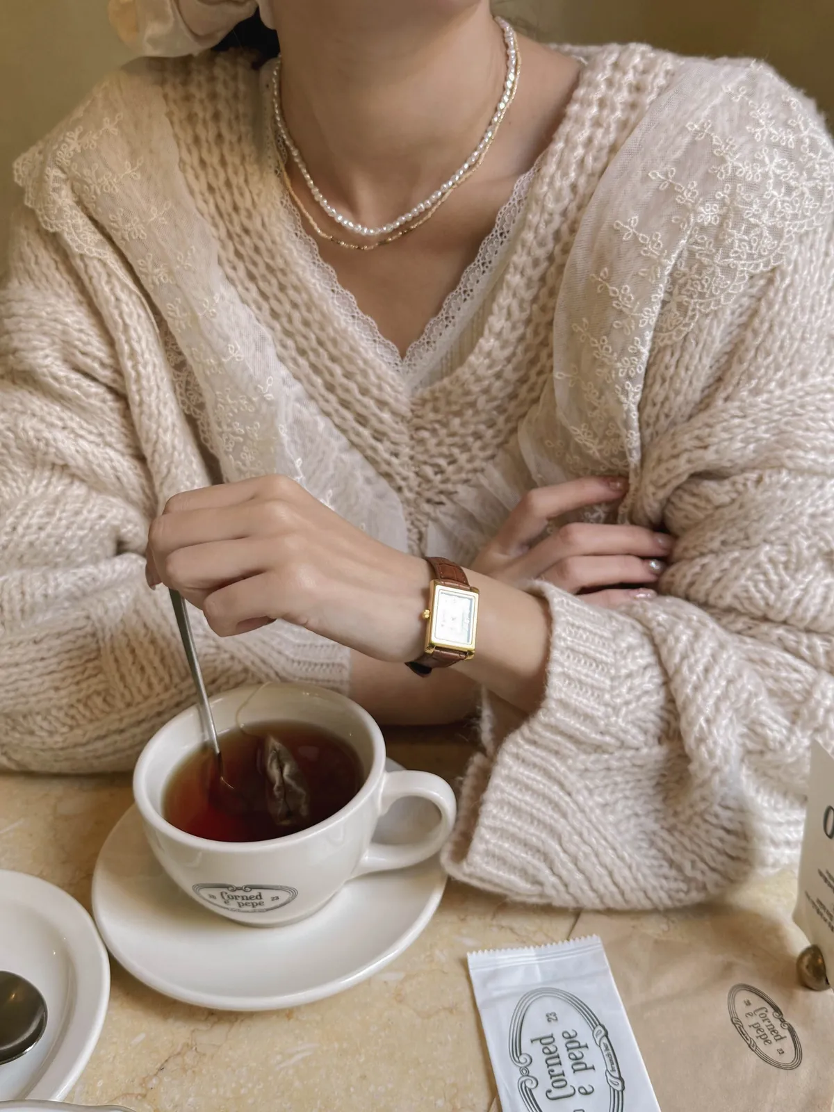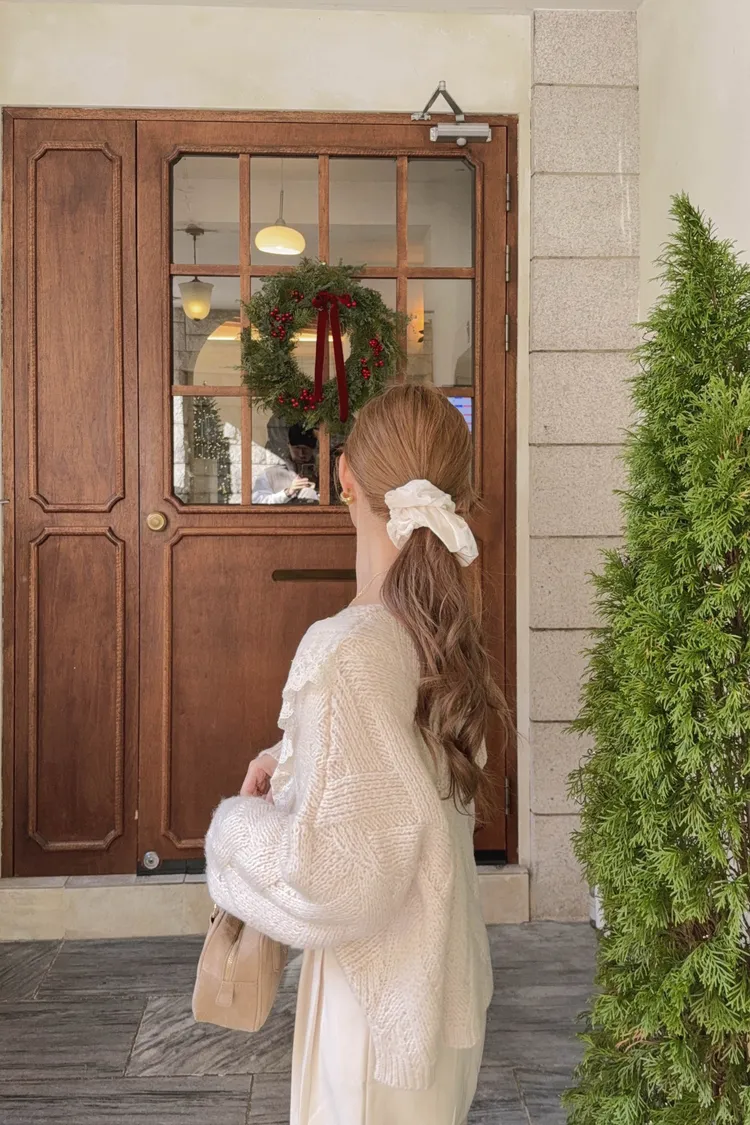 🇰🇷氣質公主麻花蕾絲拼接針織上衣---米