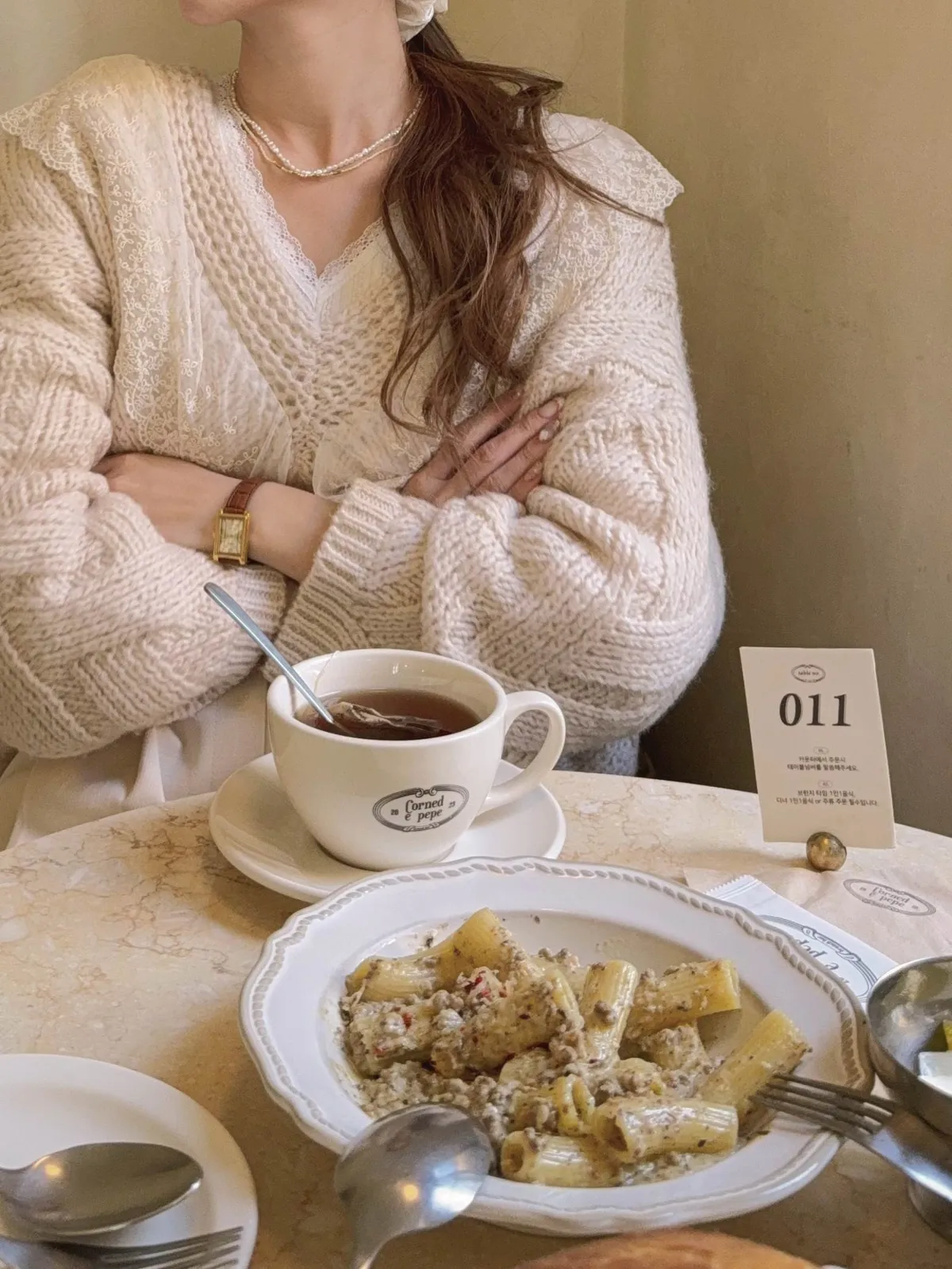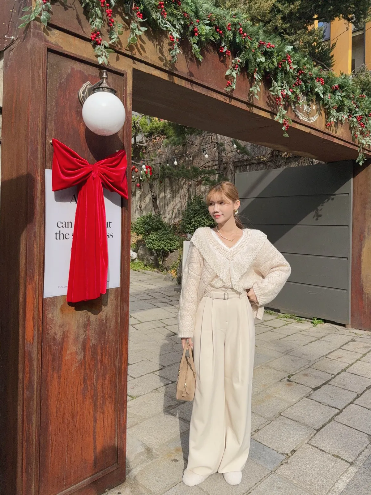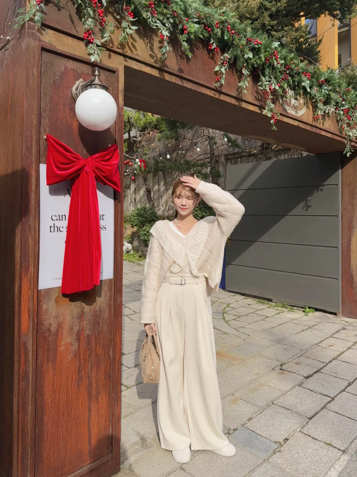 裡面也可以加一件高領或V領內搭 增加層次感~