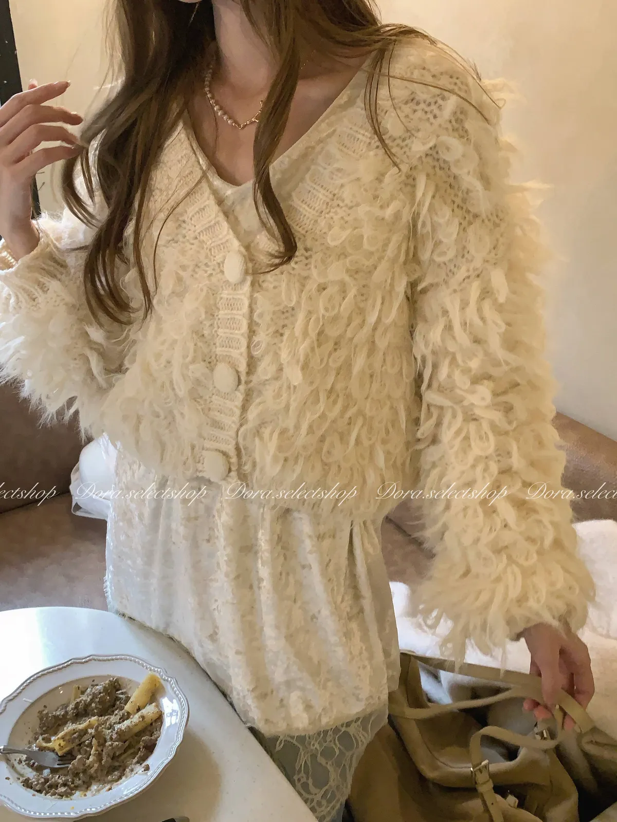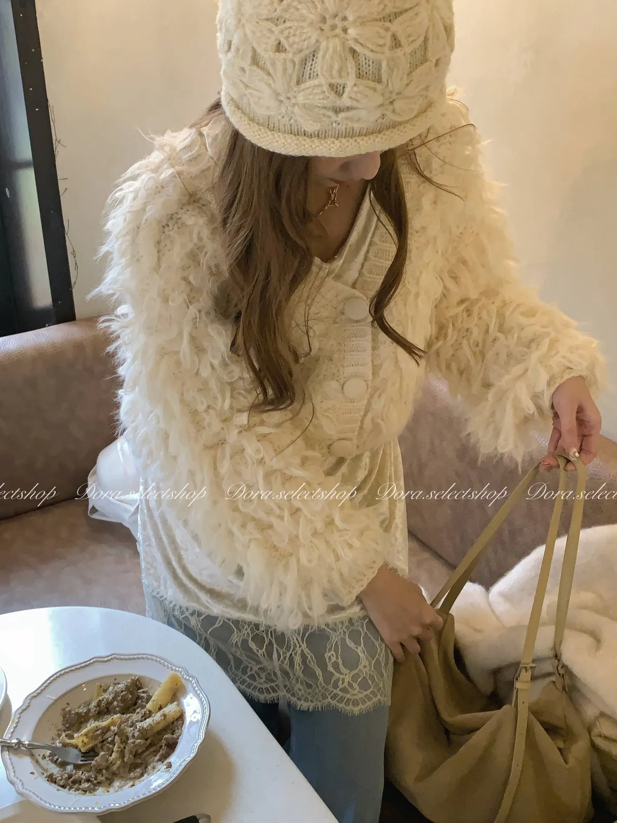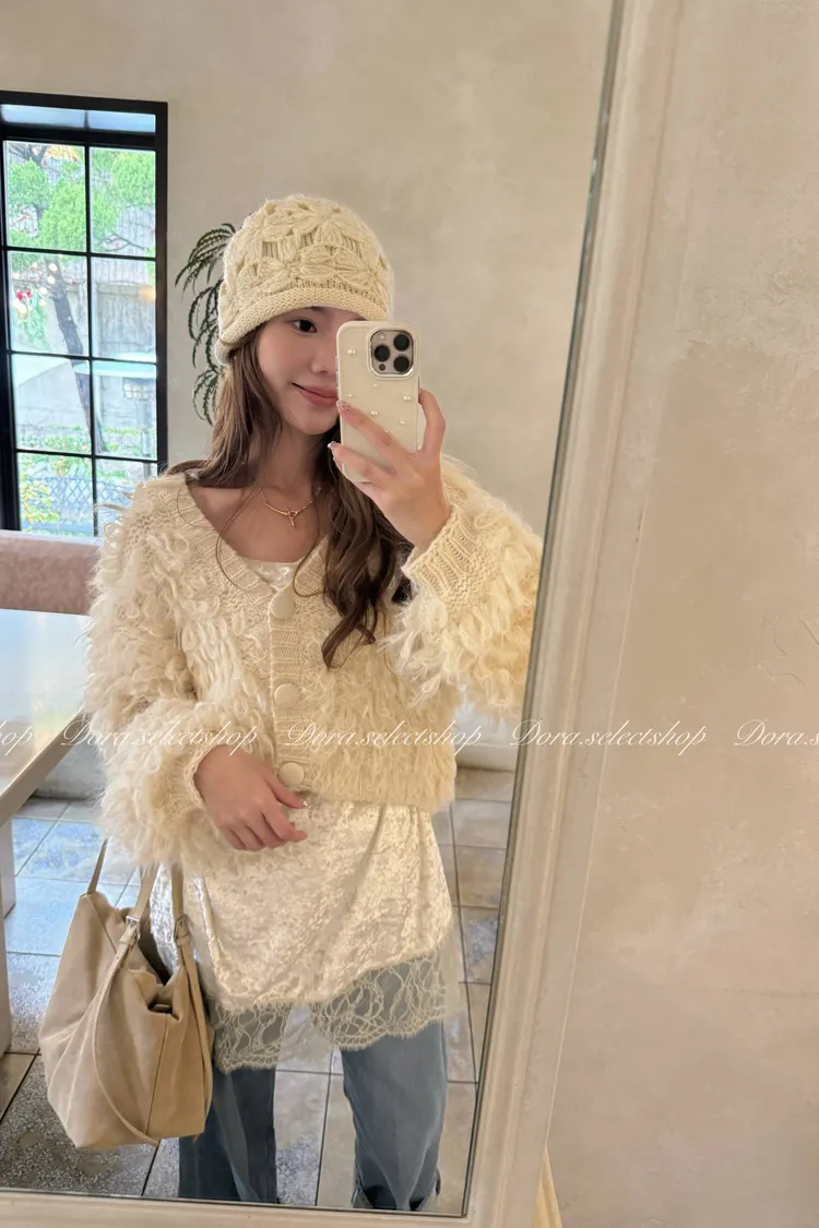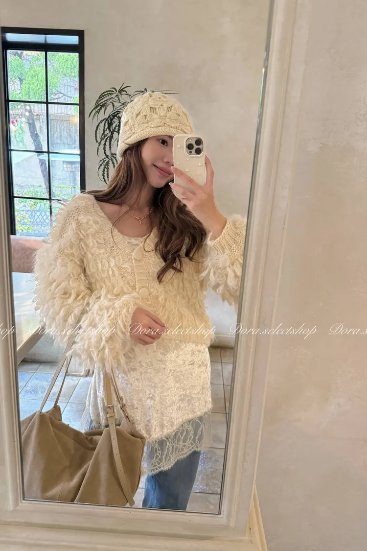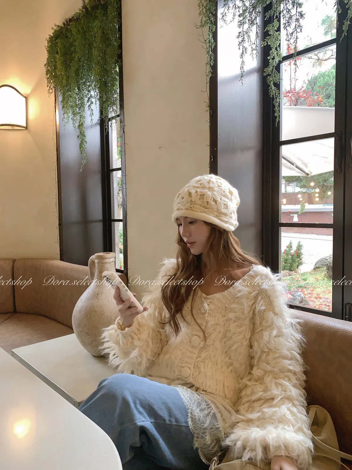 🇰🇷氛圍毛毛V領排扣針織上衣外套---米