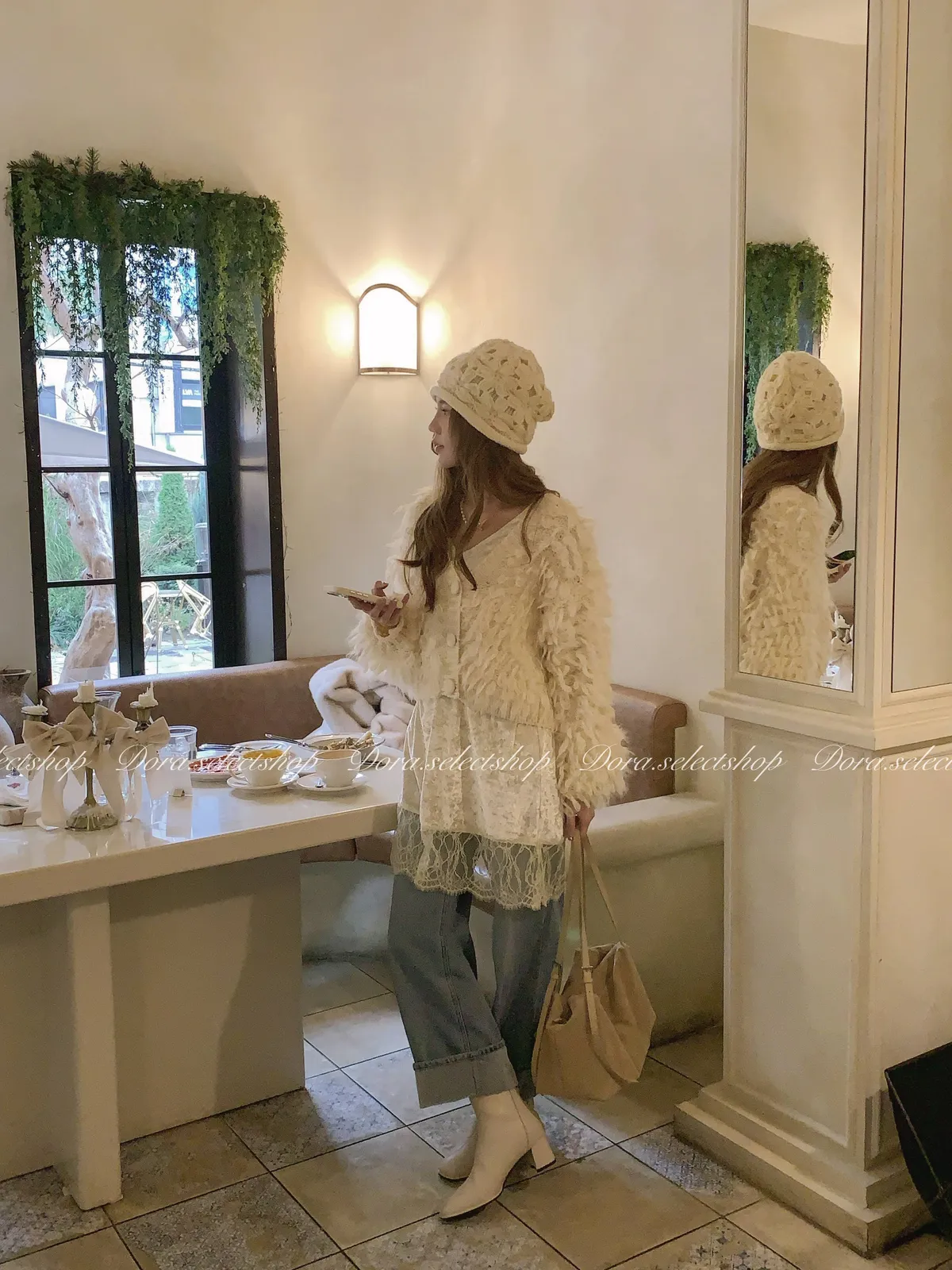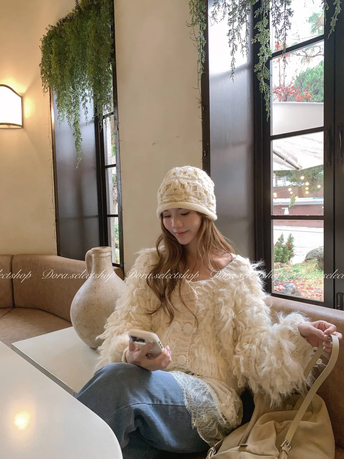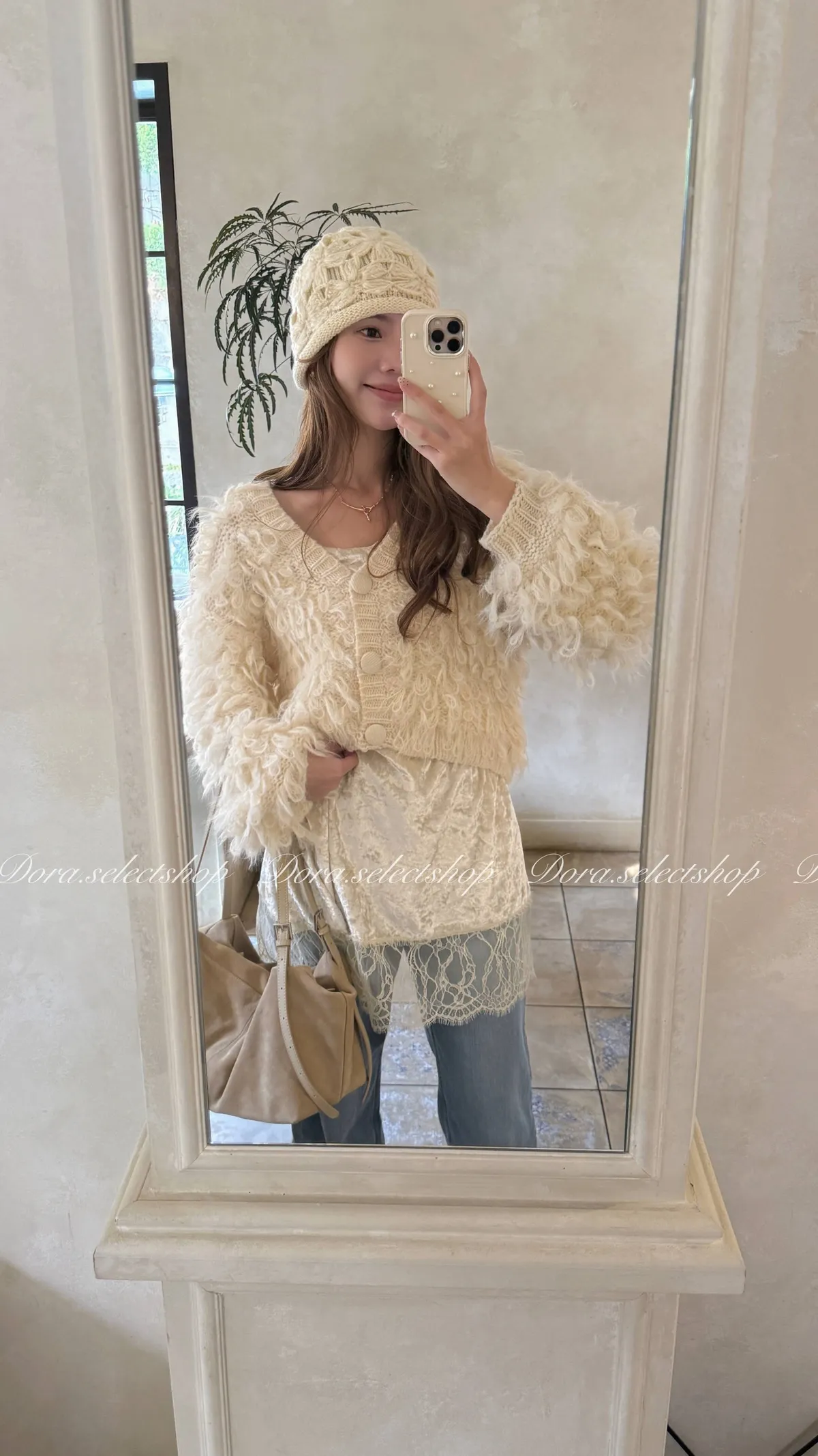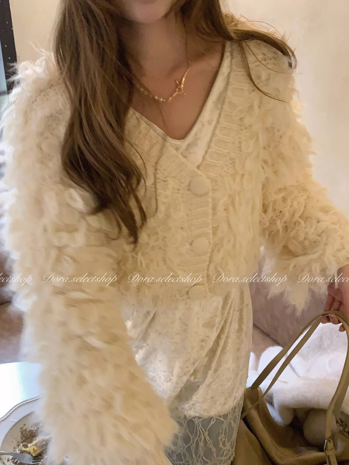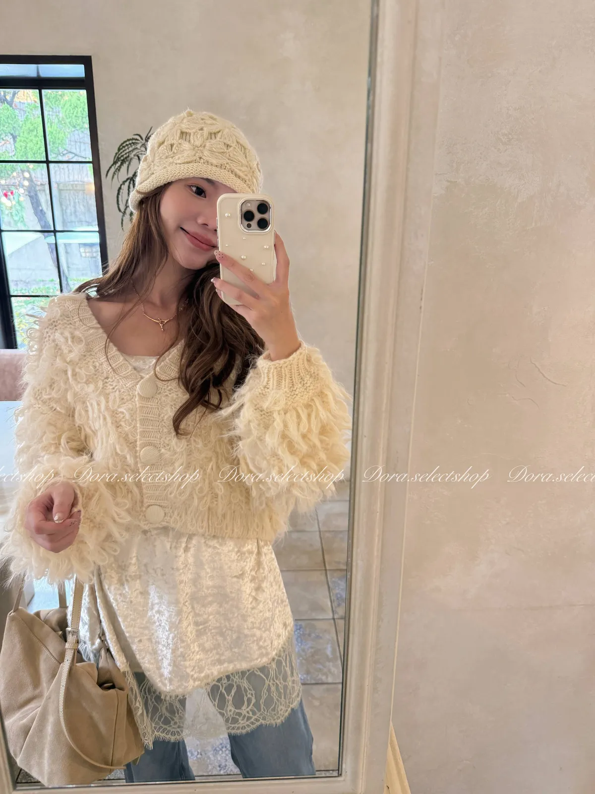 🇰🇷氛圍毛毛V領排扣針織上衣外套---米