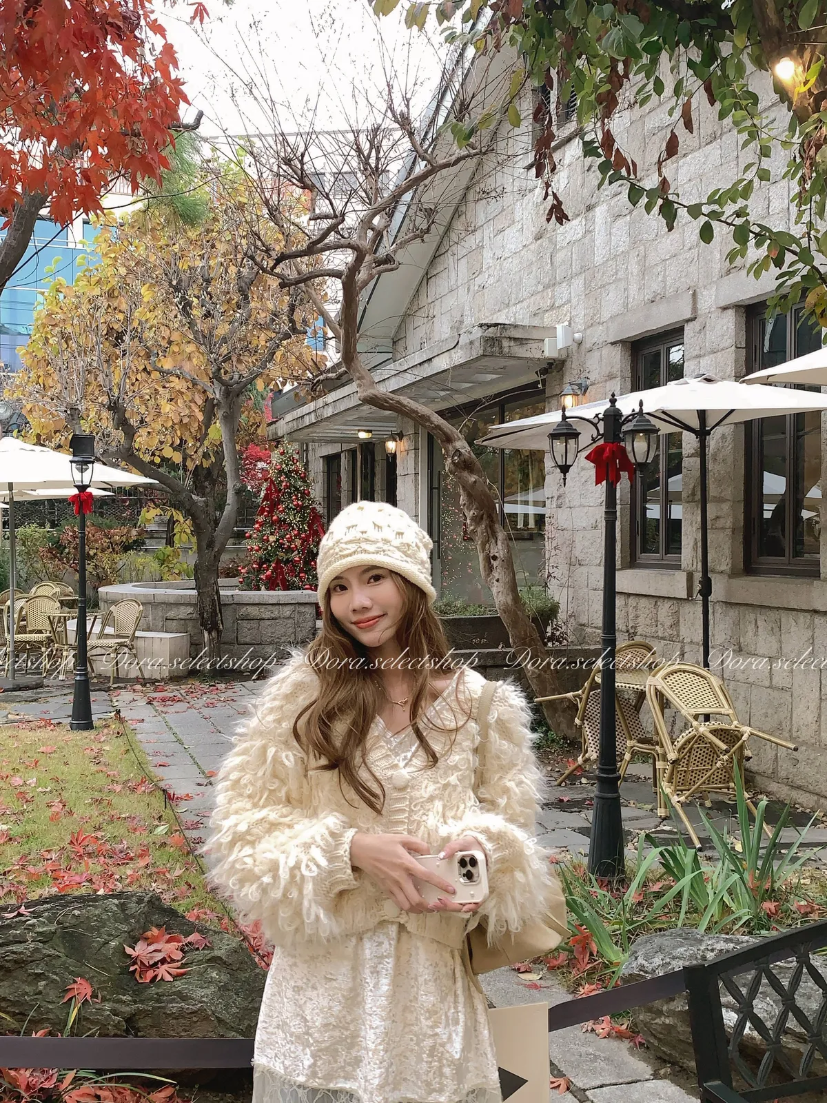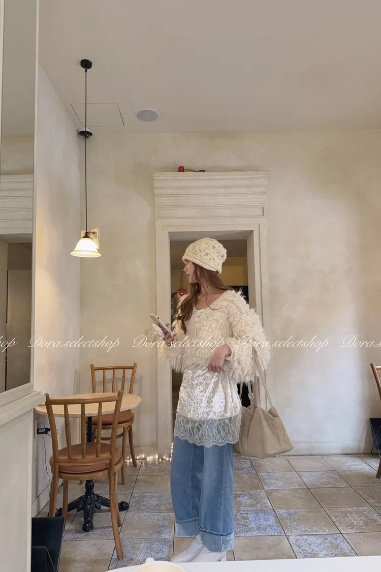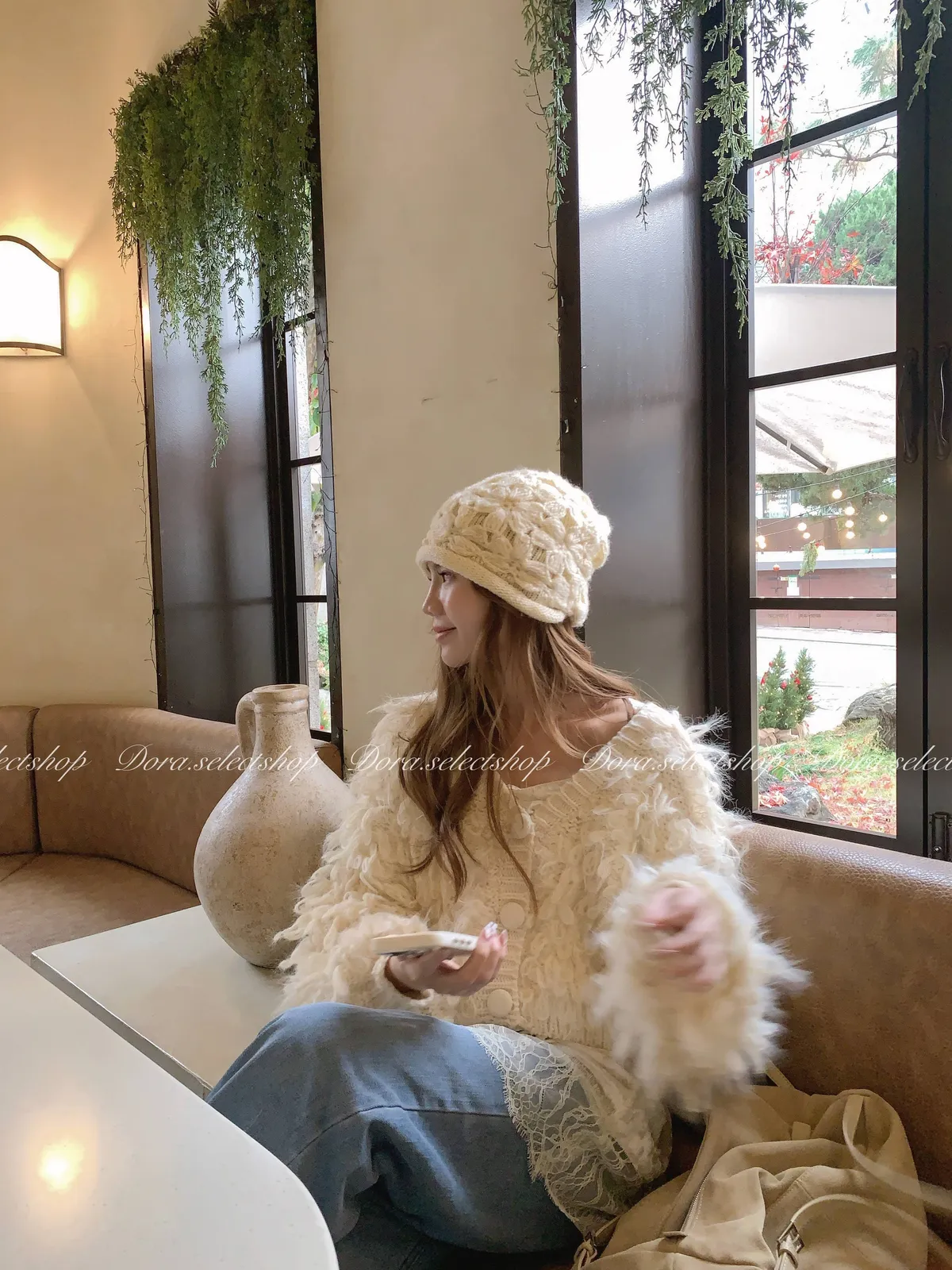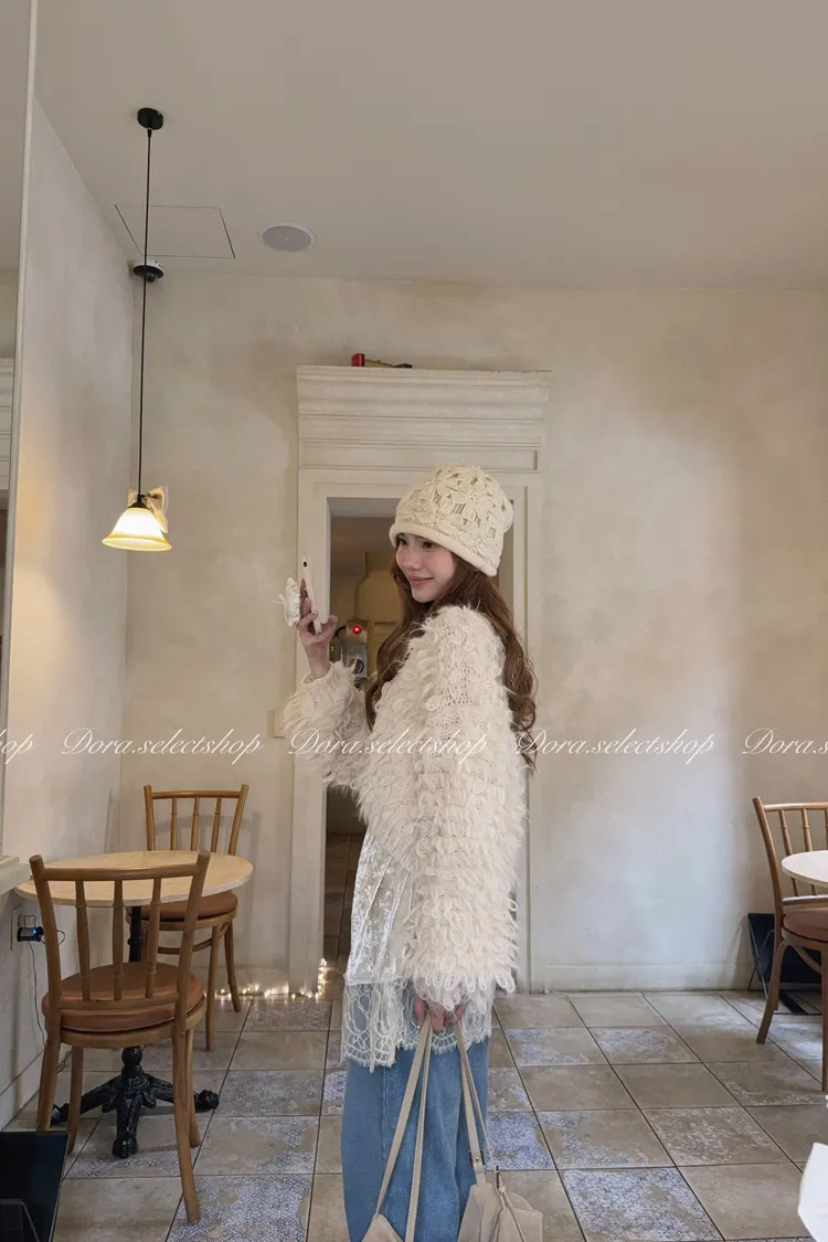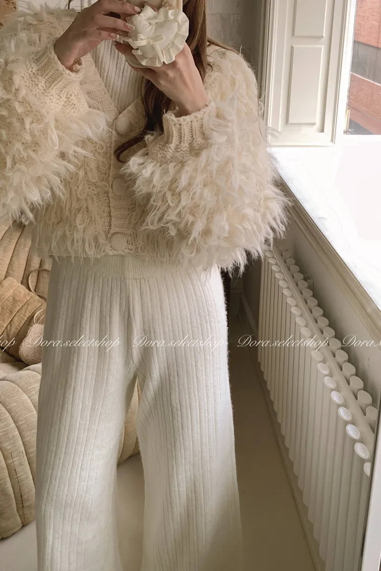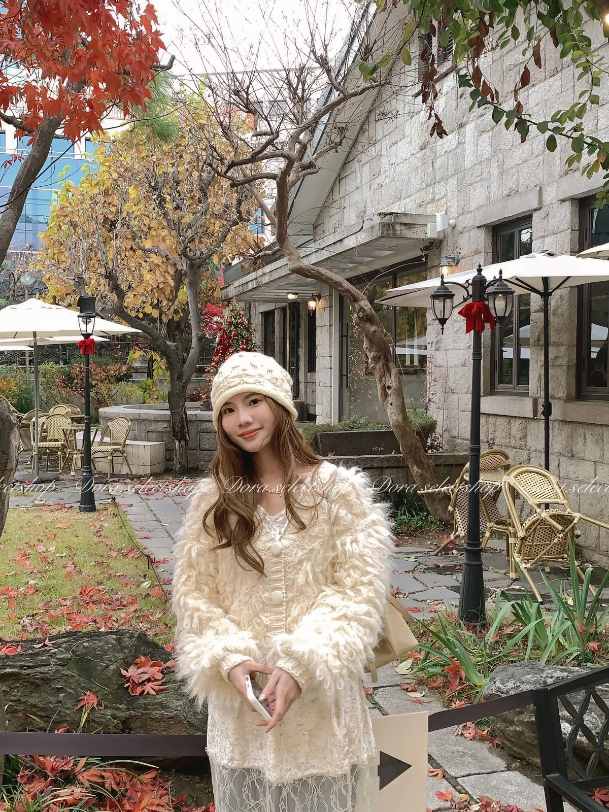🇰🇷氛圍毛毛V領排扣針織上衣外套---米