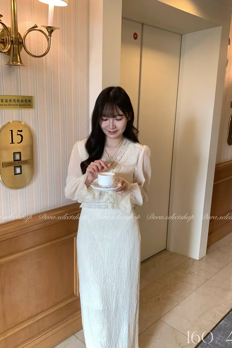 V領蕾絲滾邊 下擺也有蕾絲拼接