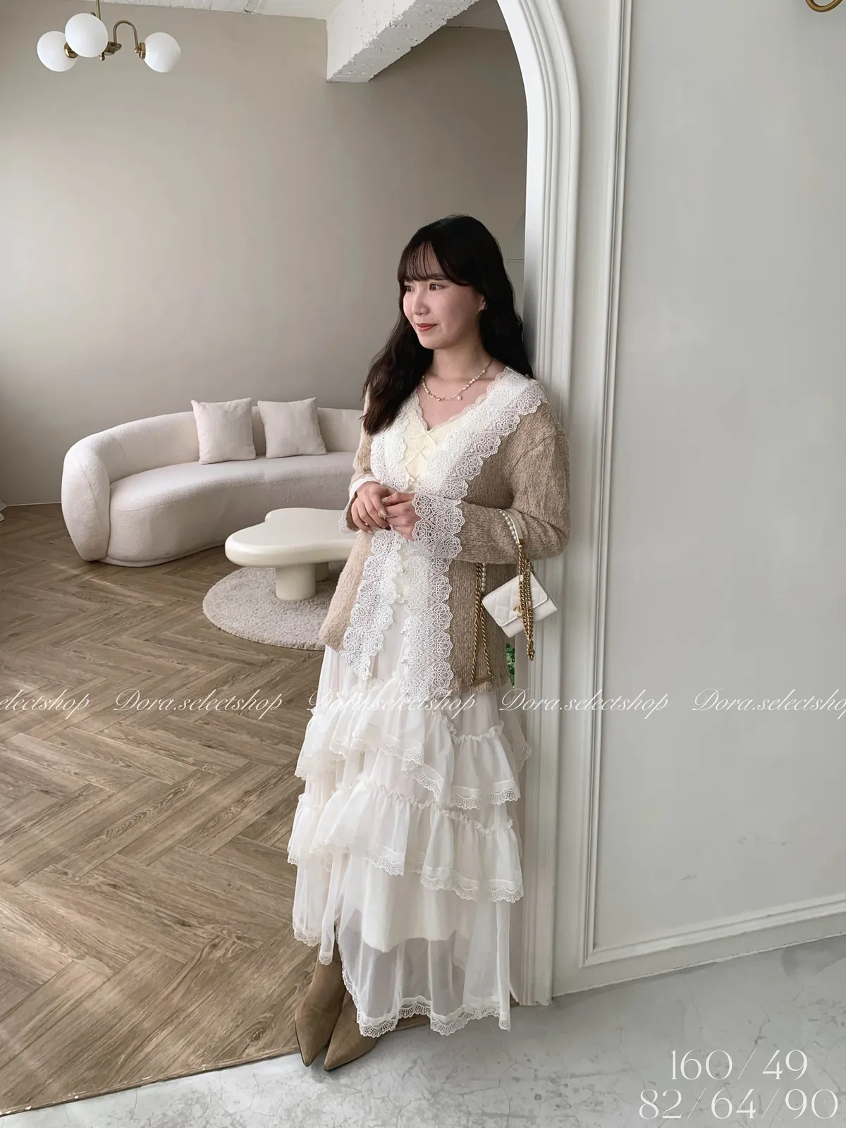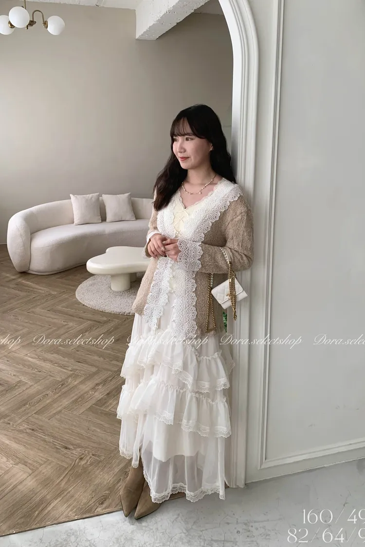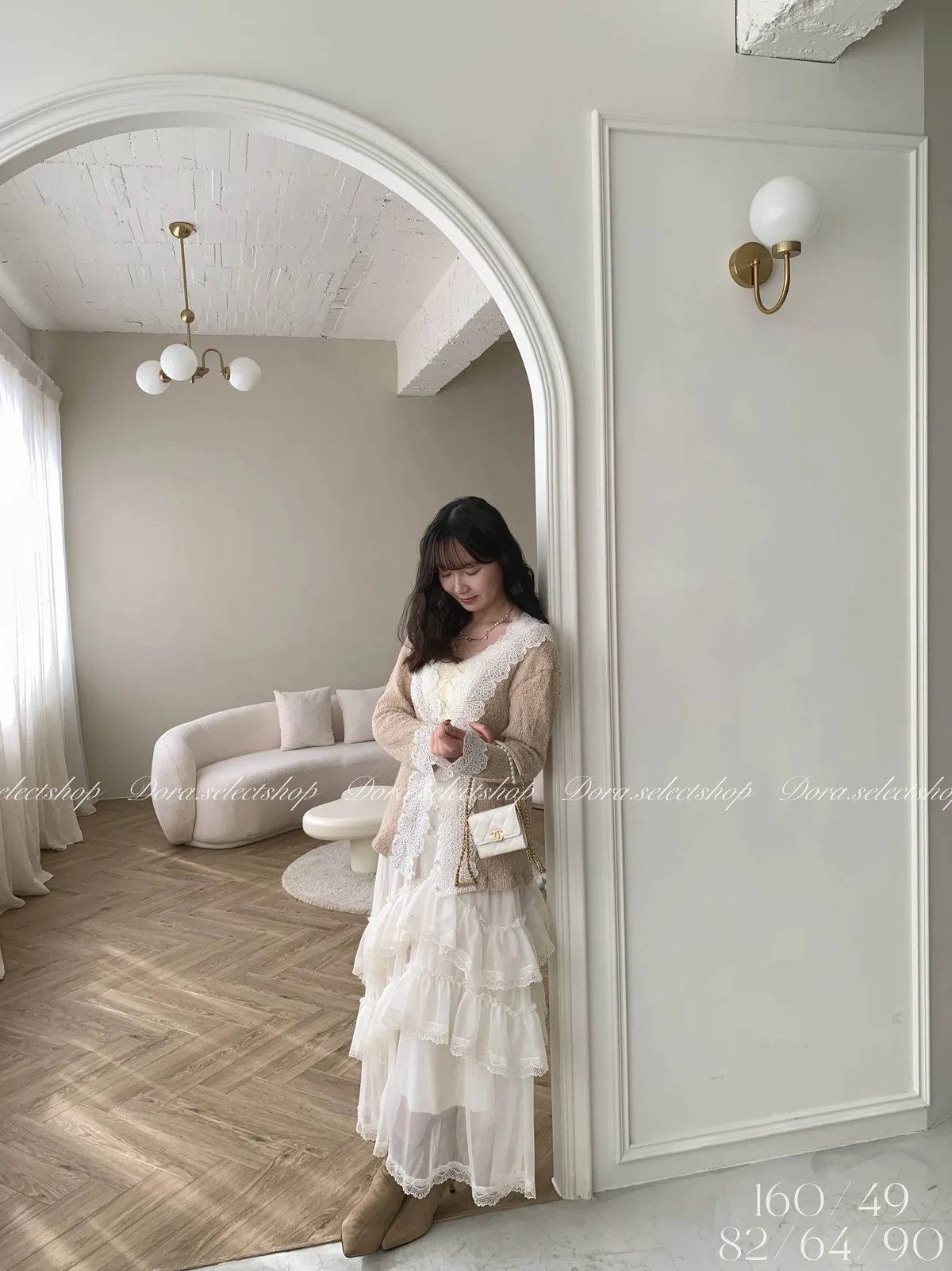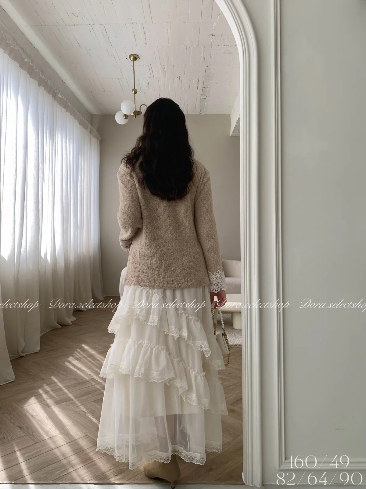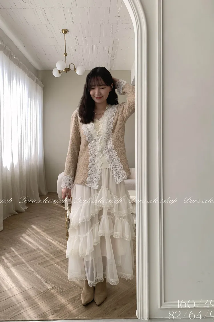 兩面穿珍珠釦蕾絲邊上衣---燕麥