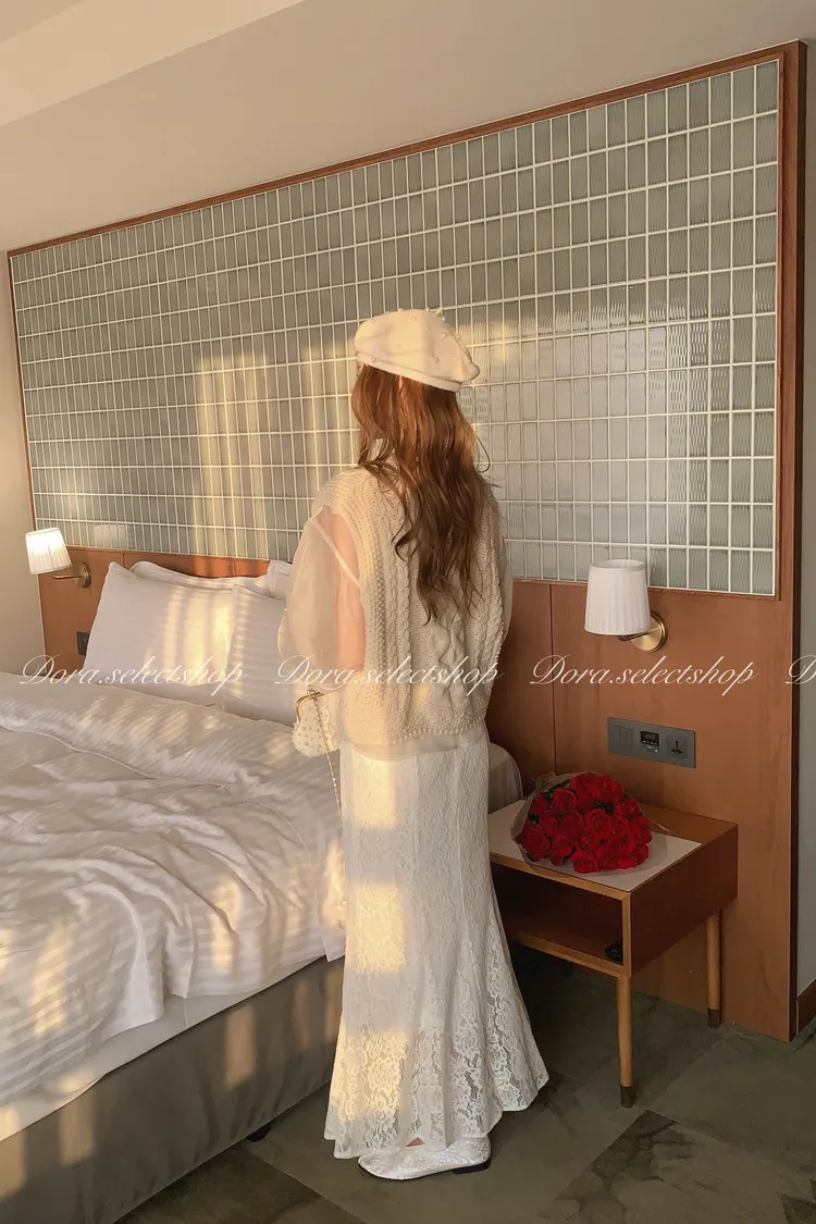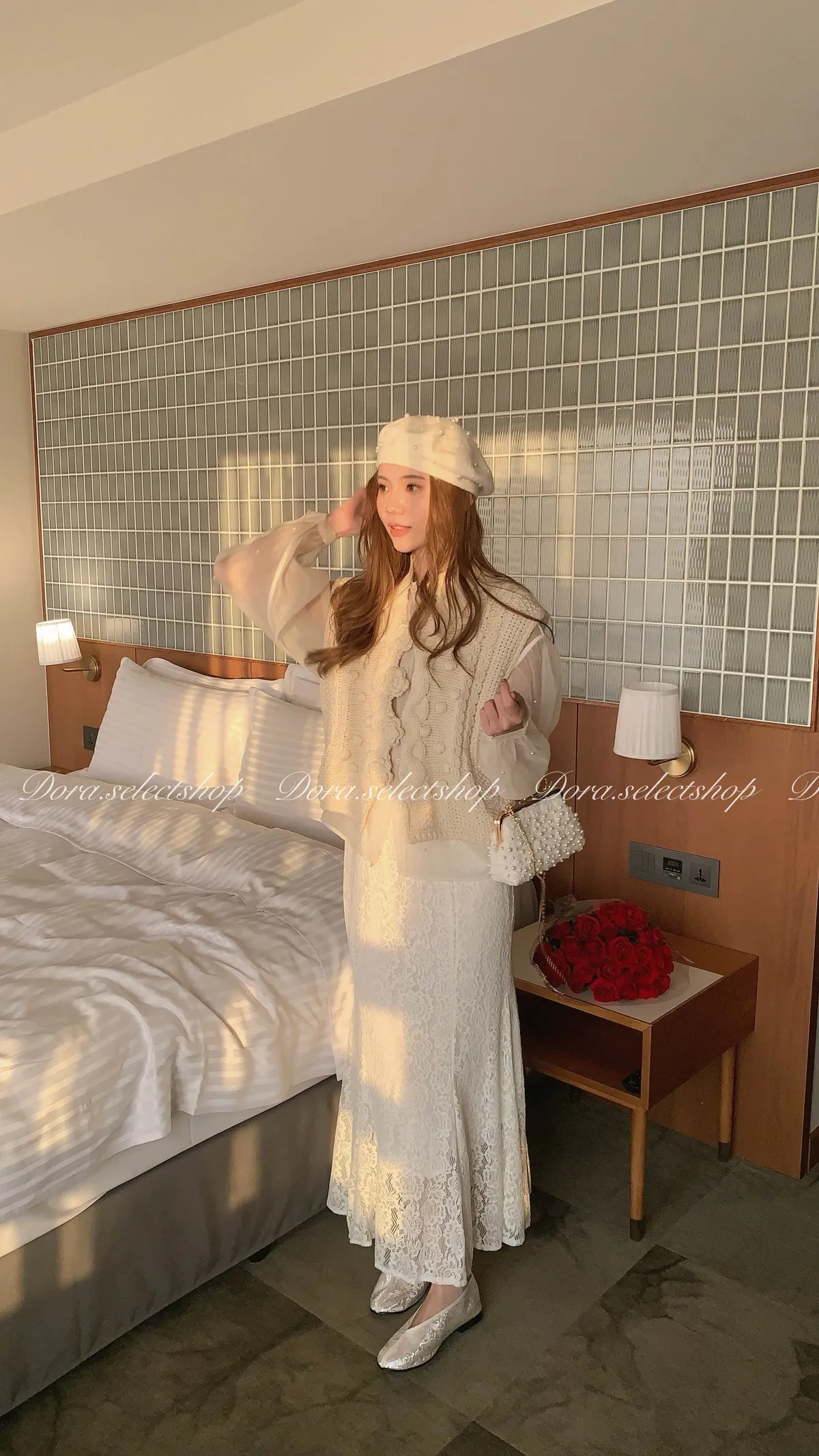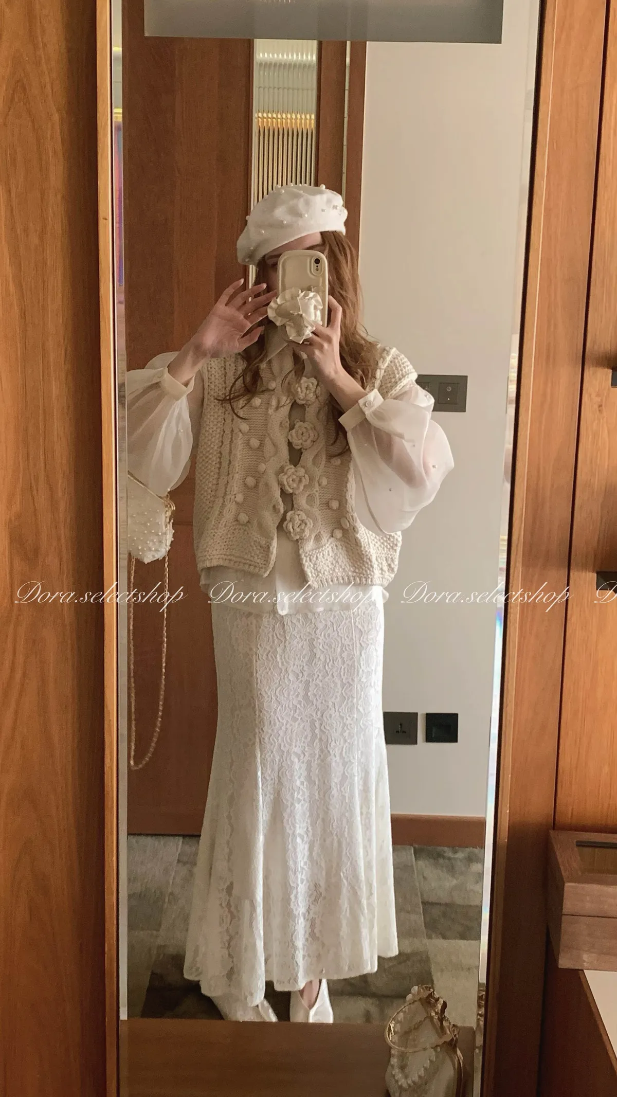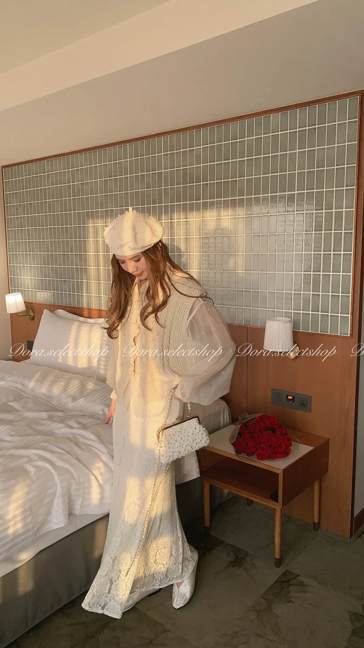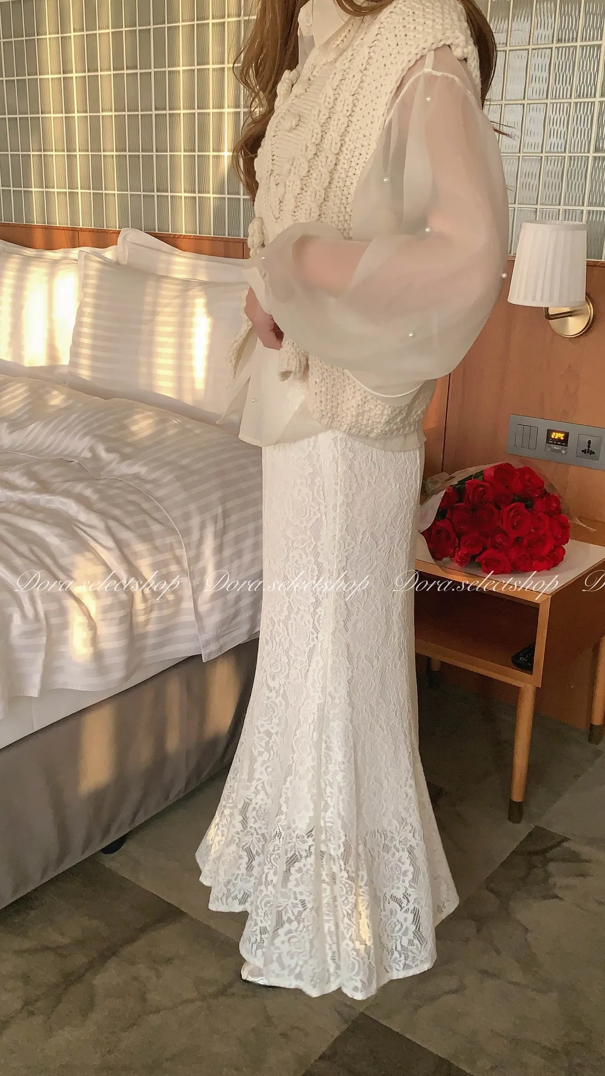 復古仙氣珍珠透肌澎袖襯衫---米白
